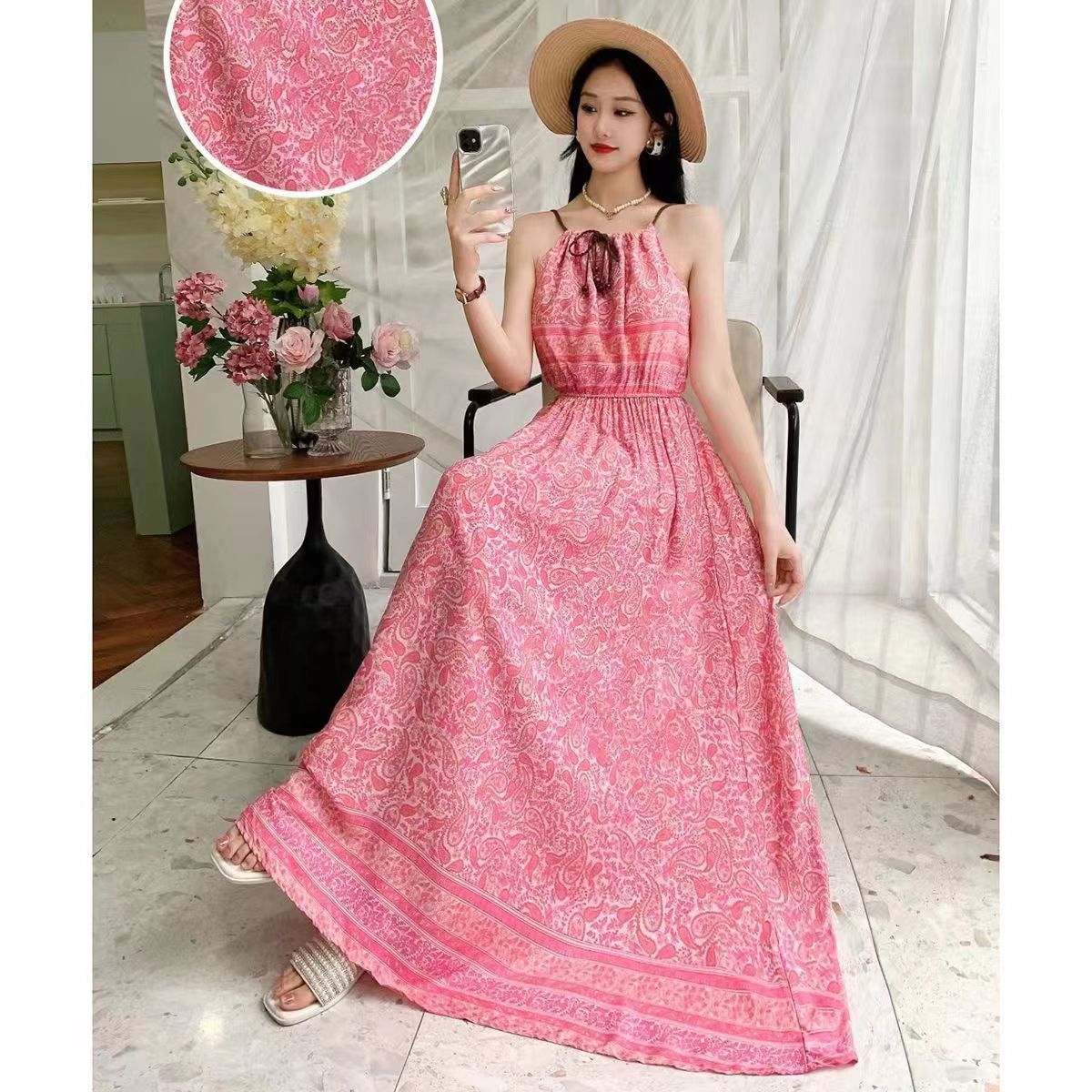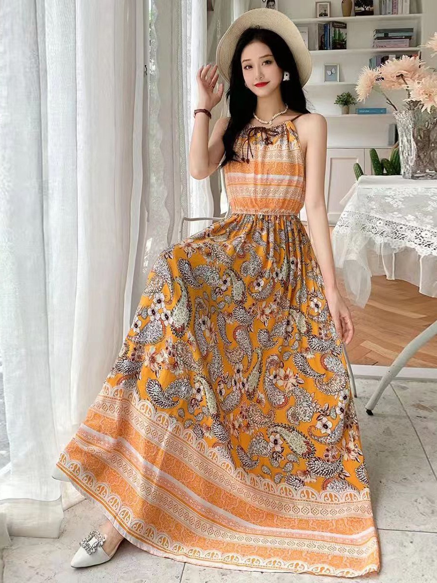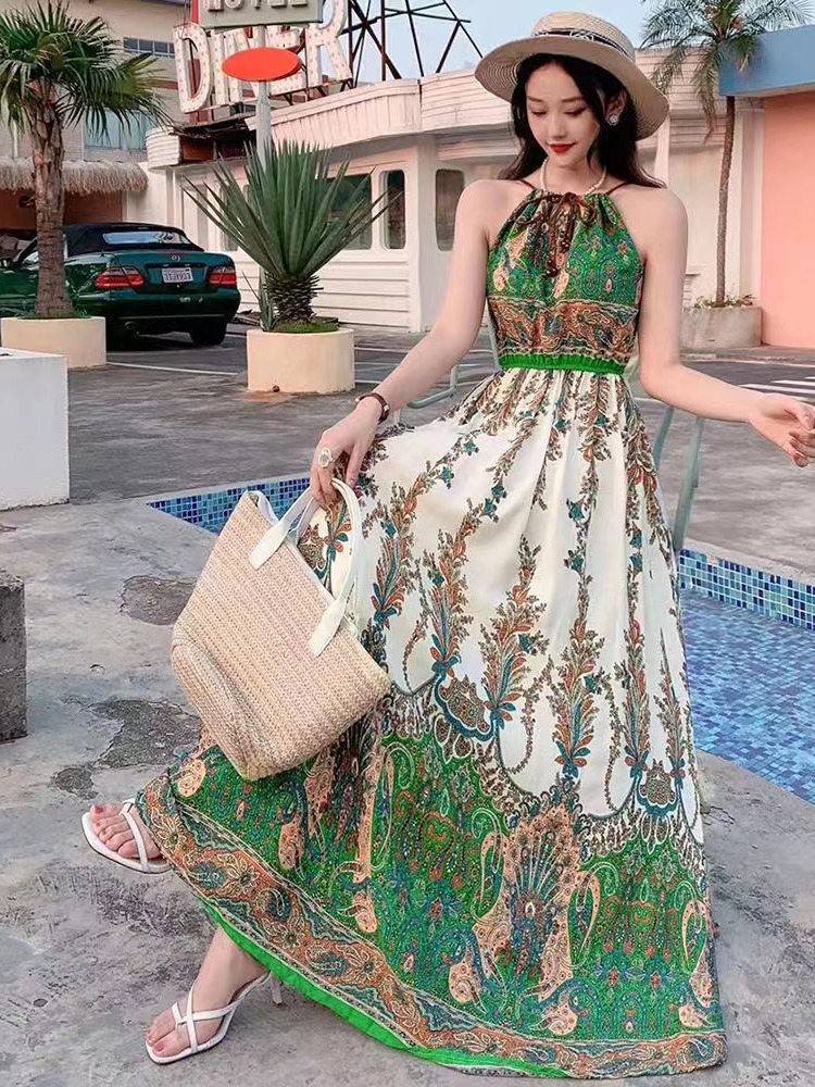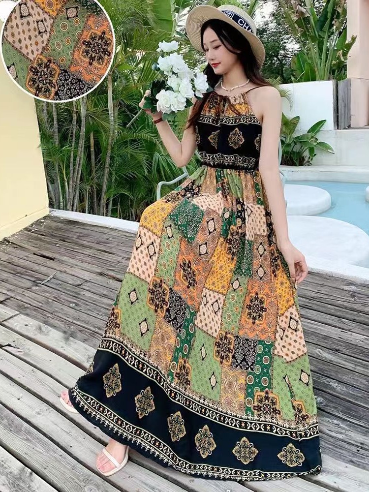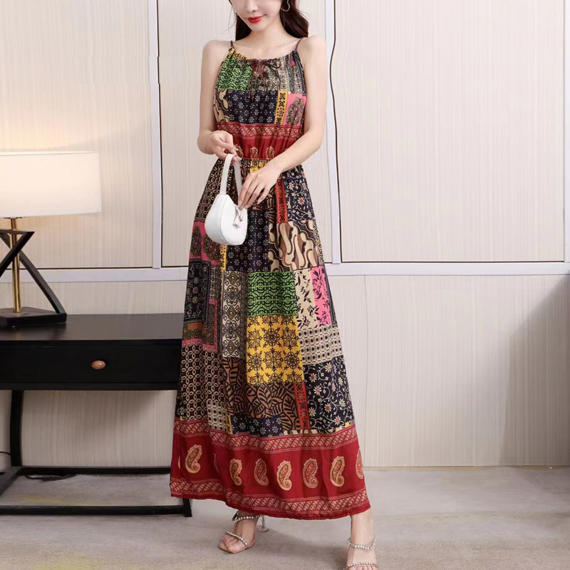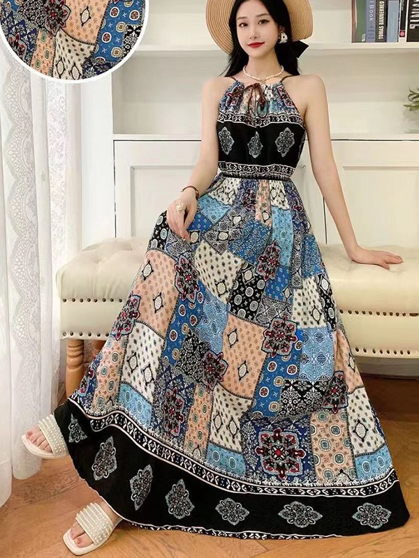 Главная страница > Пляжная юбка, хлопковое шелковое платье на подтяжках с принтом, китайское этническое стильное дорожное праздничное платье без рукавов из искусственного хлопка, свежее