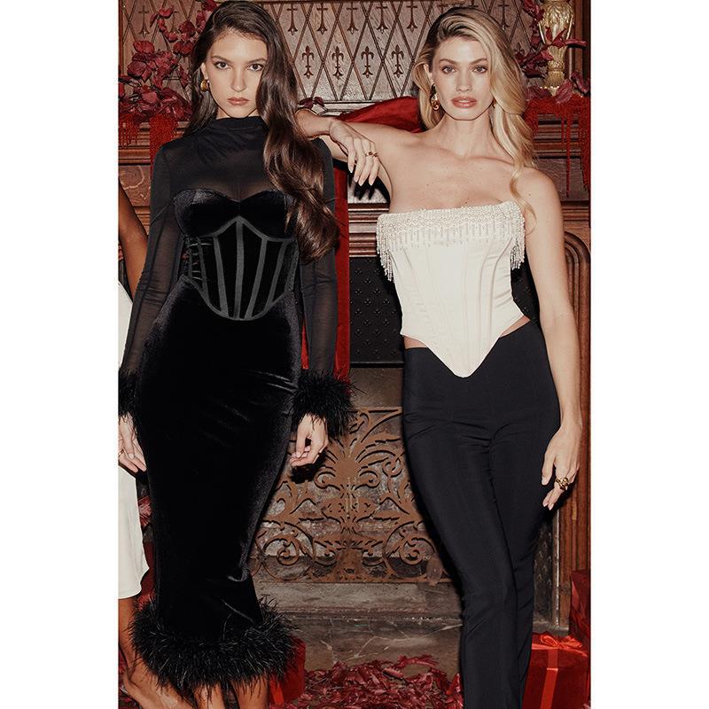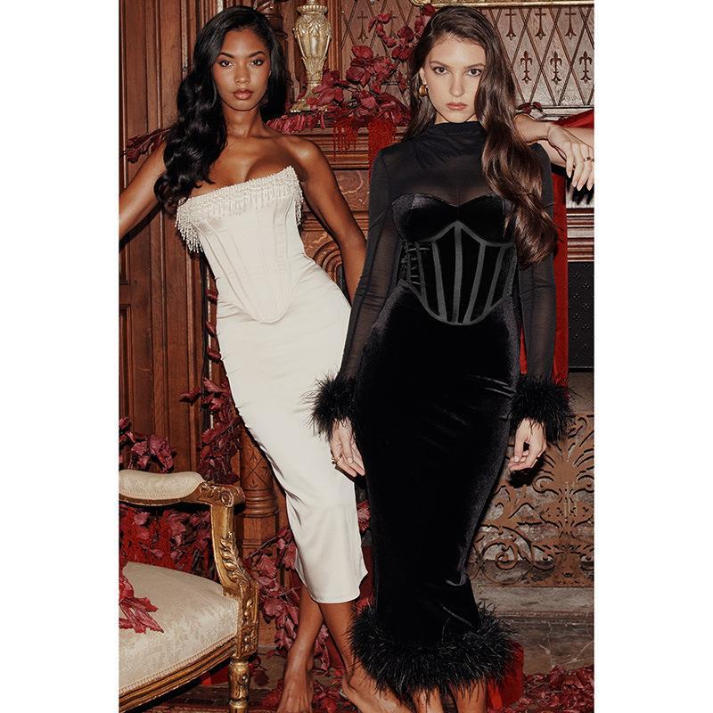 Главная страница > Американское осеннее платье с длинными рукавами в европейском и американском стиле, модное, с меховой отделкой, с сетчатыми вставками, корейское бархатное платье для женщин.