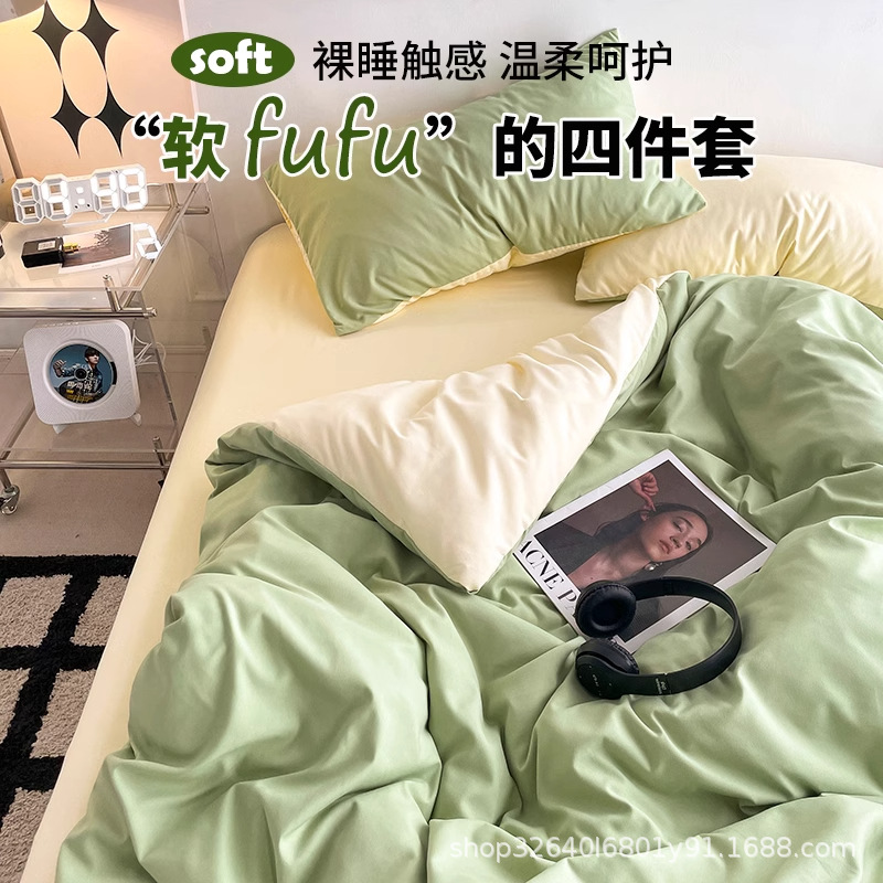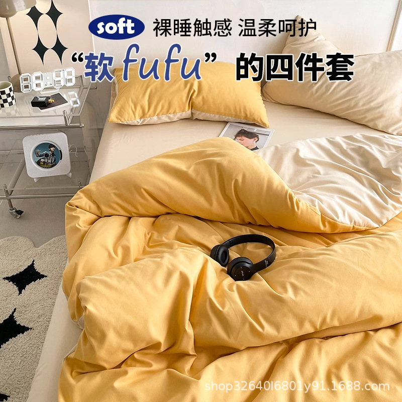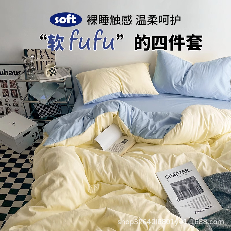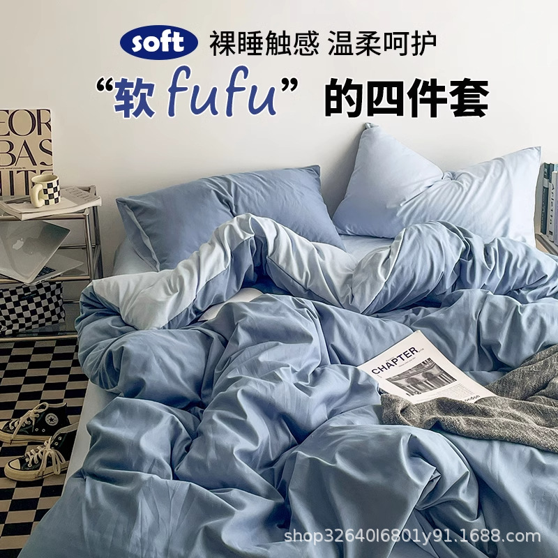 Главная страница > Ins ветер сплошной цвет водяной хлопчатобумажной наволочки набор постельного белья из четырех частей