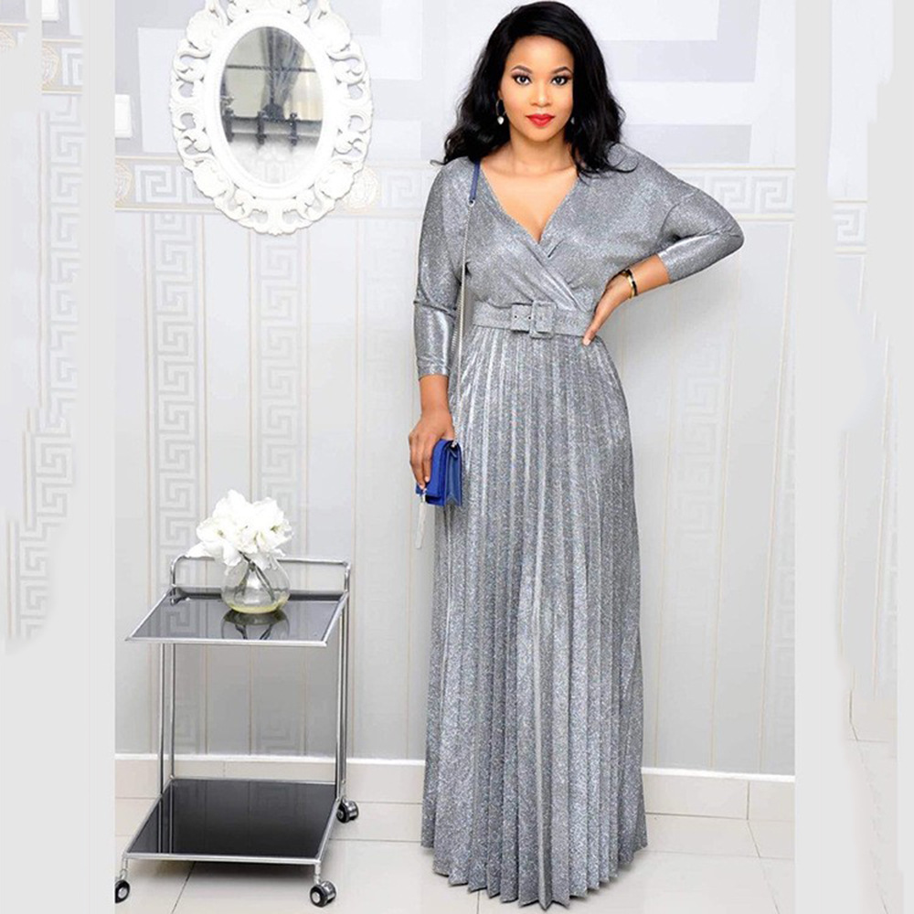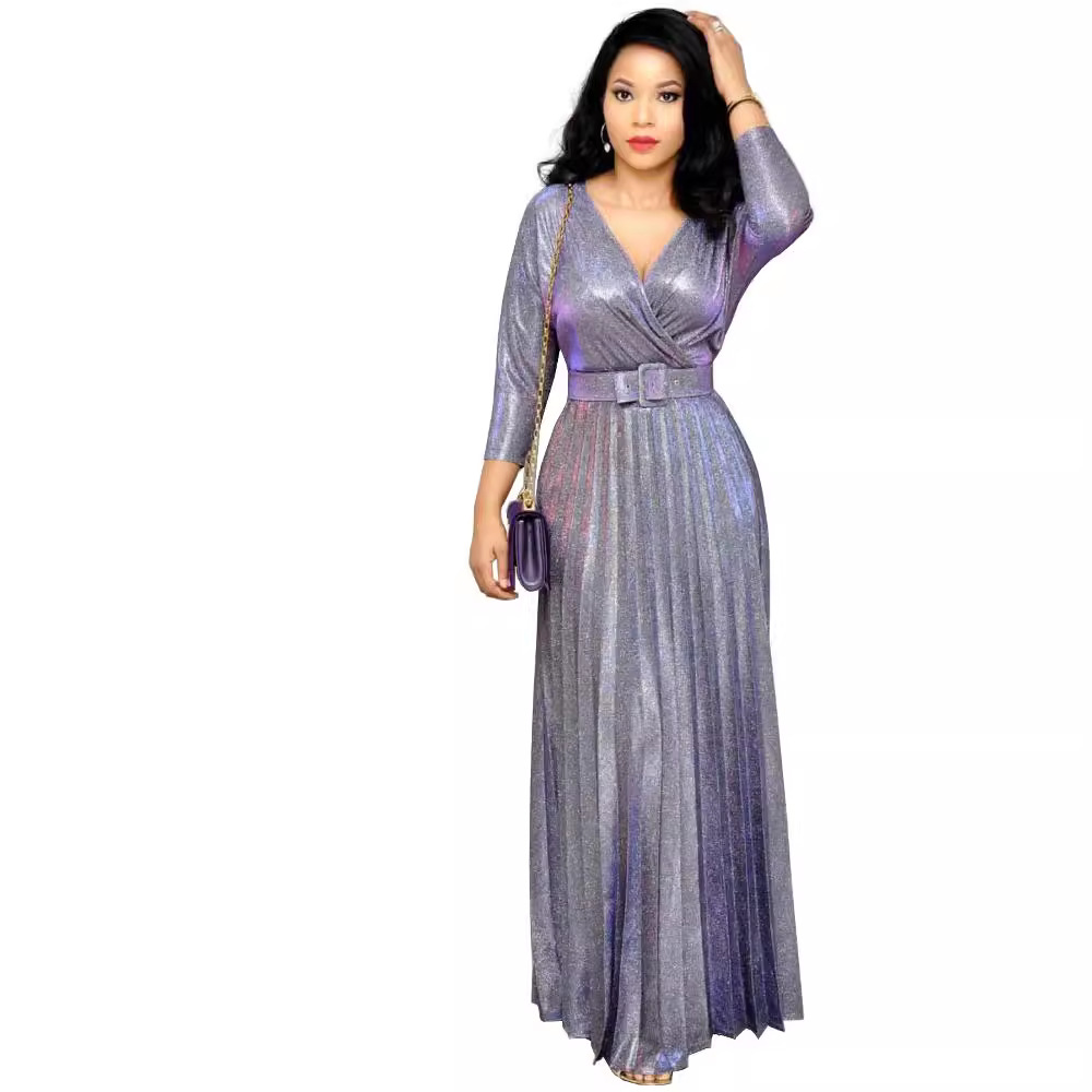 Главная страница > Зима 2025 года, трансграничная европейская и американская африканская женская модная бронзовая плиссированная юбка с длинными рукавами и поясом, блестящая ткань