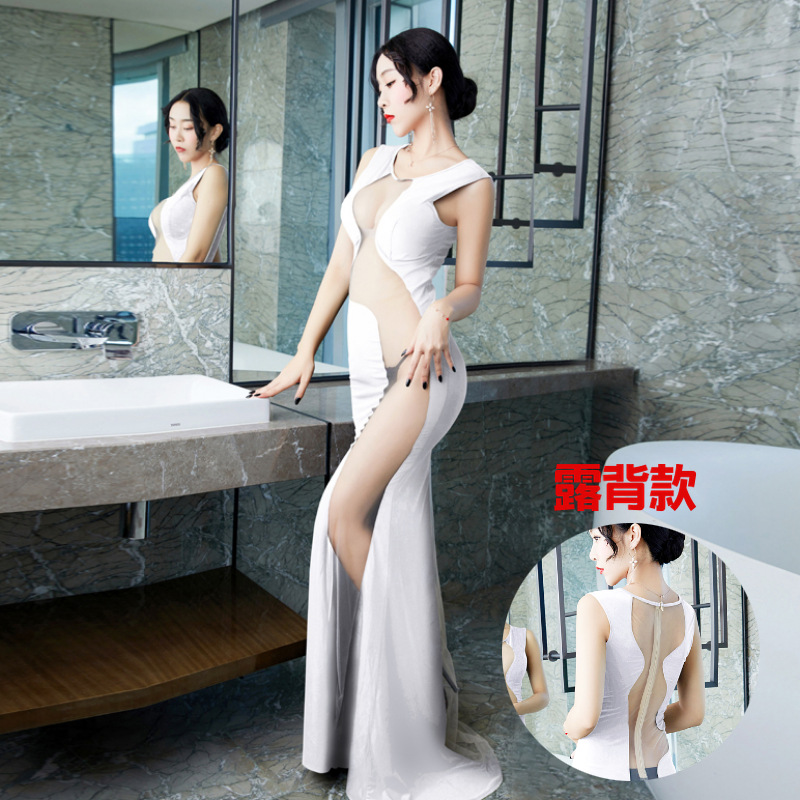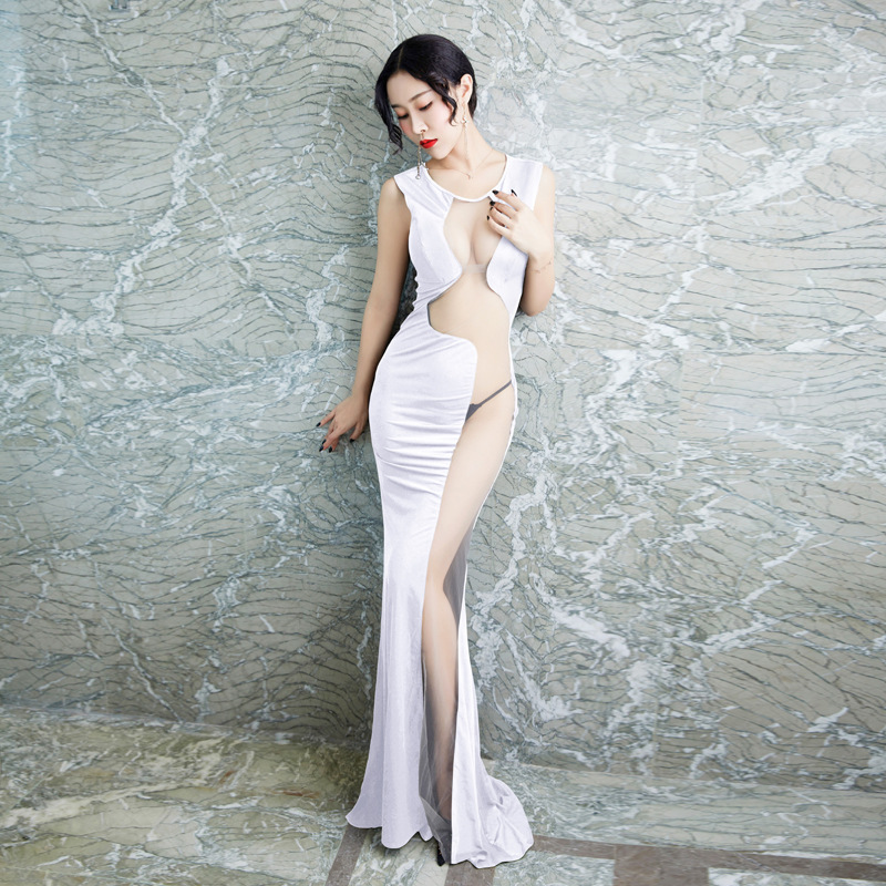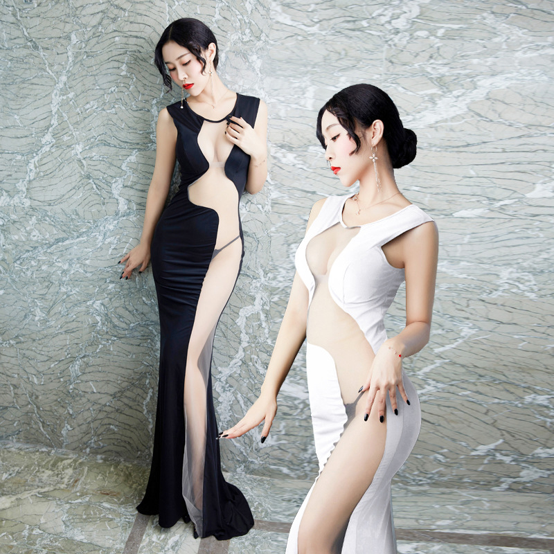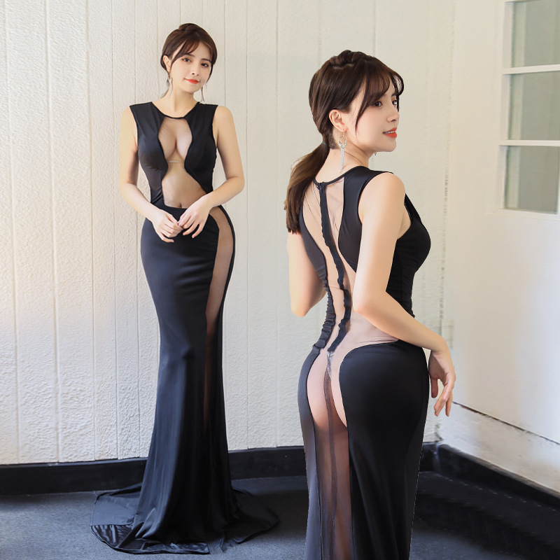 Главная страница > Сексуальное длинное Сетчатое платье с глубоким вырезом для ночного клуба, темпераментное длинное платье с разрезом для похудения, маленькое черное платье в баре