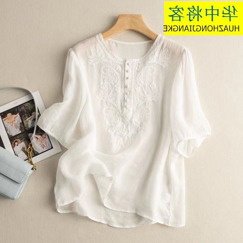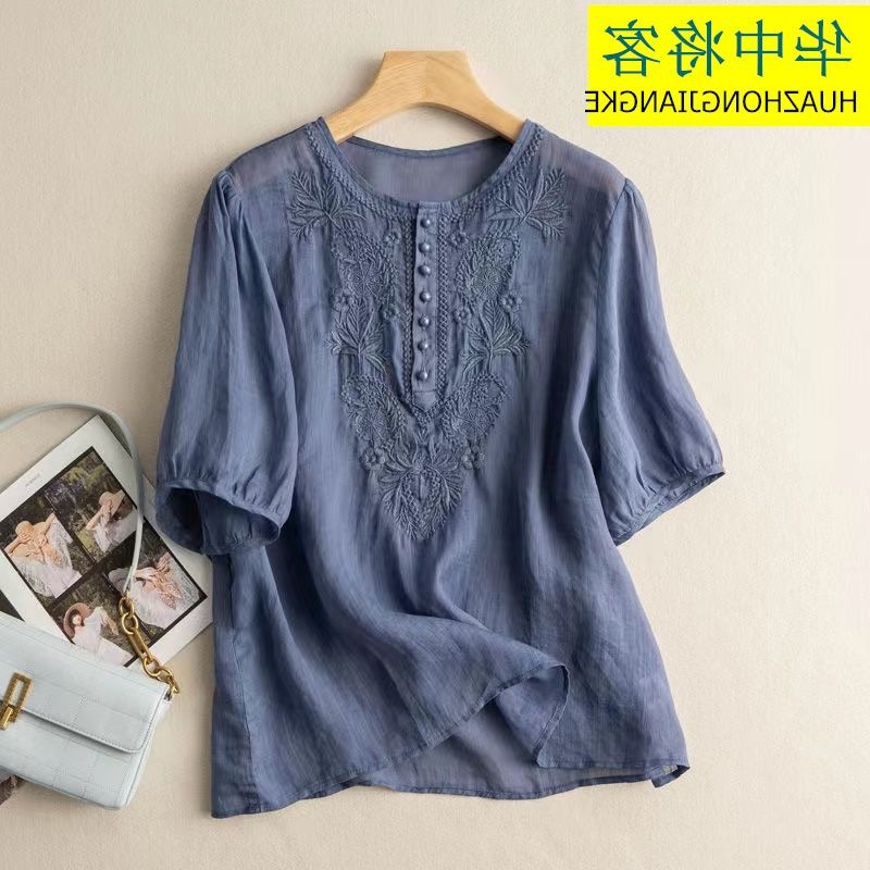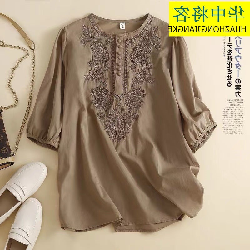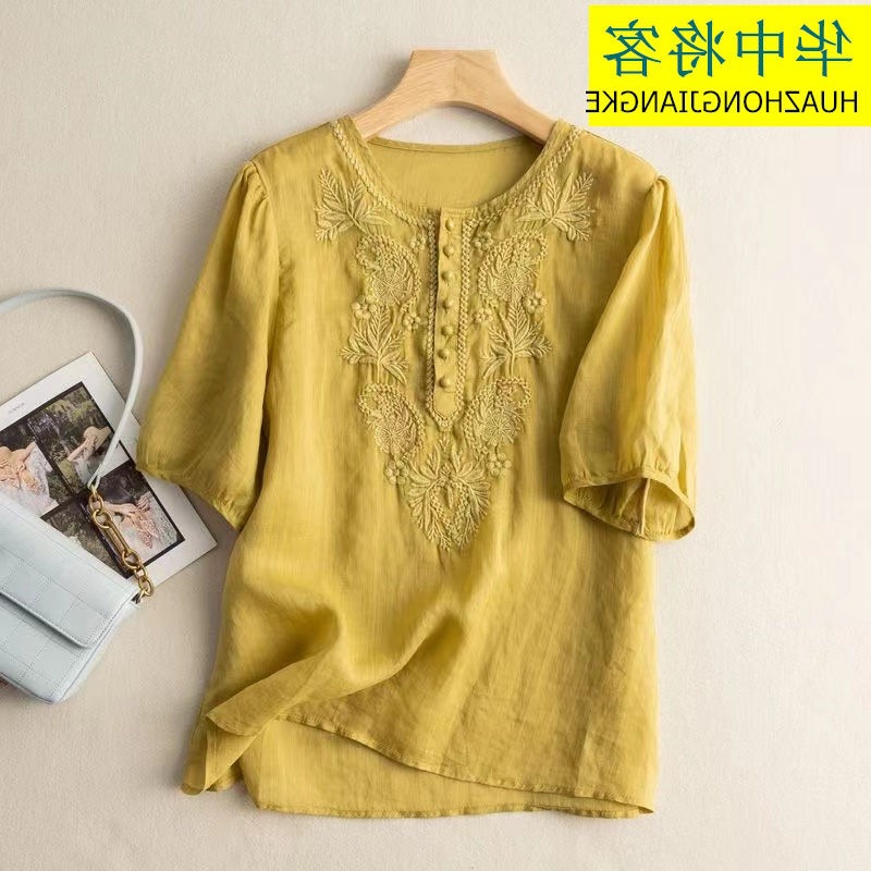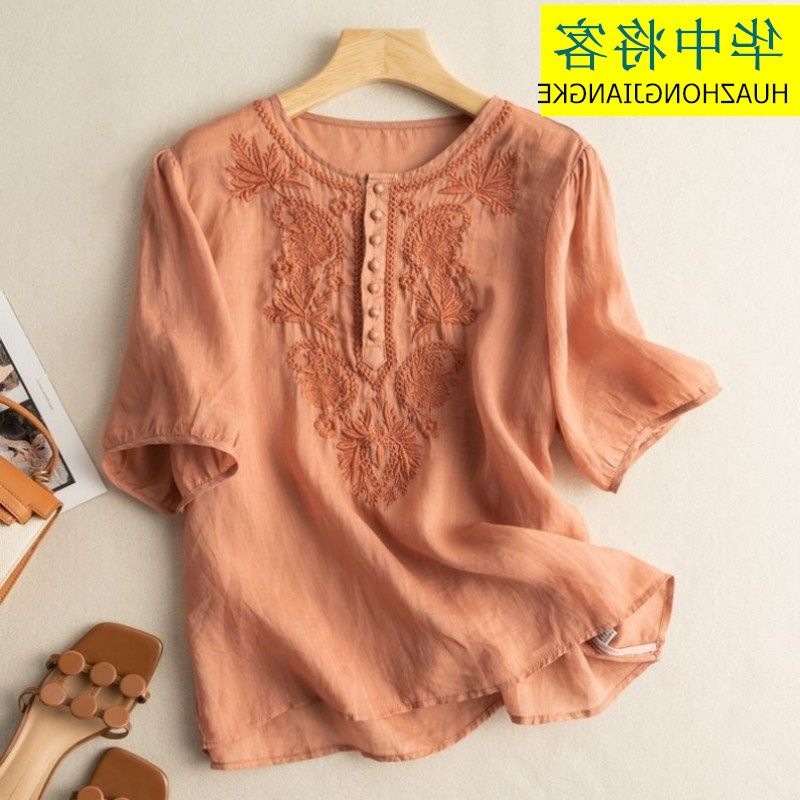 Главная страница > Экспорт внешней торговли, лето 2024, новинка из хлопка и льна, топ с рукавами 5 четвертей, свободная футболка в этническом стиле с вышивкой, женская футболка с короткими рукавами