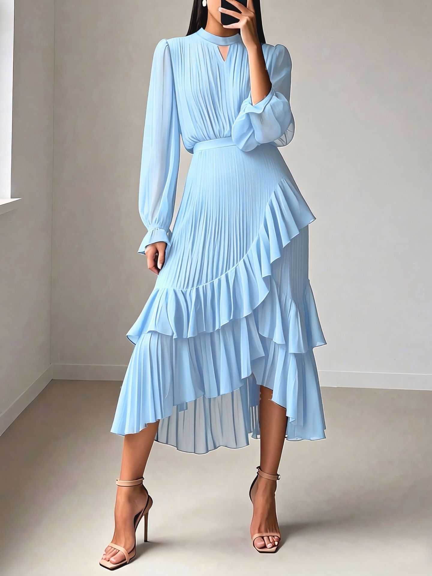 Главная страница > 2025 Европейское и американское трансграничное новое однотонное платье Ближний Восток внешняя торговля плиссированное платье с рюшами юбка средней длины Amazon