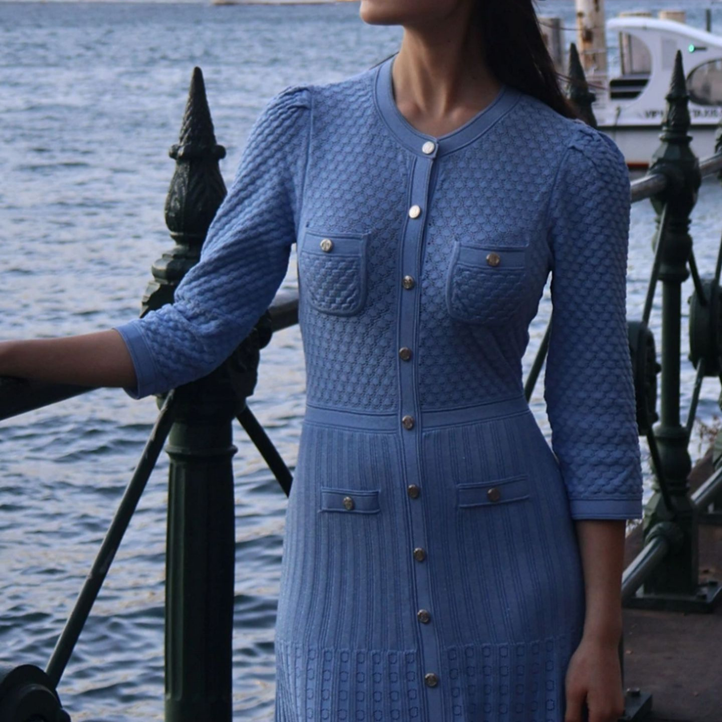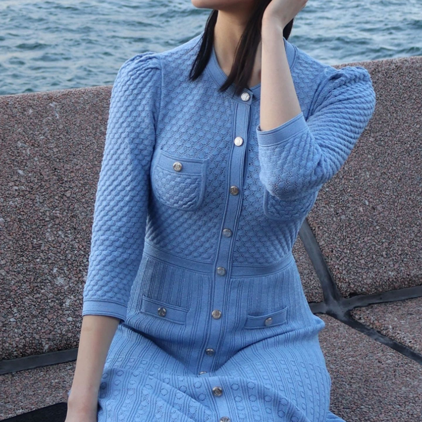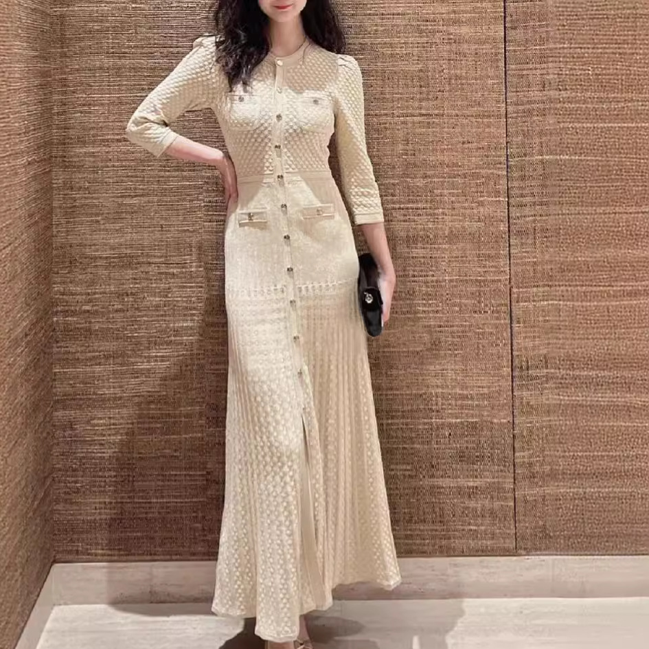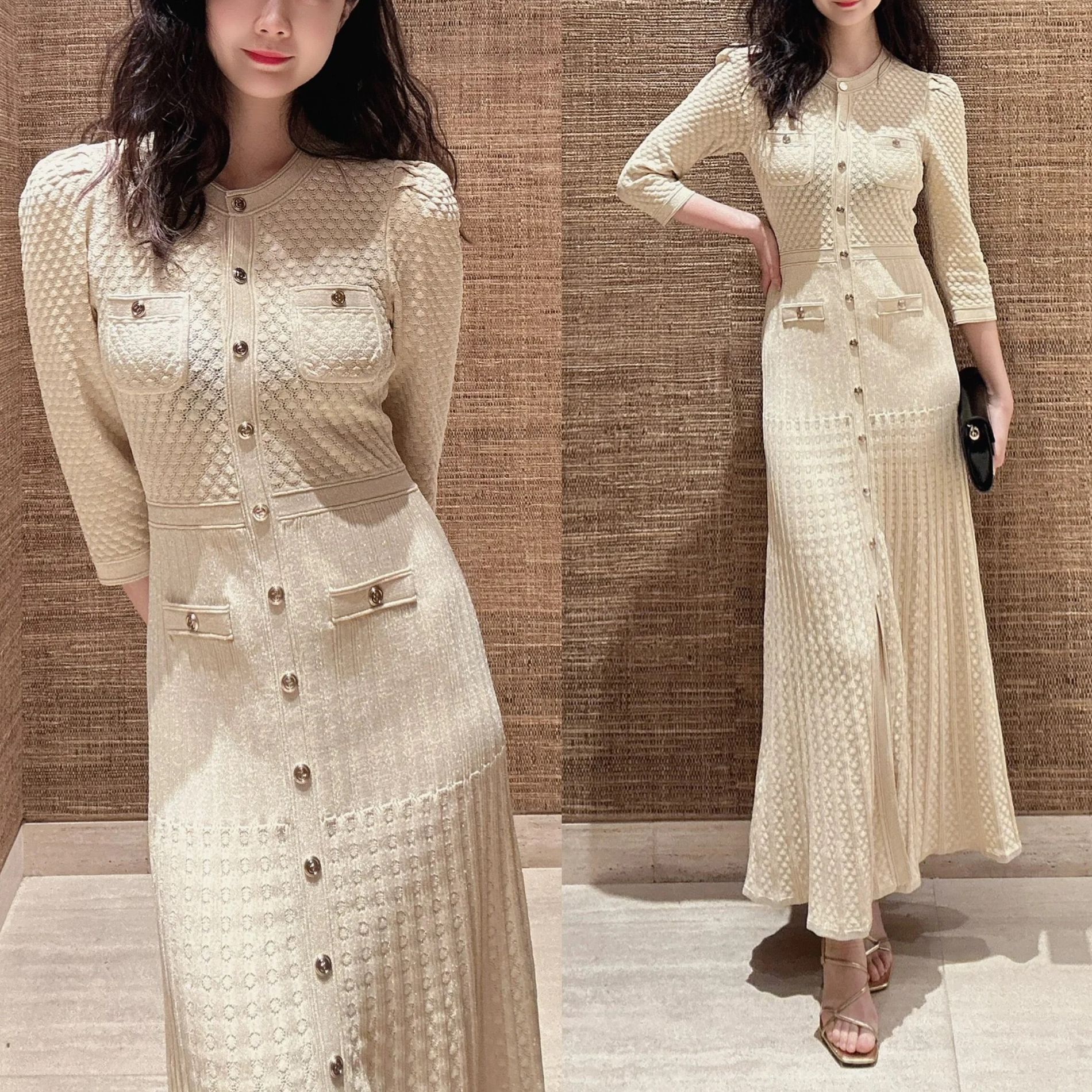 Юань качество SD Home 2024 летнее новое трикотажное приталенное полое французское светское нишевое Платье женское платье