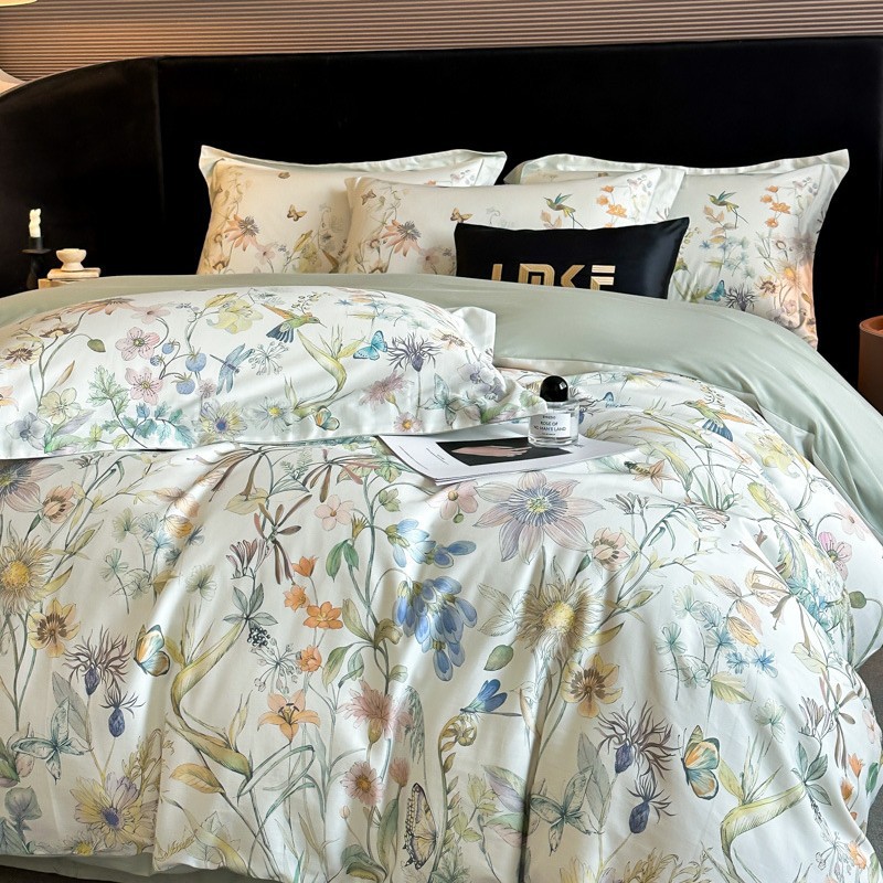 Весенне-летний новый комплект из 60 предметов: постельное белье из чистого хлопка, четыре предмета, с принтом, пододеяльник из чистого хлопка, легкий люкс, высококачественный, натяжная простыня, подарок, домашний текстиль