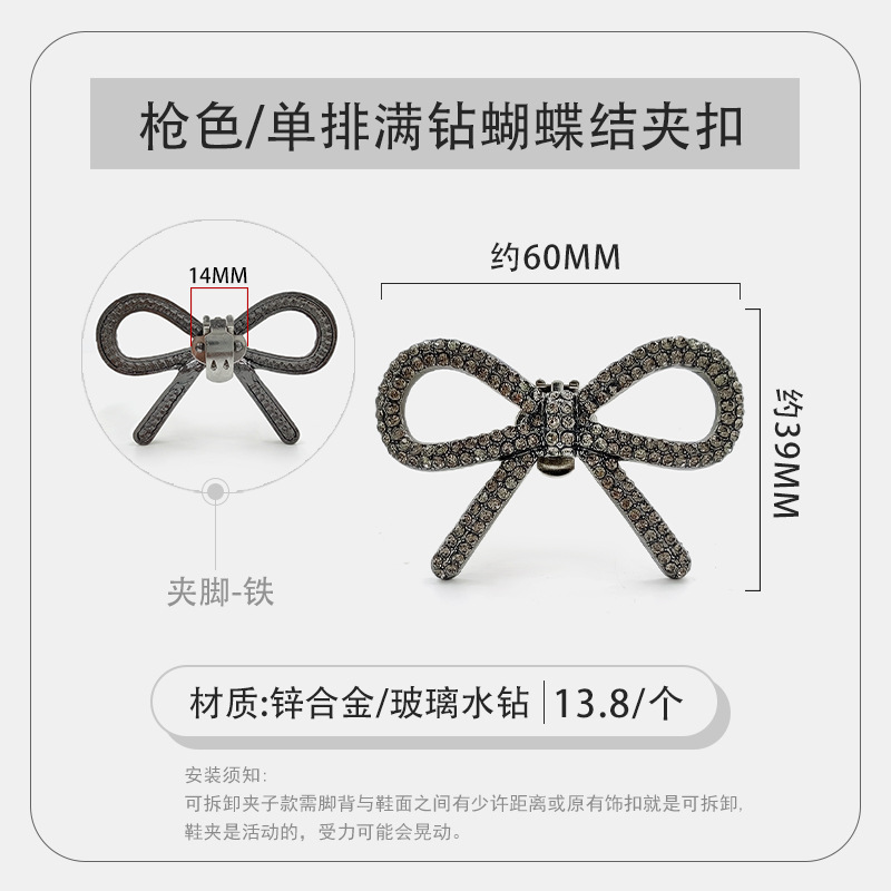 B1096, цвет пистолета из сплава, однорядный, с полным алмазным бантом, съемный зажим, 39x60 мм/пара