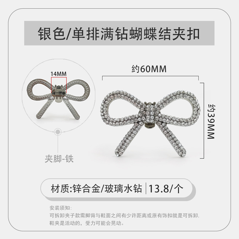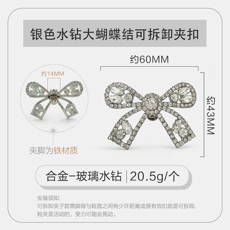 B1094 сплав серебра-однорядный съемный зажим с полным бриллиантовым бантом-39x60 мм/пара