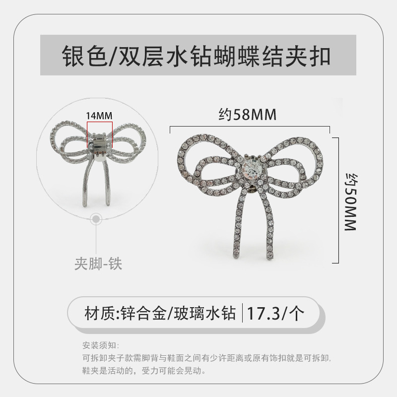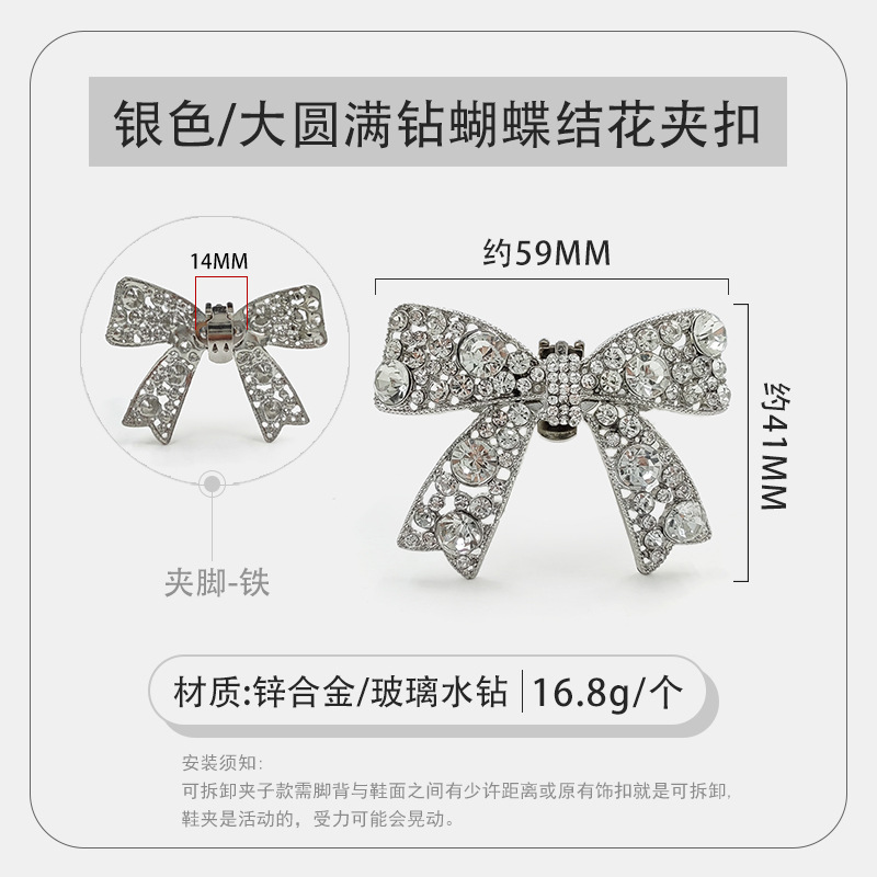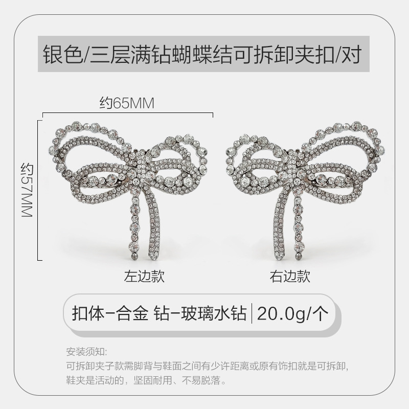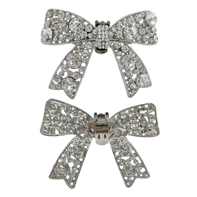 B1066-B1050 сплав серебро-трехслойный полный бриллиантовый бант-съемный зажим 65x57 мм/пара