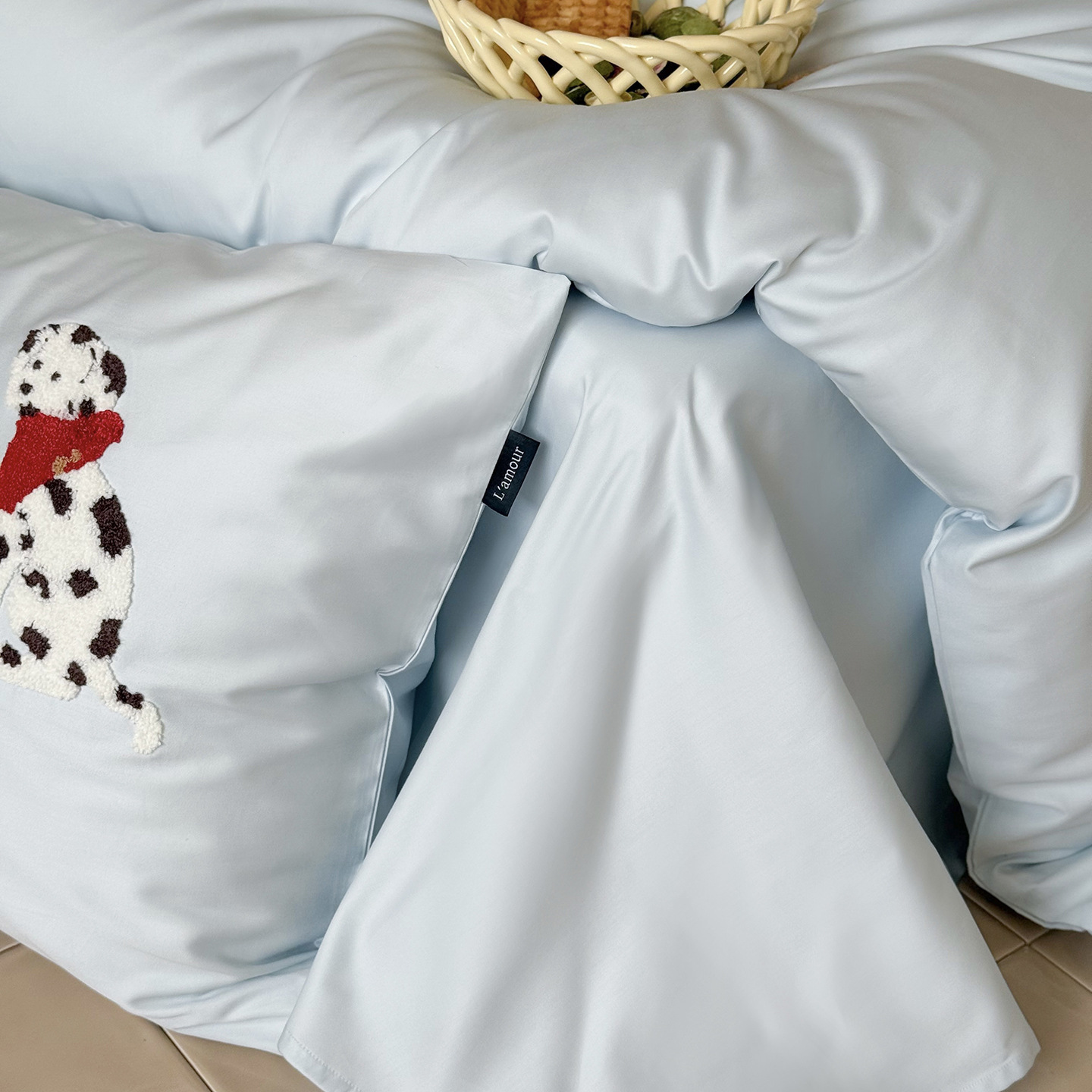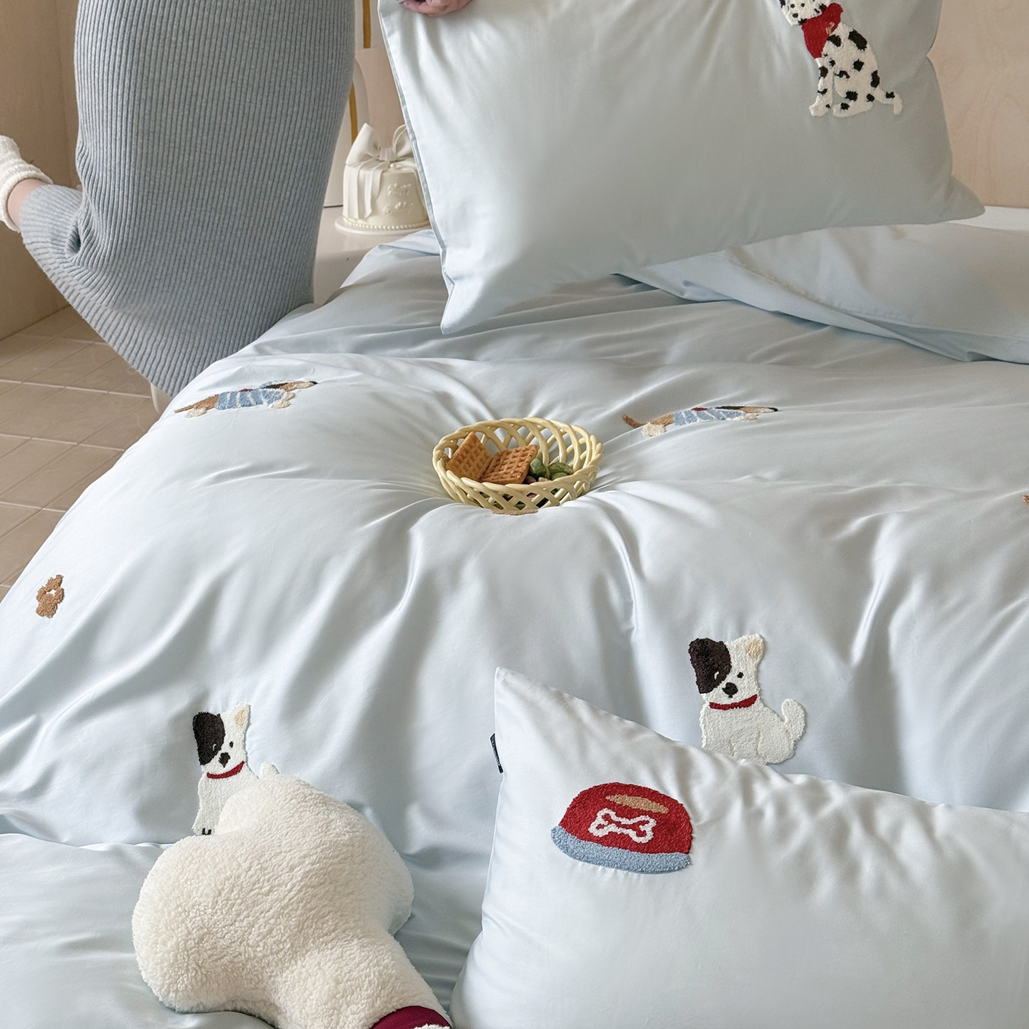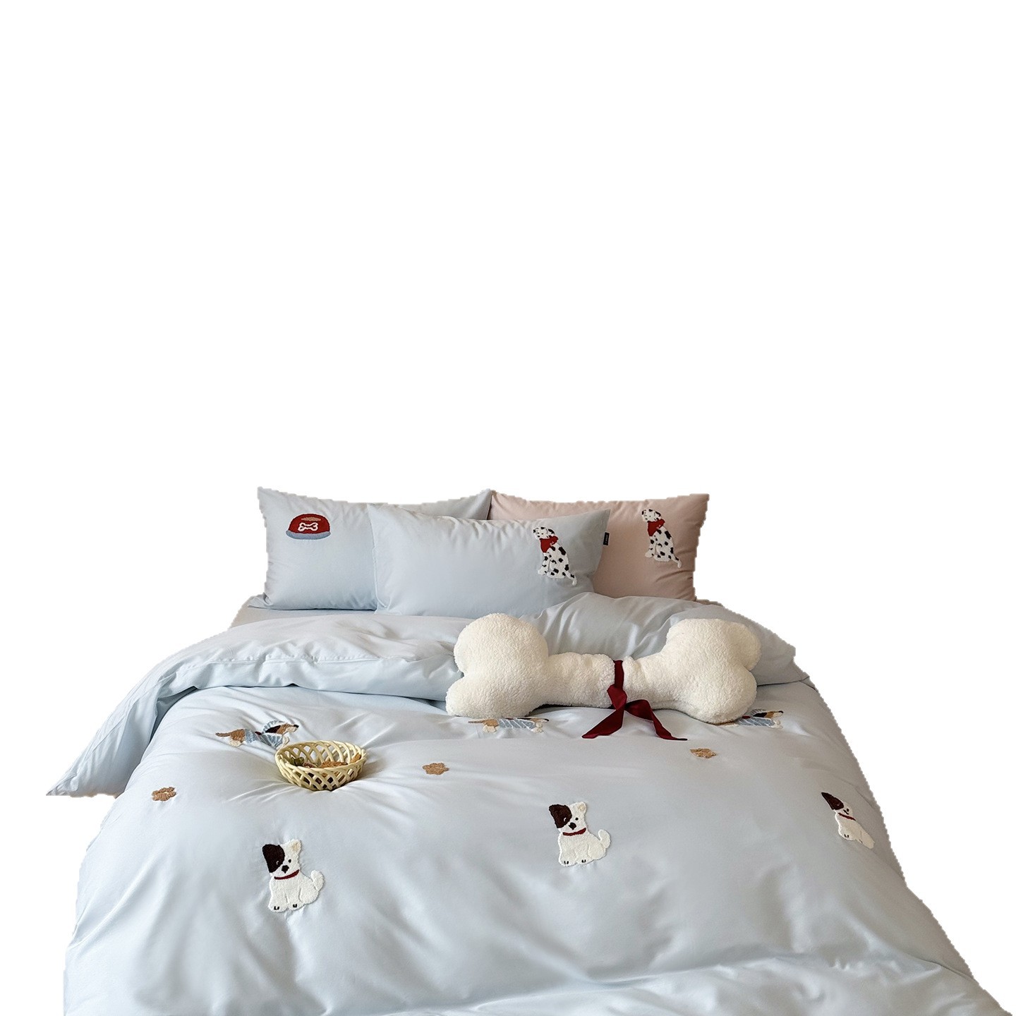 Главная страница > Милый щенок, вышивка, 100S, чистый хлопок, длинноволокнистый хлопок, комплект из четырех предметов, атласное хлопковое одеяло с рисунком, простыни, постельное белье