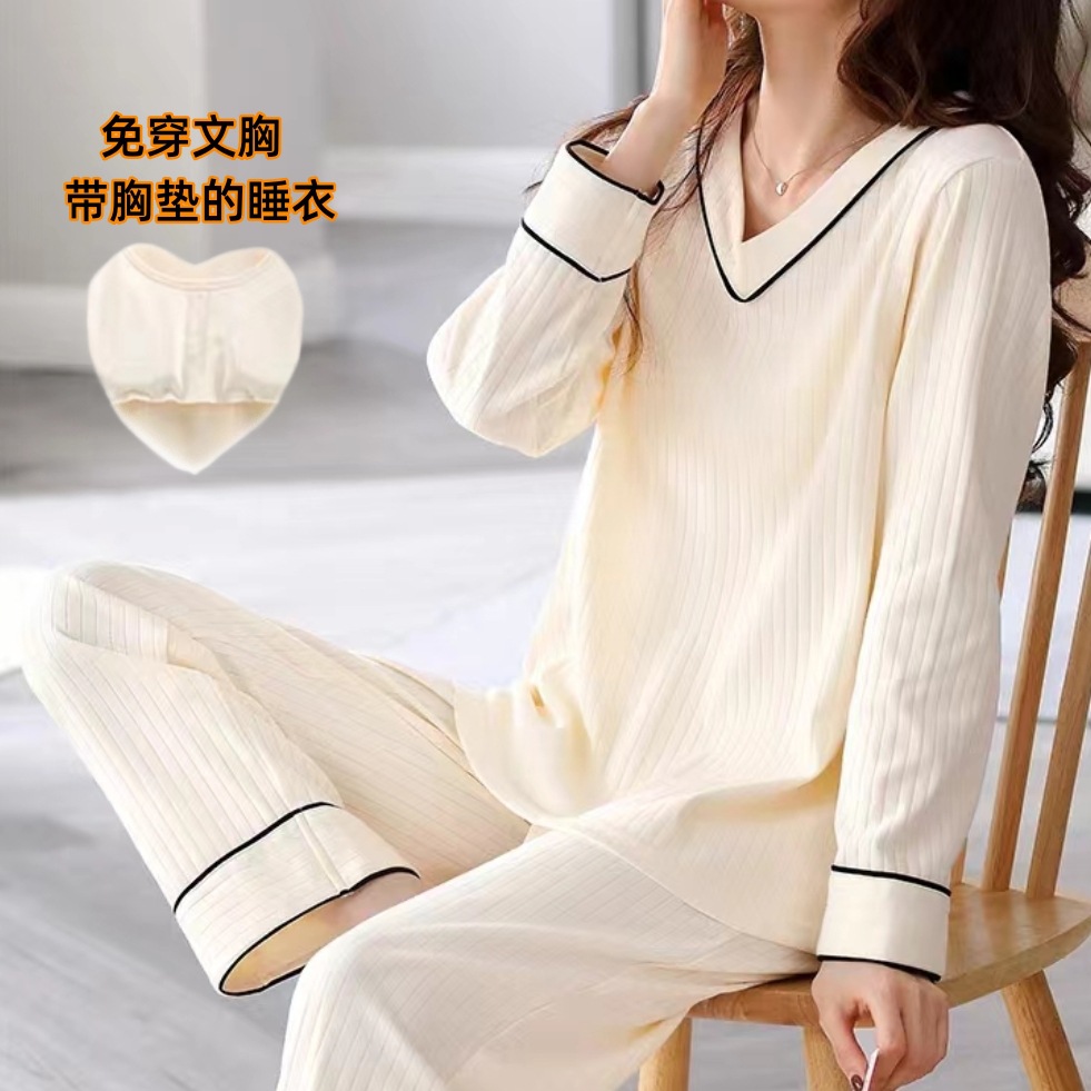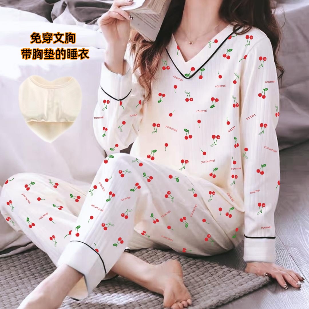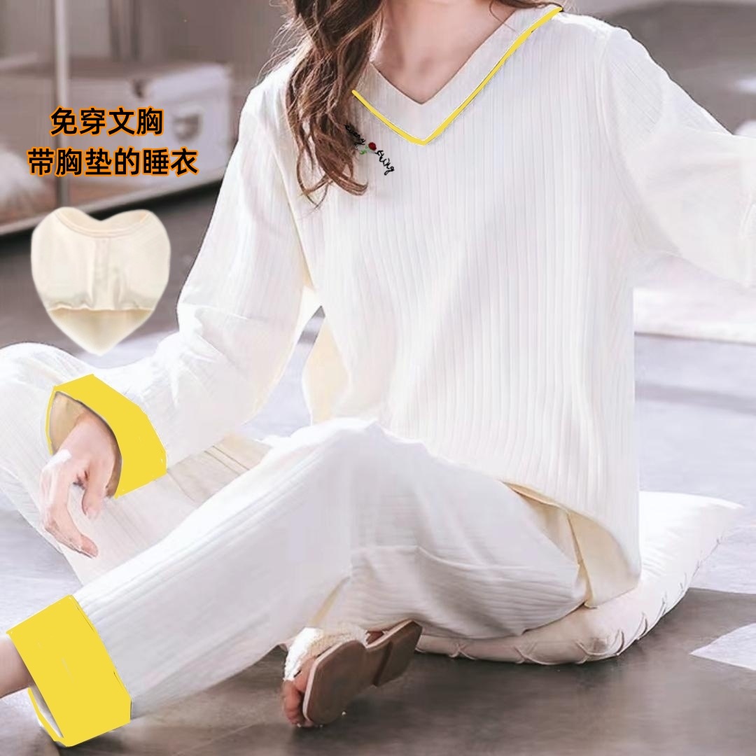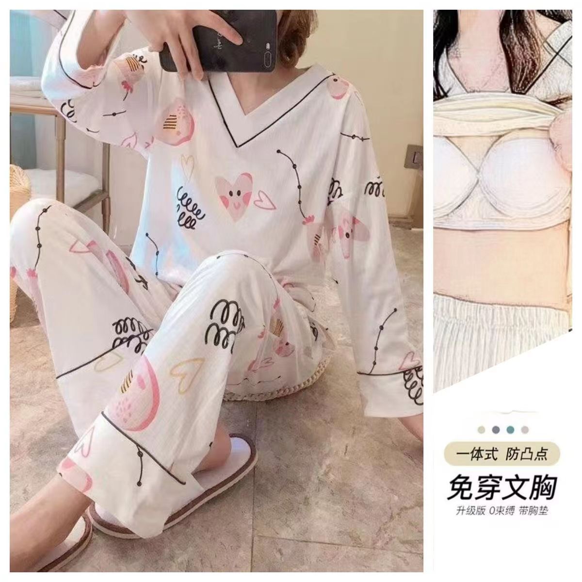 Главная страница > С нагрудным ковриком, чтобы предотвратить выпуклость пижамы, женские весенние и осенние длинные рукава, тонкие корейские домашние костюмы, женские осенние