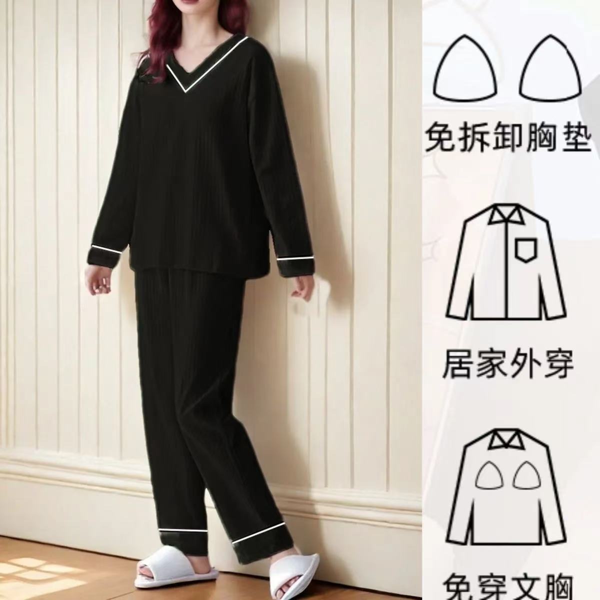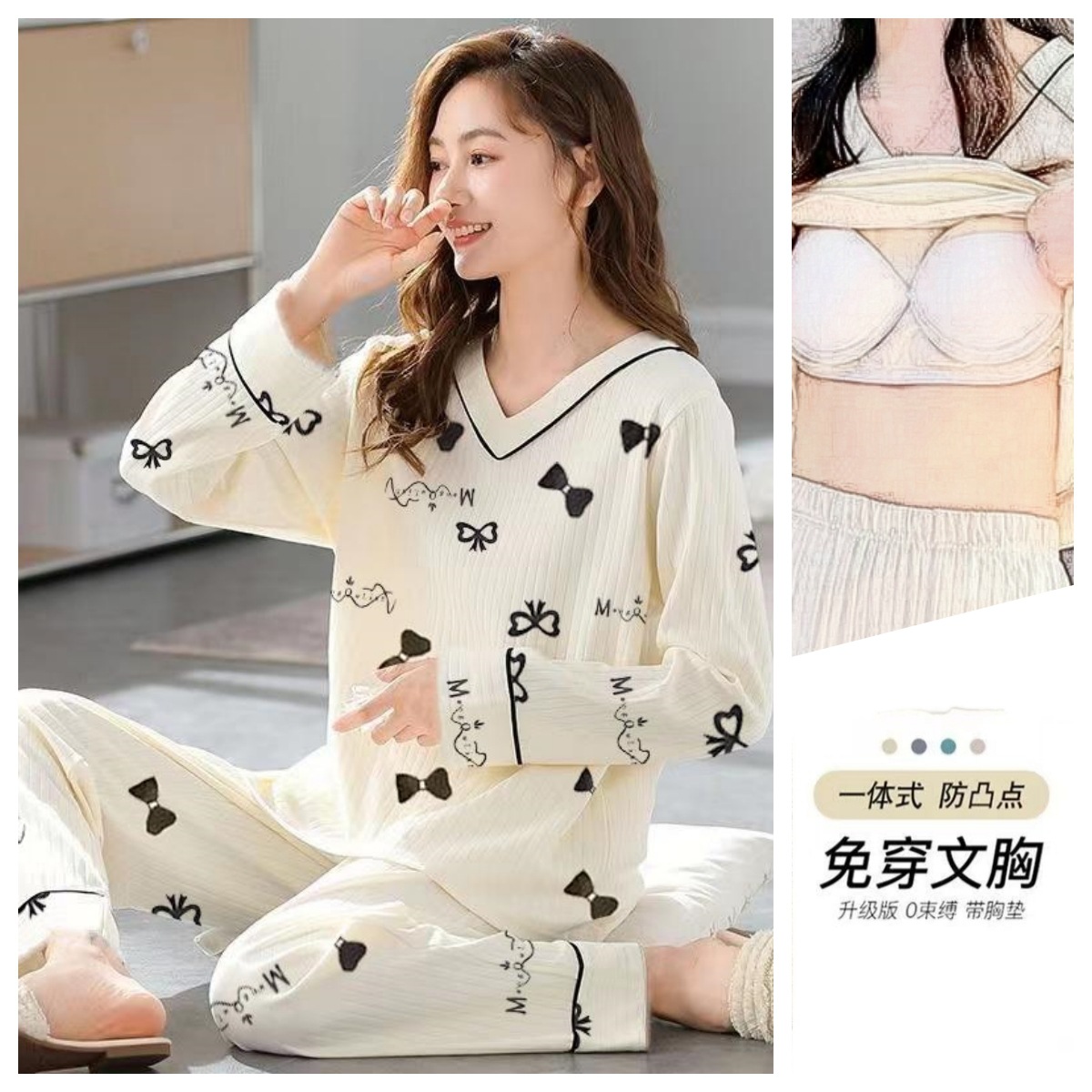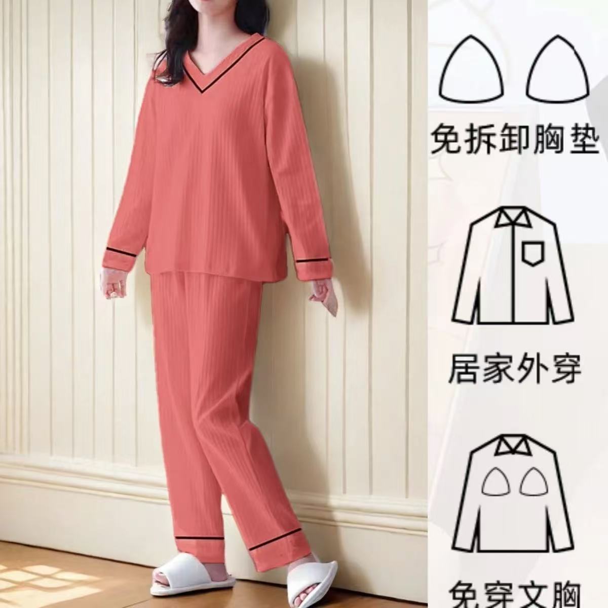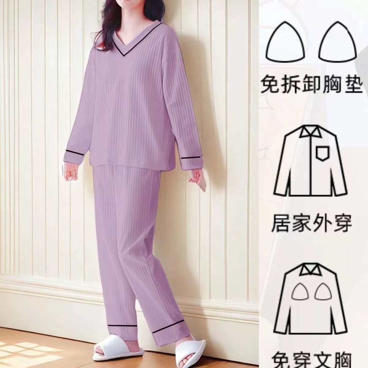 Главная страница > С нагрудным ковриком, чтобы предотвратить выпуклость пижамы, женские весенние и осенние длинные рукава, тонкие корейские домашние костюмы, женские осенние
