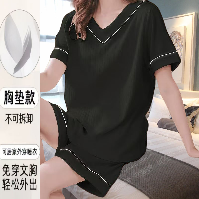 [Брюки с короткими рукавами] Черный костюм с V-образным вырезом и нагрудной подушечкой, мягкая ткань, качество супермаркета.