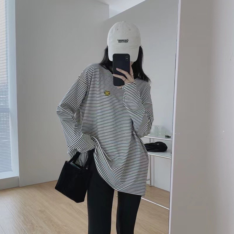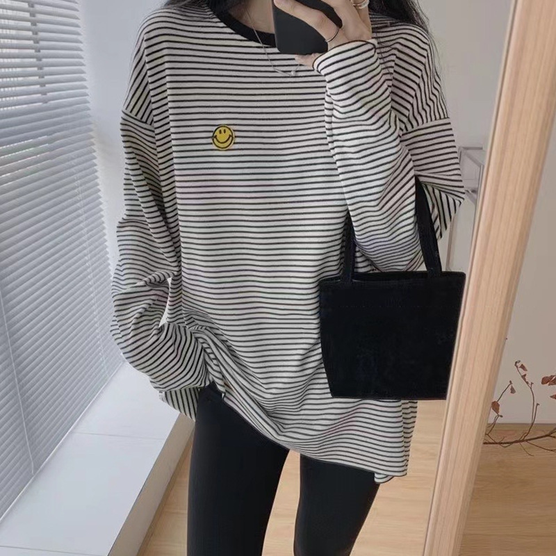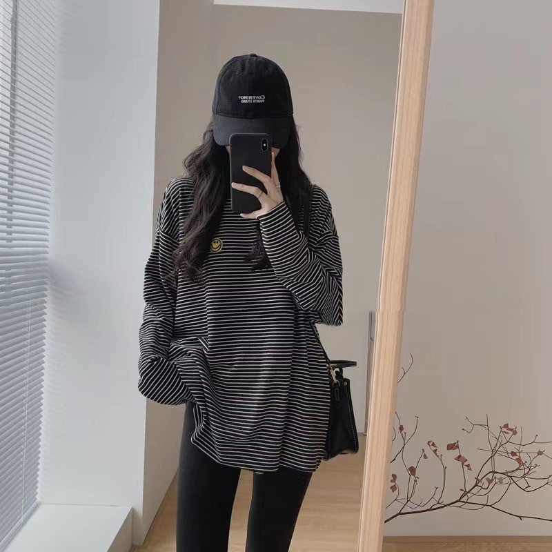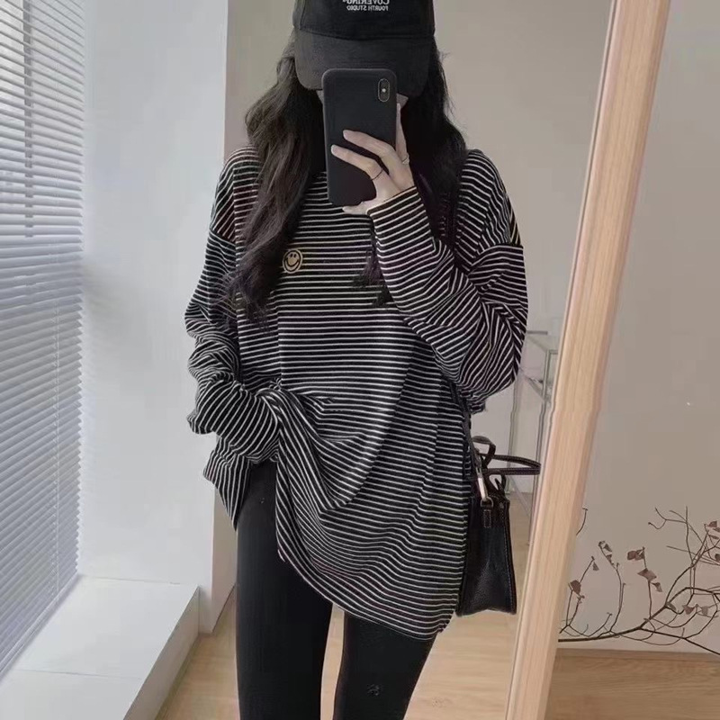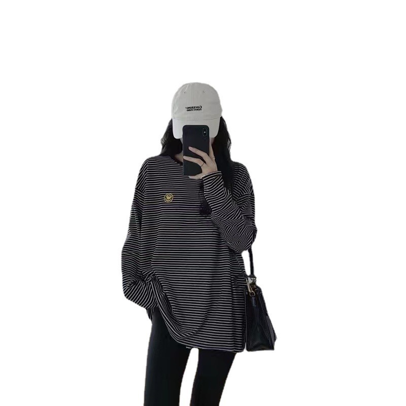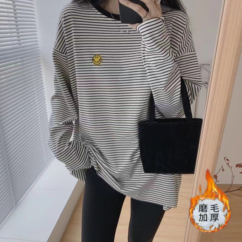 Главная страница > 2024 осень и зима новая полосатая футболка с длинными рукавами женская хлопчатобумажная рубашка с толстым дном