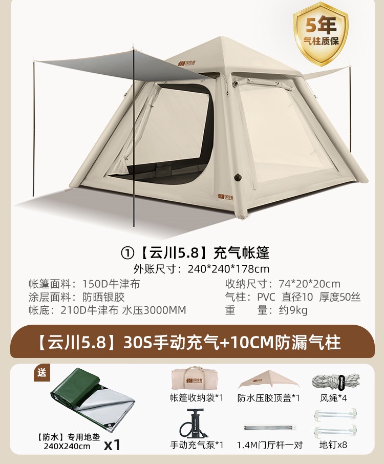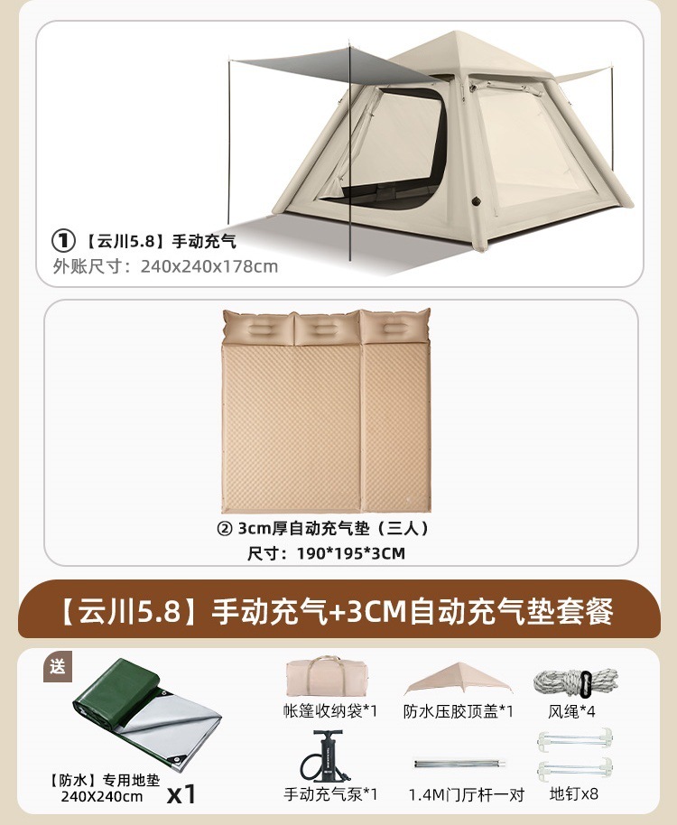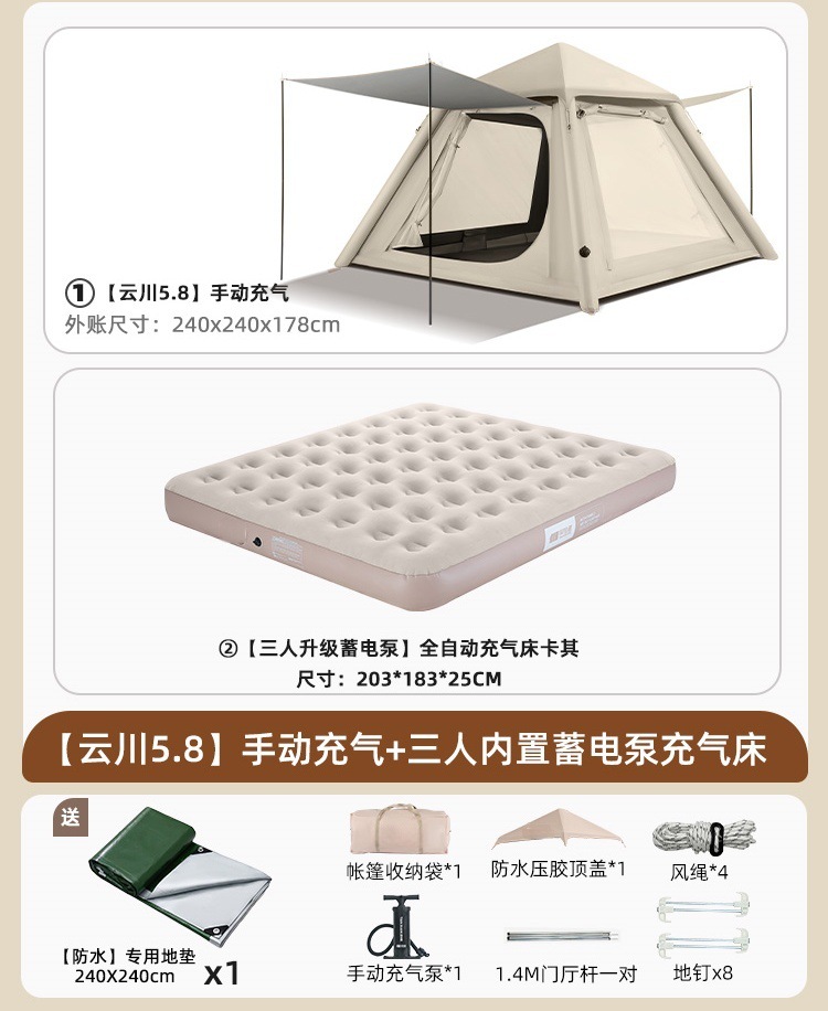 [Yunchuan 5.8] Ручная надувная надувная кровать + встроенный электрический накопительный насос для трех человек