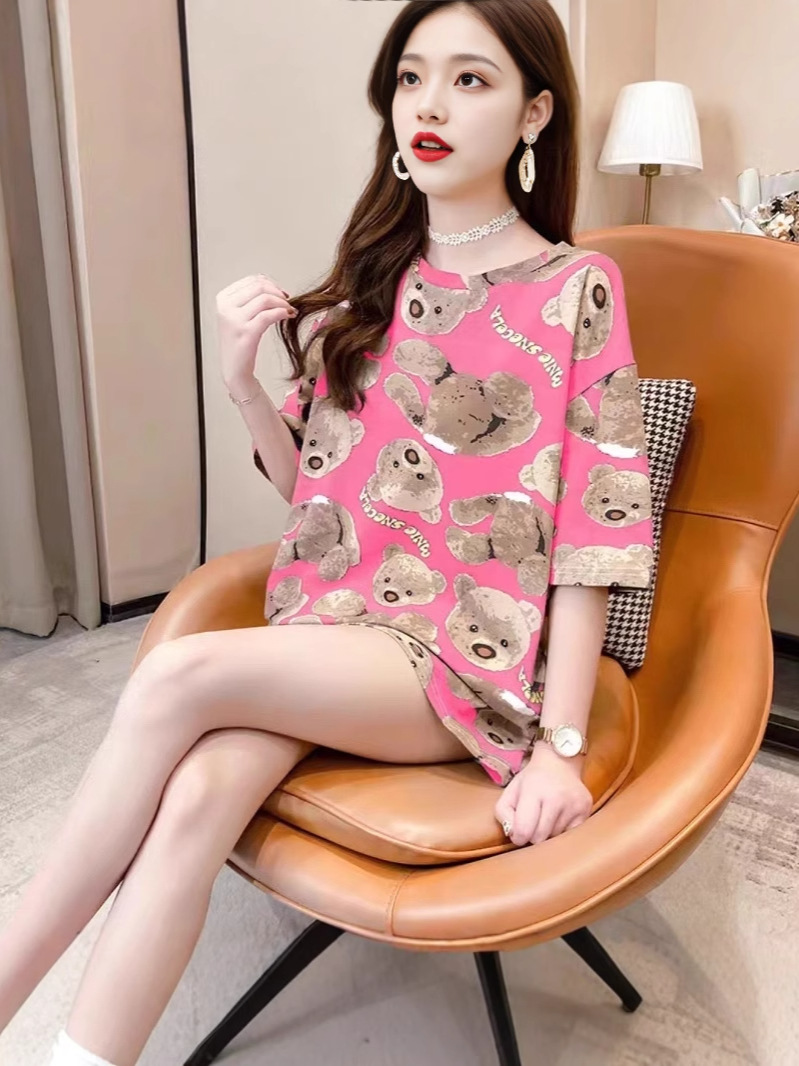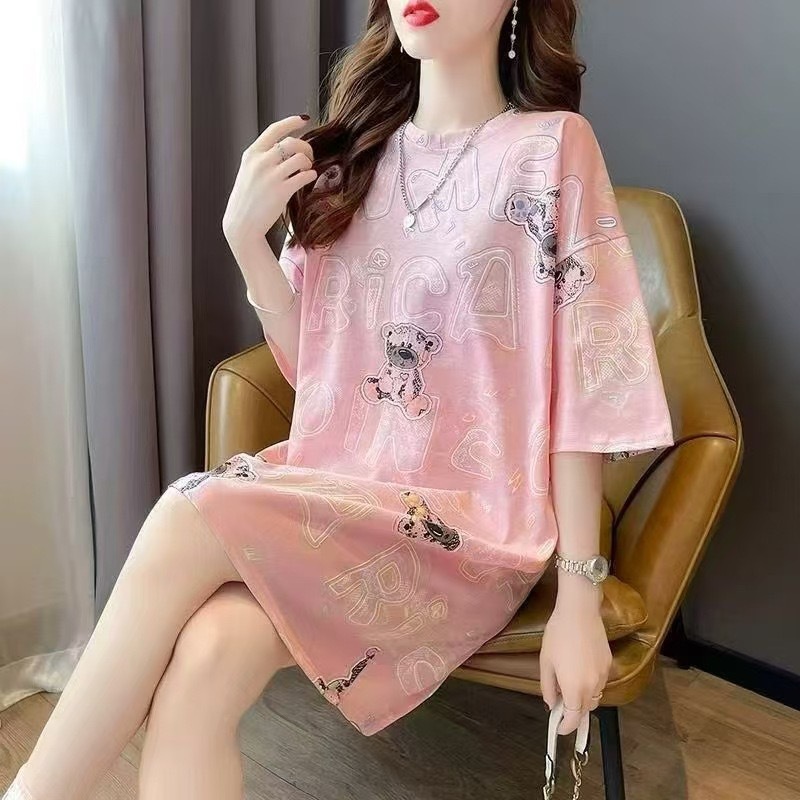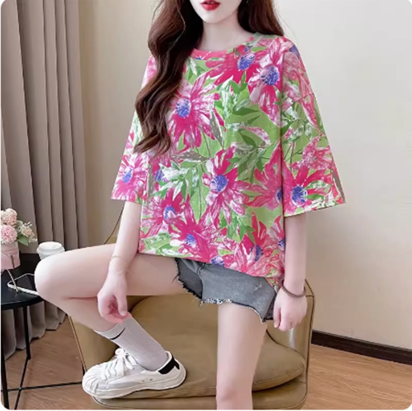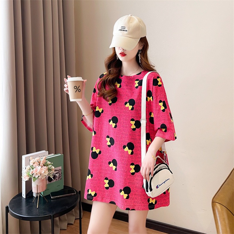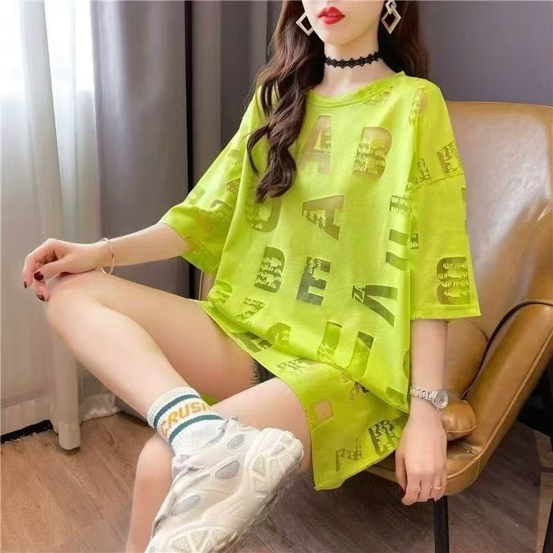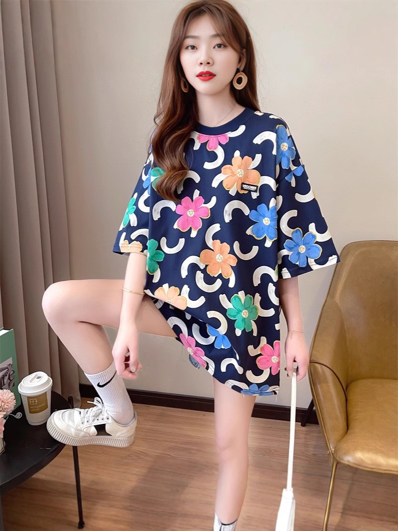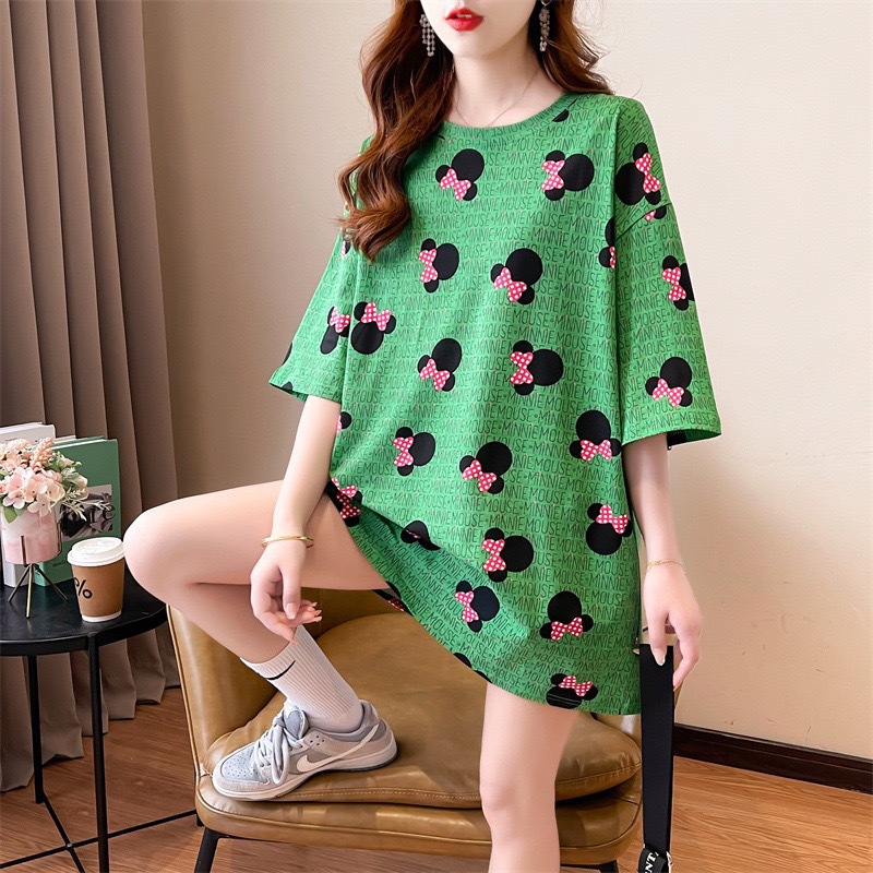 Главная страница > Новая стильная летняя футболка для девочек и студентов, женская женская тонкая свободная футболка средней длины с короткими рукавами больших размеров в корейском стиле с принтом