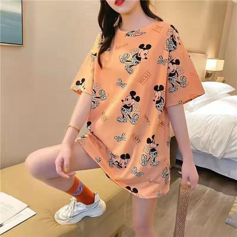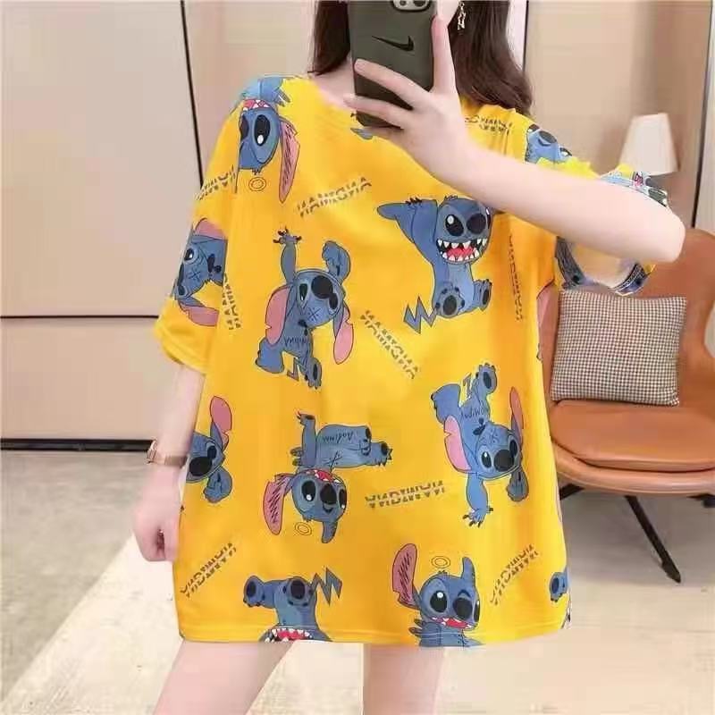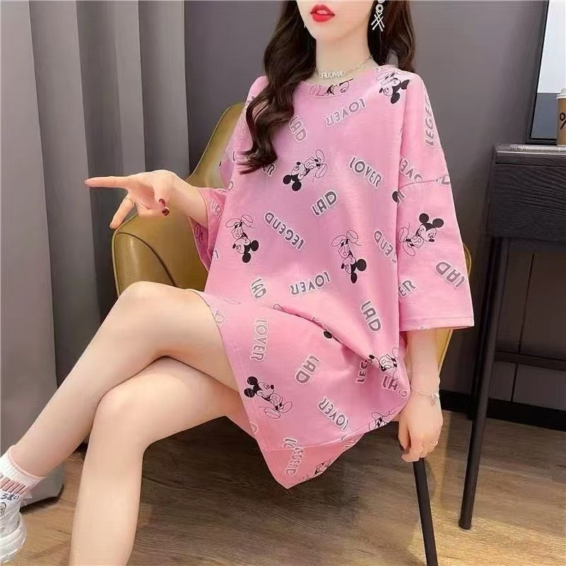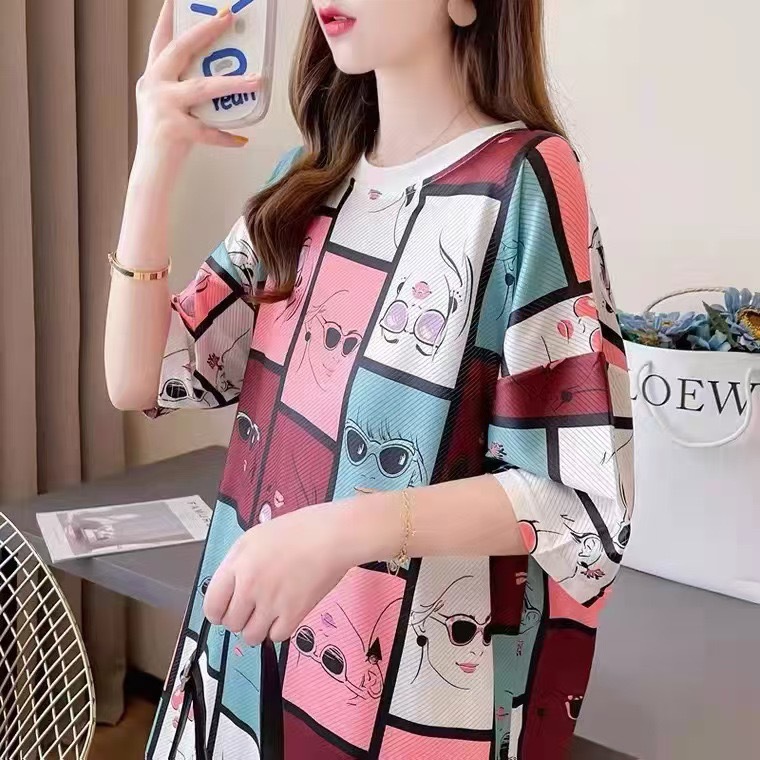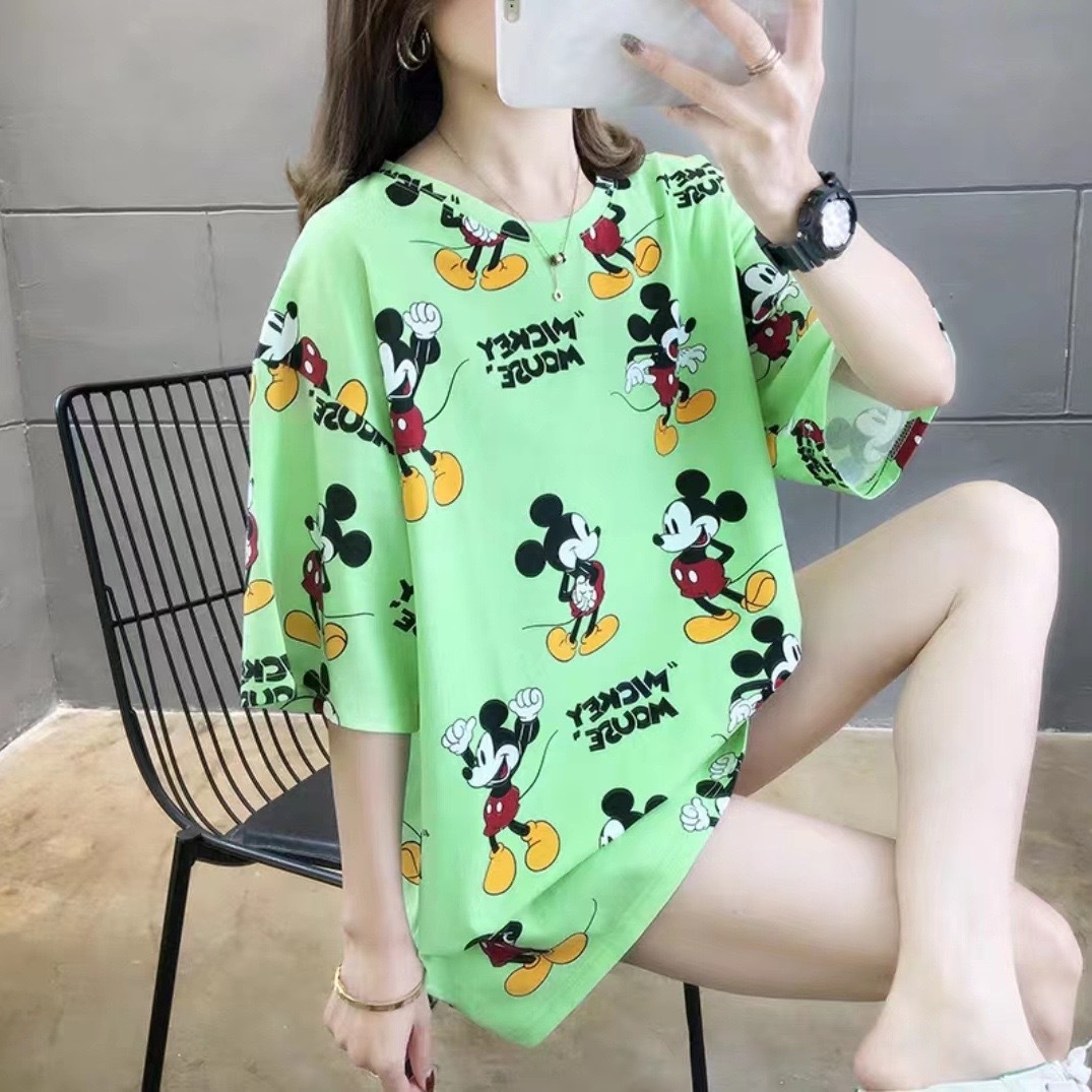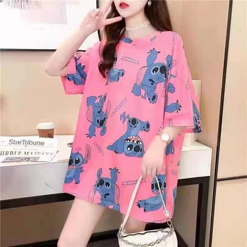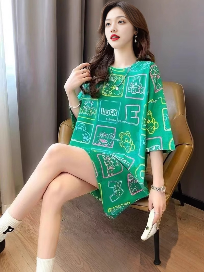 Главная страница > Новая стильная летняя футболка для девочек и студентов, женская женская тонкая свободная футболка средней длины с короткими рукавами больших размеров в корейском стиле с принтом