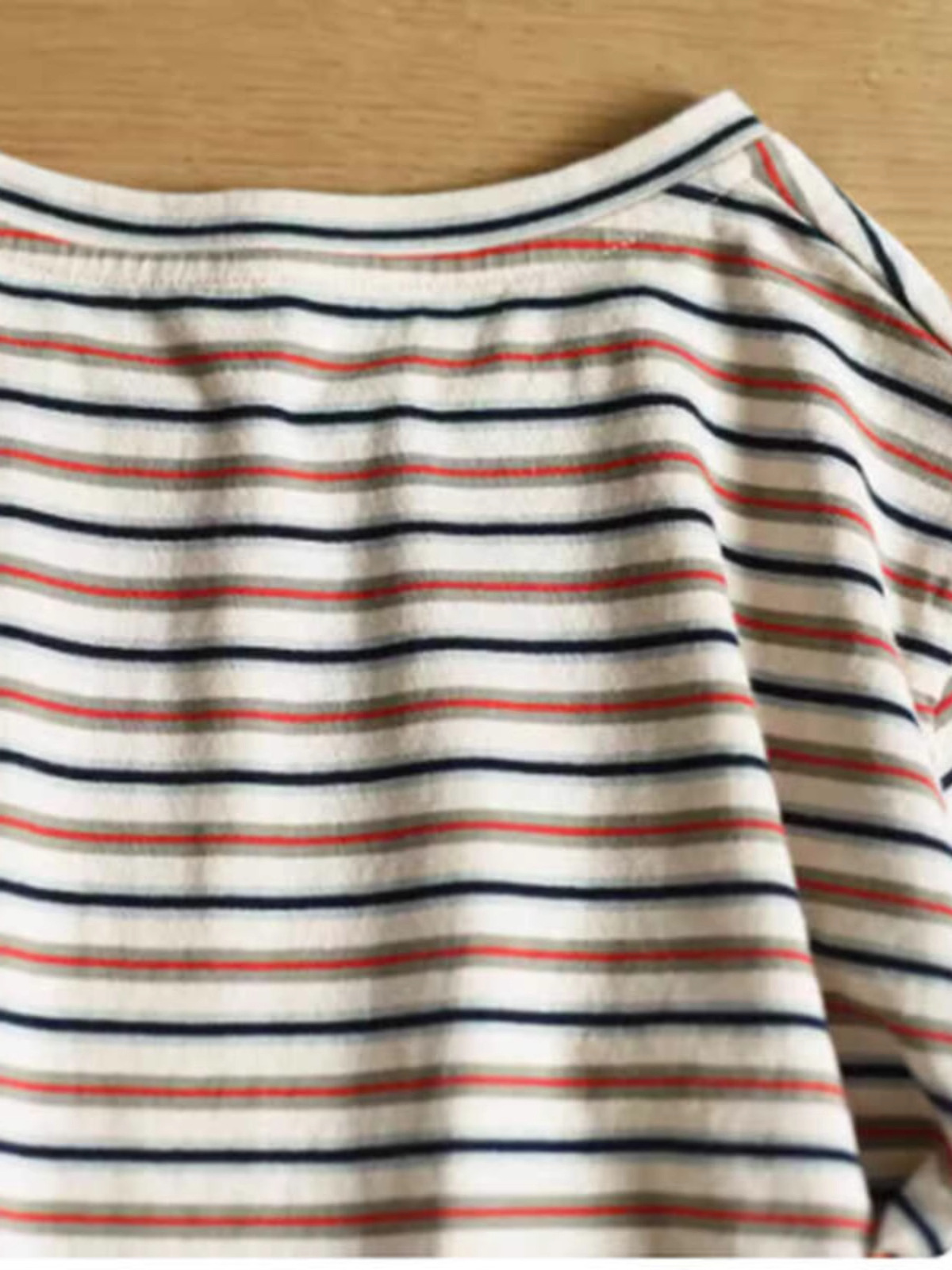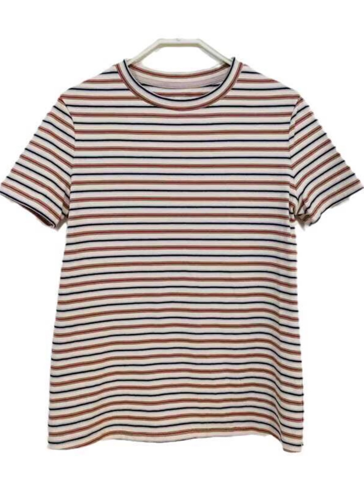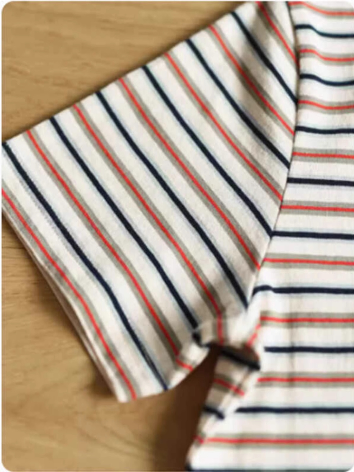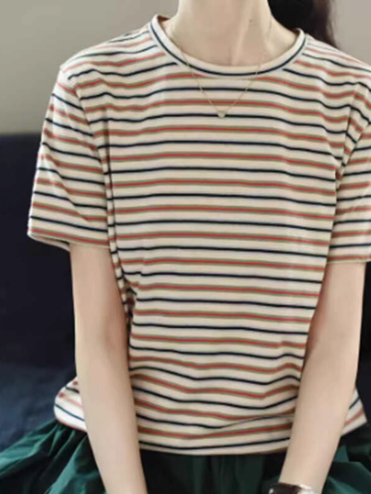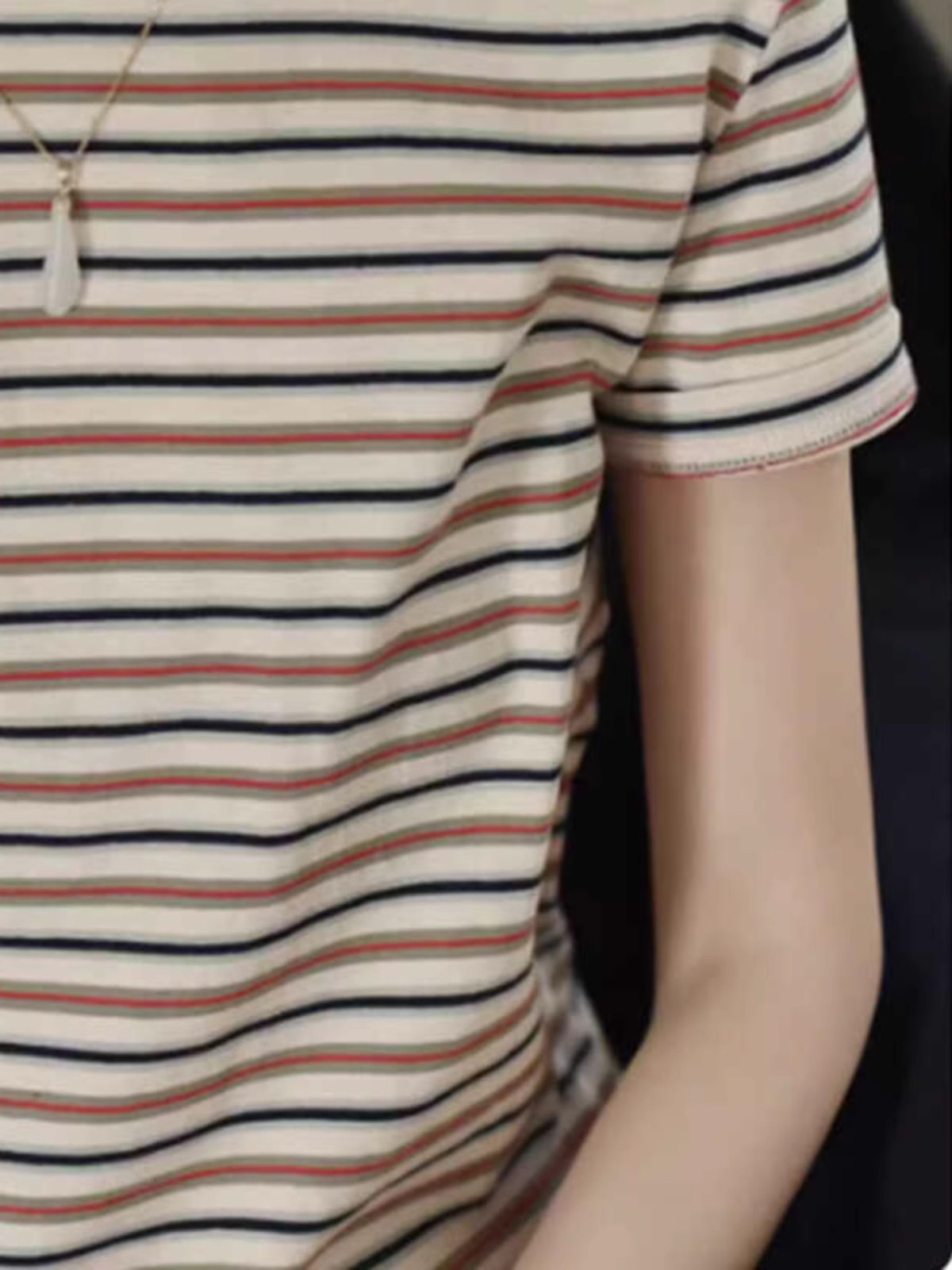 Главная страница > Летняя повседневная футболка в полоску с круглым вырезом, женская универсальная футболка с короткими рукавами из чистого хлопка, новинка 2025 года, утягивающая нижняя часть