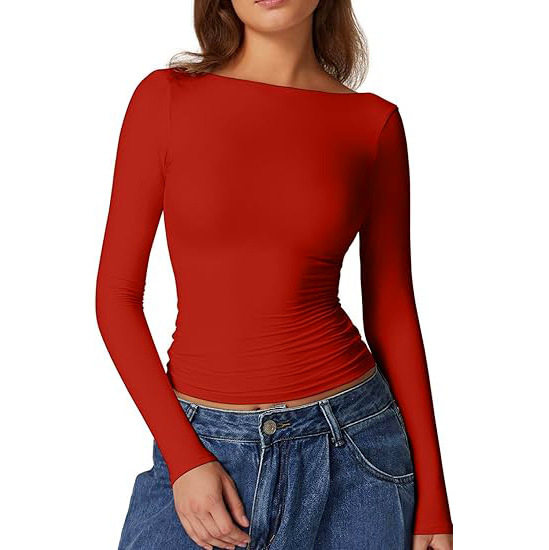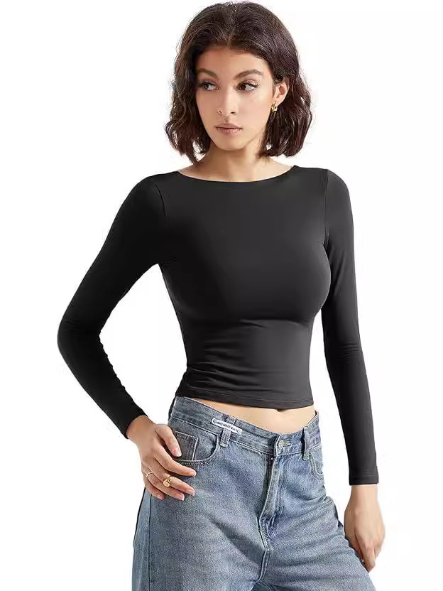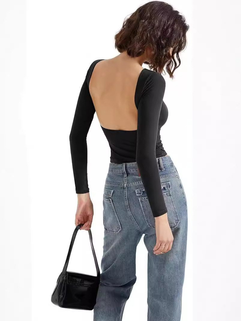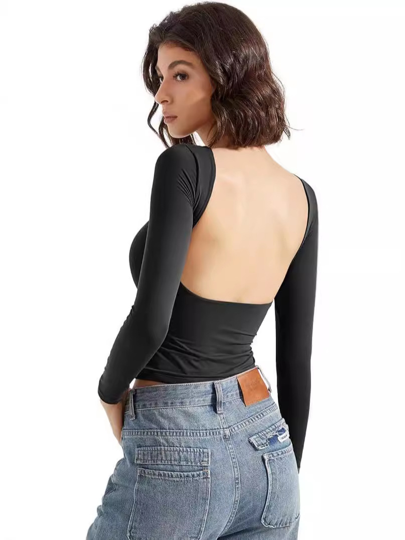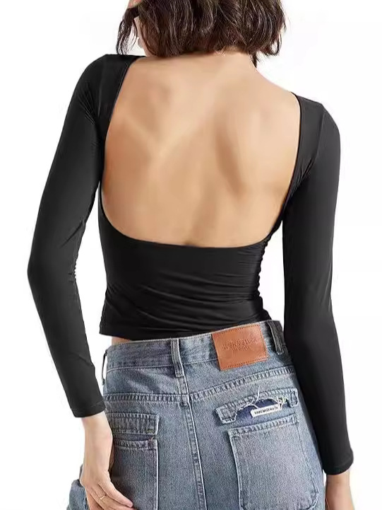 Европейские и американские женские топы, футболки с длинными рукавами и круглым вырезом на спине, летние базовые рубашки в стиле чистого желания для женщин, нижнее белье в пикантном стиле.