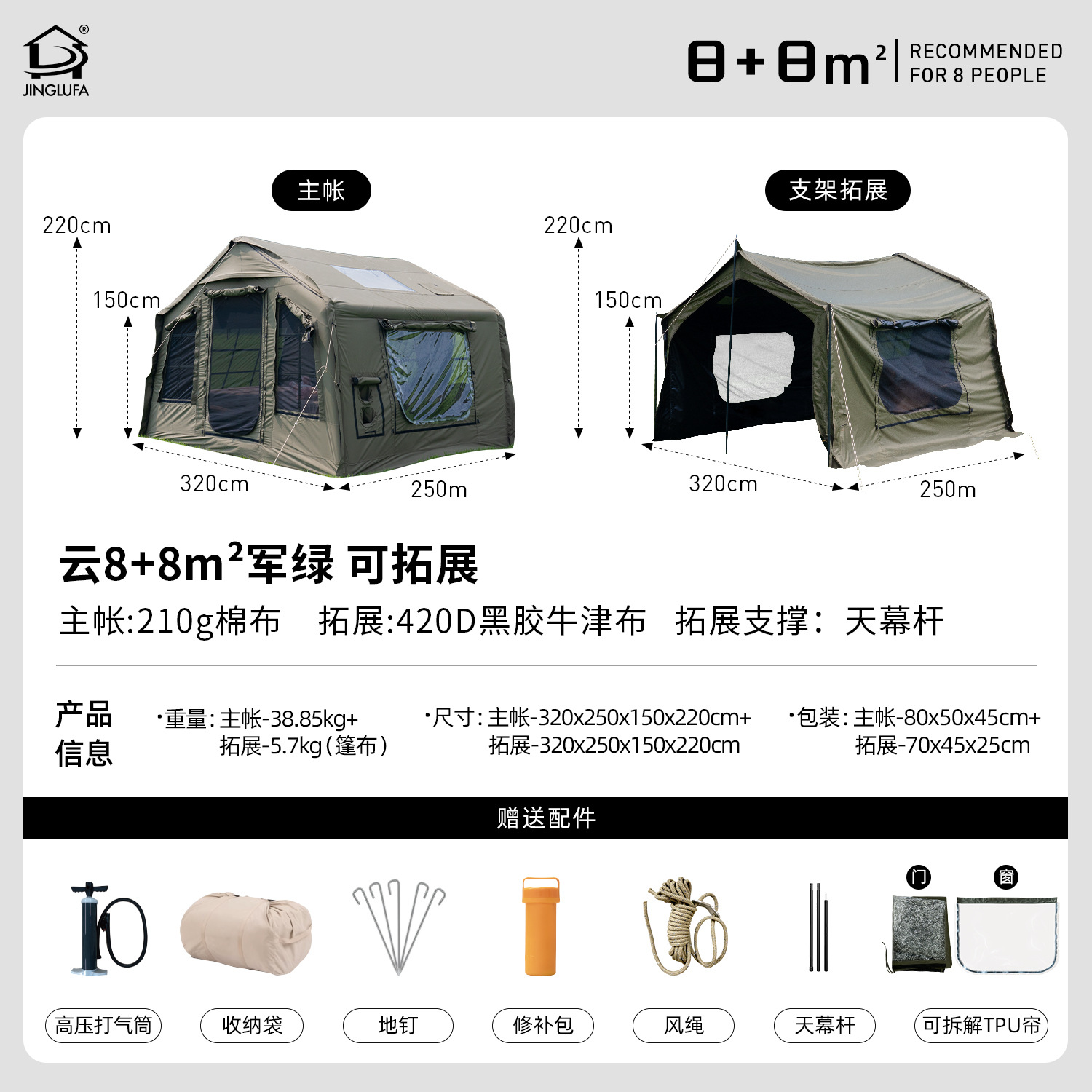 Надувная автоматическая палатка Jingluifa 8+8 из хлопковой ткани с расширяемым пространством и навесом для кемпинга, одна спальня и одна гостиная, для использования на открытом воздухе.