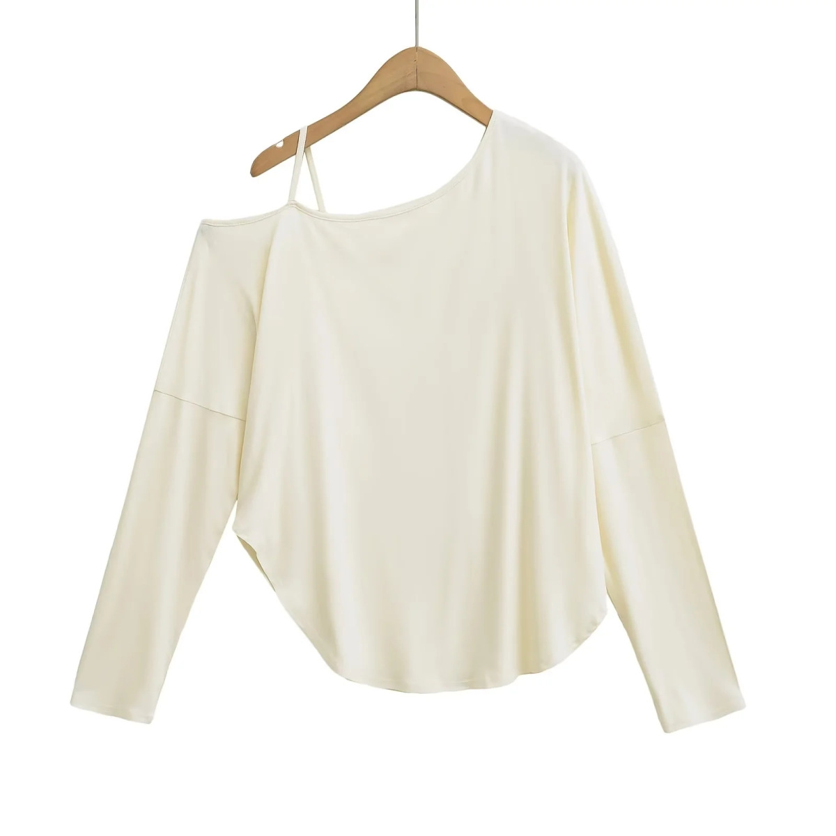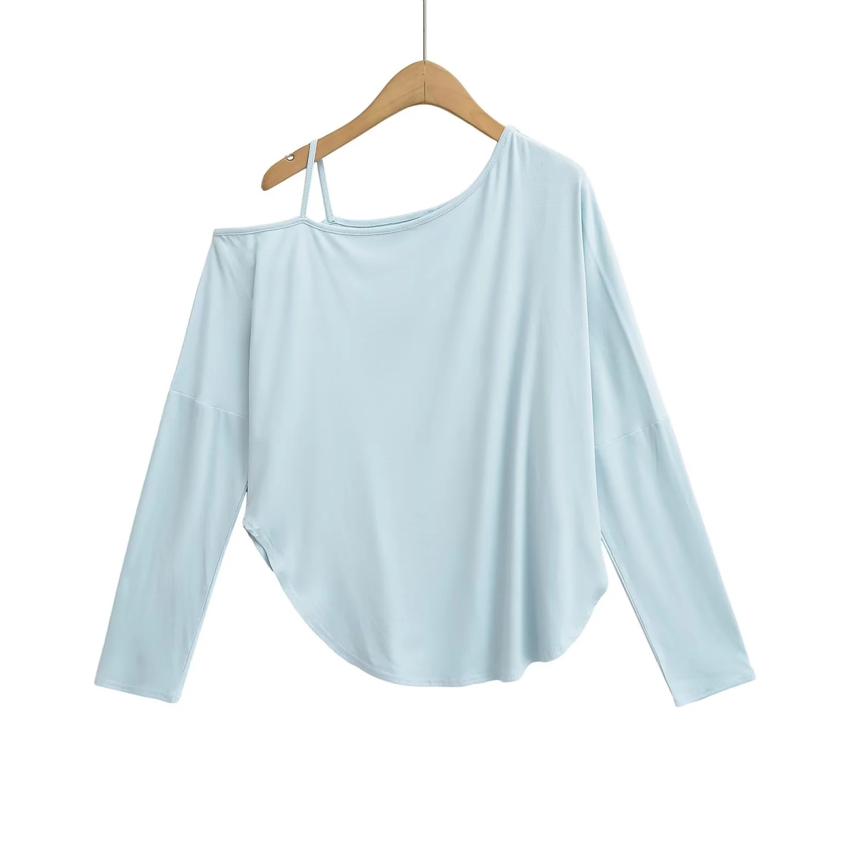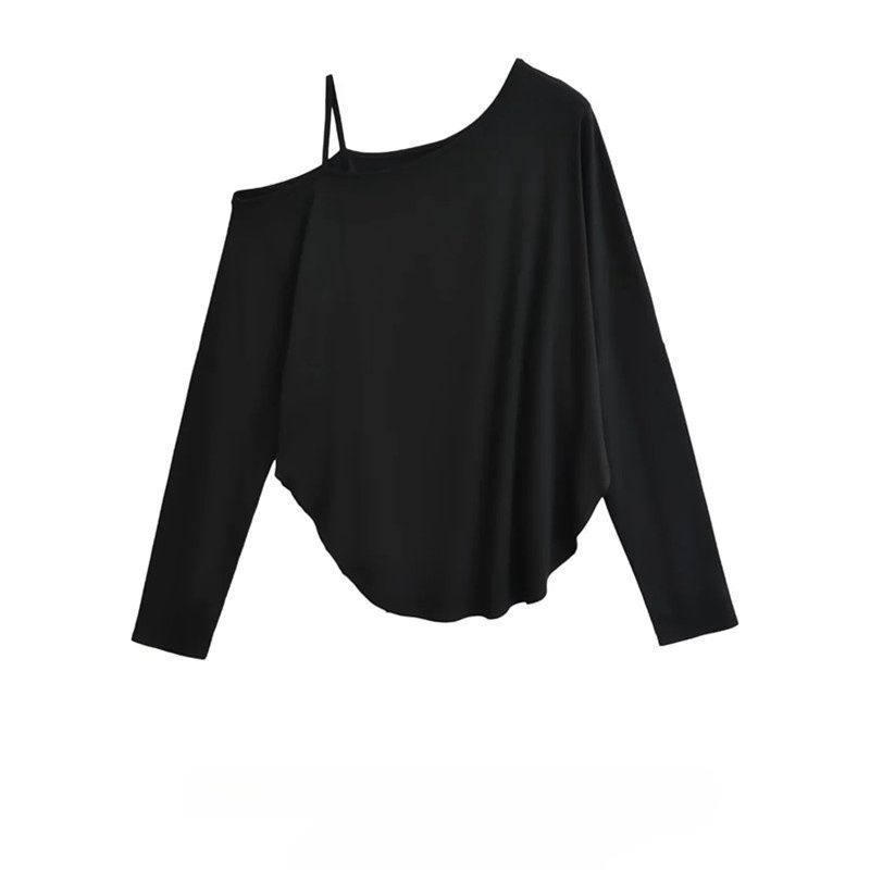 Главная страница > Джаз-хип-хоп свободная тонкая блузка новая женская одежда темперамент ленивый с открытыми плечами нерегулярные косые плечи футболка с длинными рукавами женская