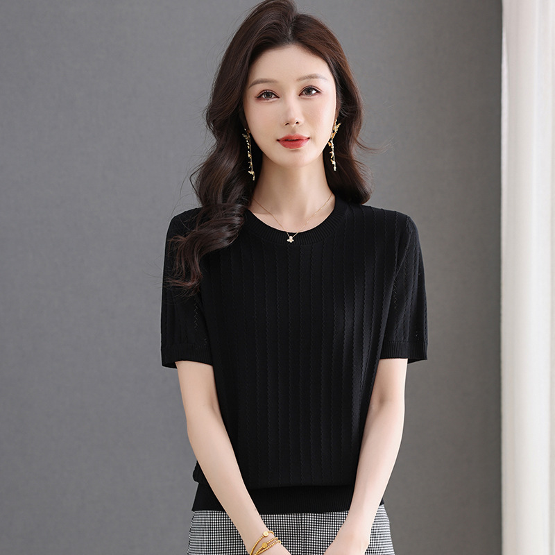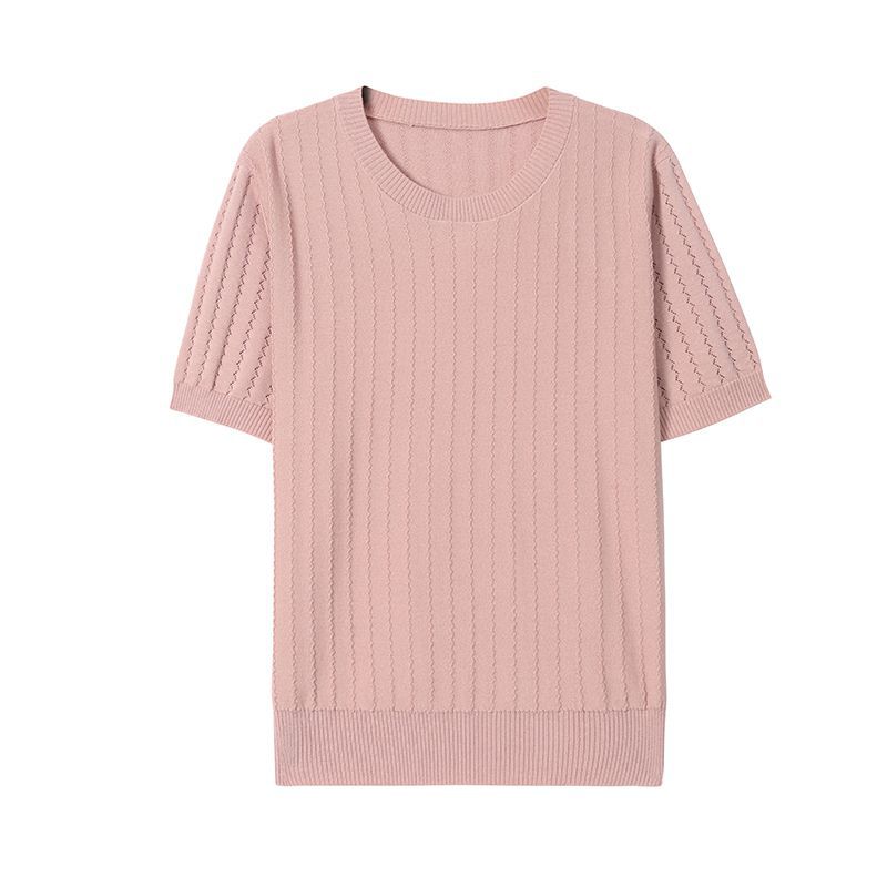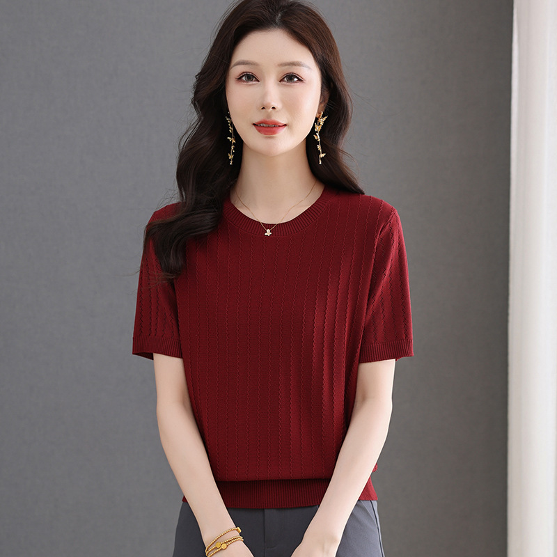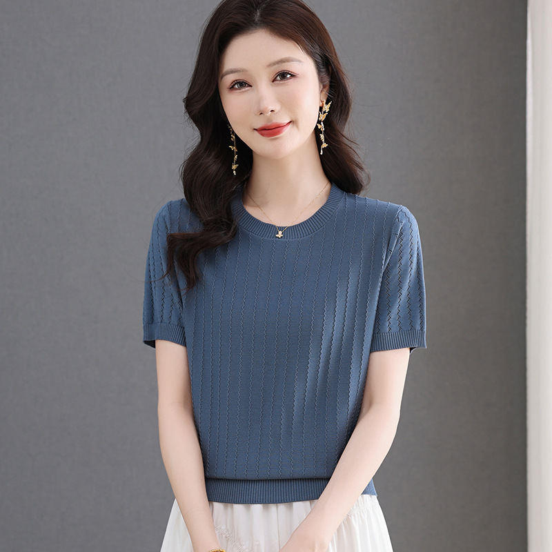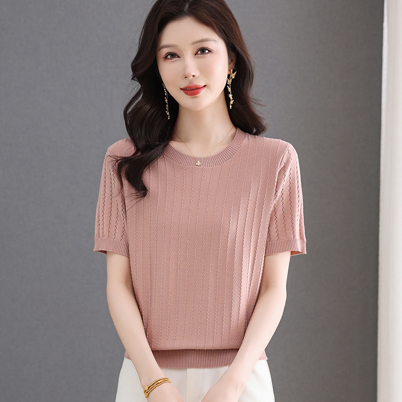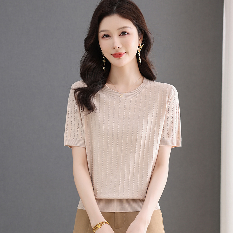 Главная страница > 2025 новая одежда для мам: свободный короткий облегающий вязаный топ, летняя футболка из ледяного шелка, женский короткий вязаный топ