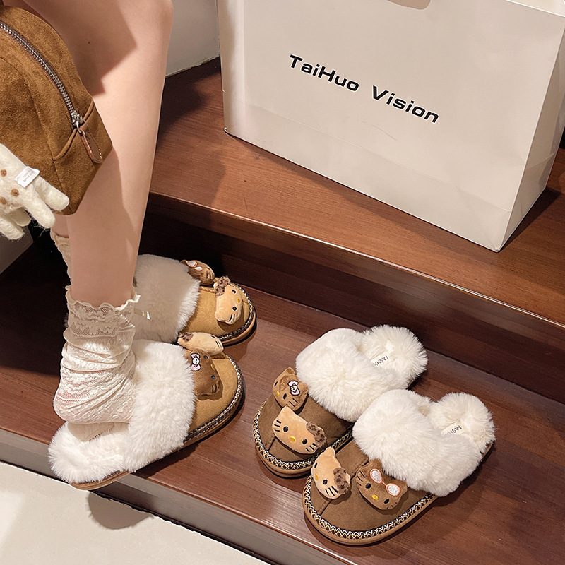Главная страница > Милые черные кожаные тапочки на плоской подошве с героями мультфильмов для женщин, зимние слипоны, модные плюшевые тапочки с рисунком кота