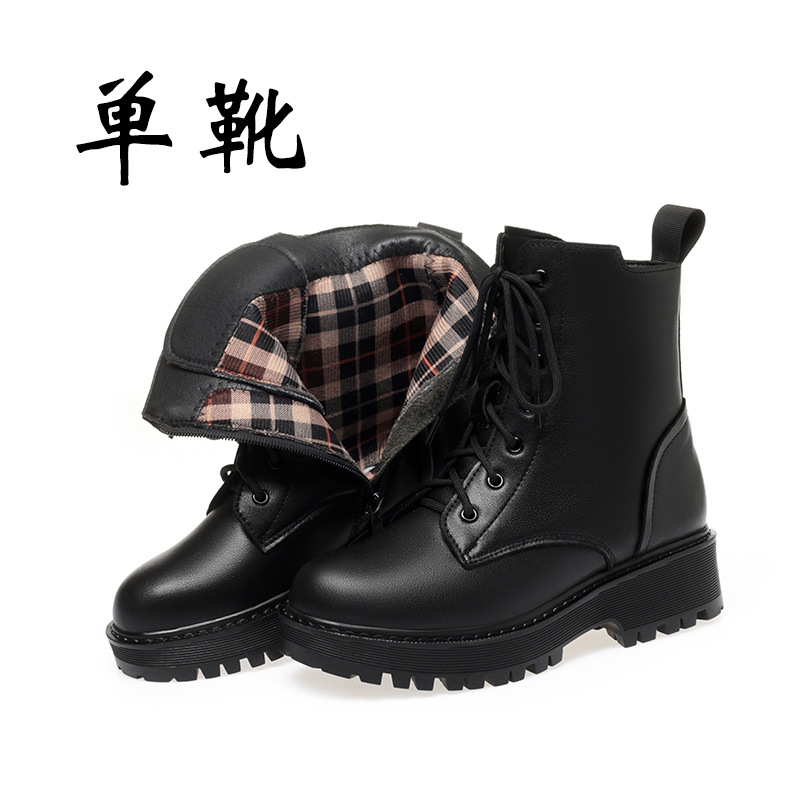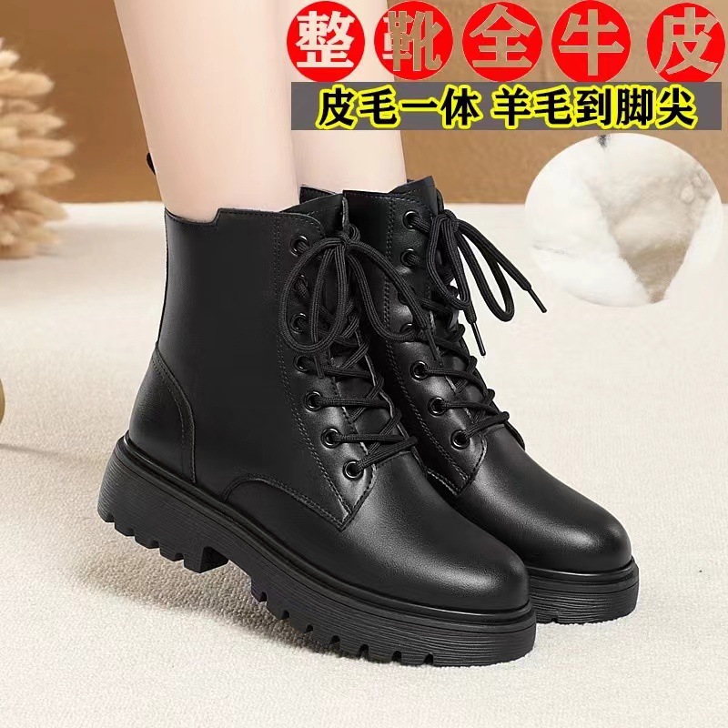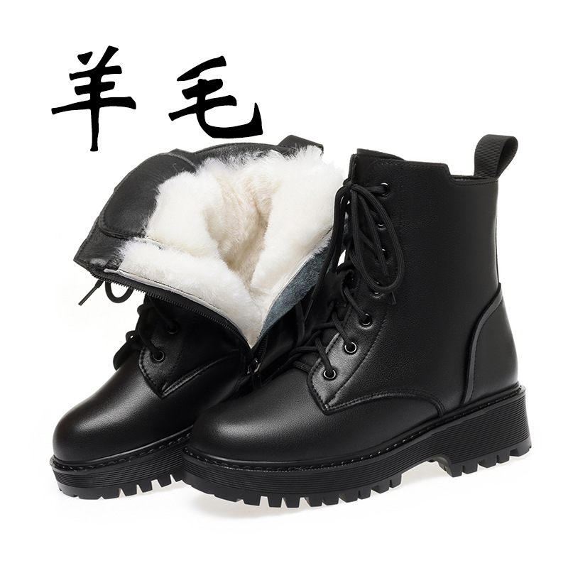 Главная страница > Осенние и зимние кожаные ботинки Martin женские плоское дно плюс бархат утолщение 2024 новые хлопковые ботинки на низком каблуке хлопковые ботинки