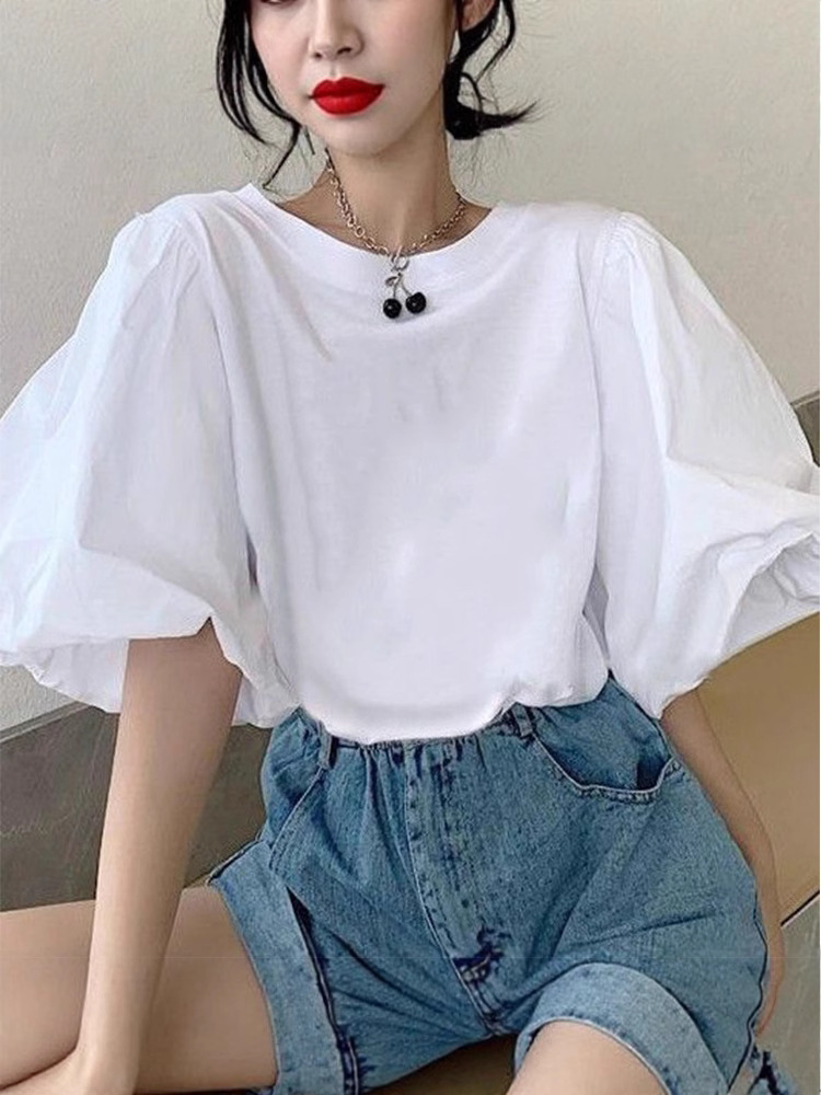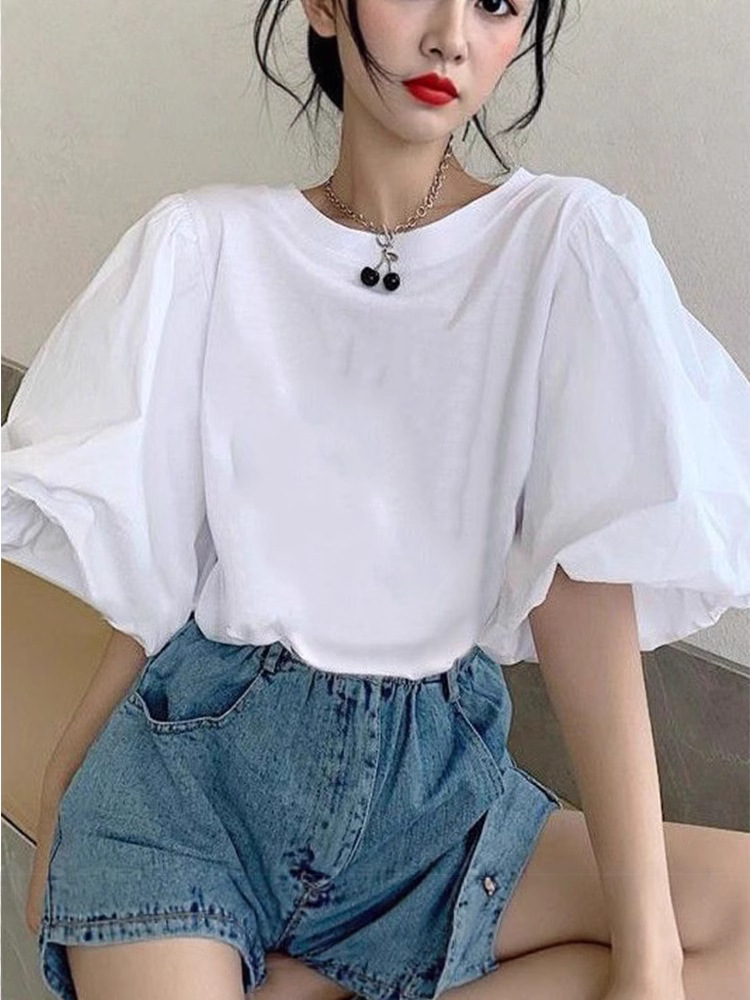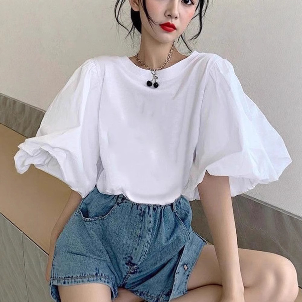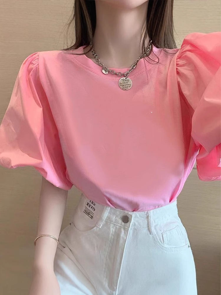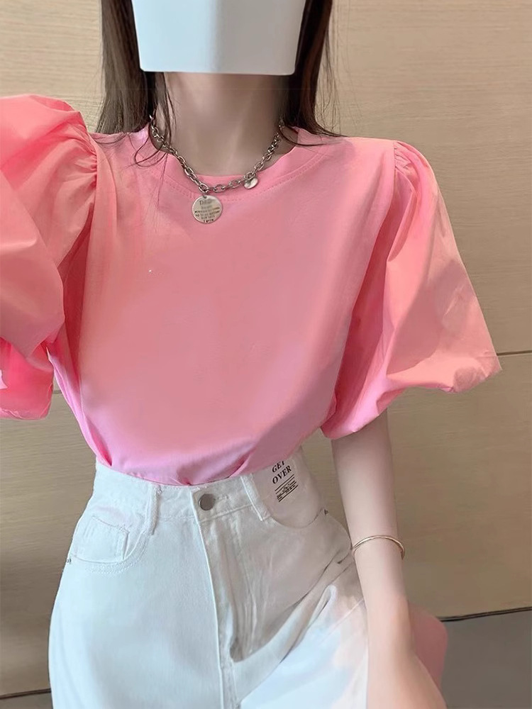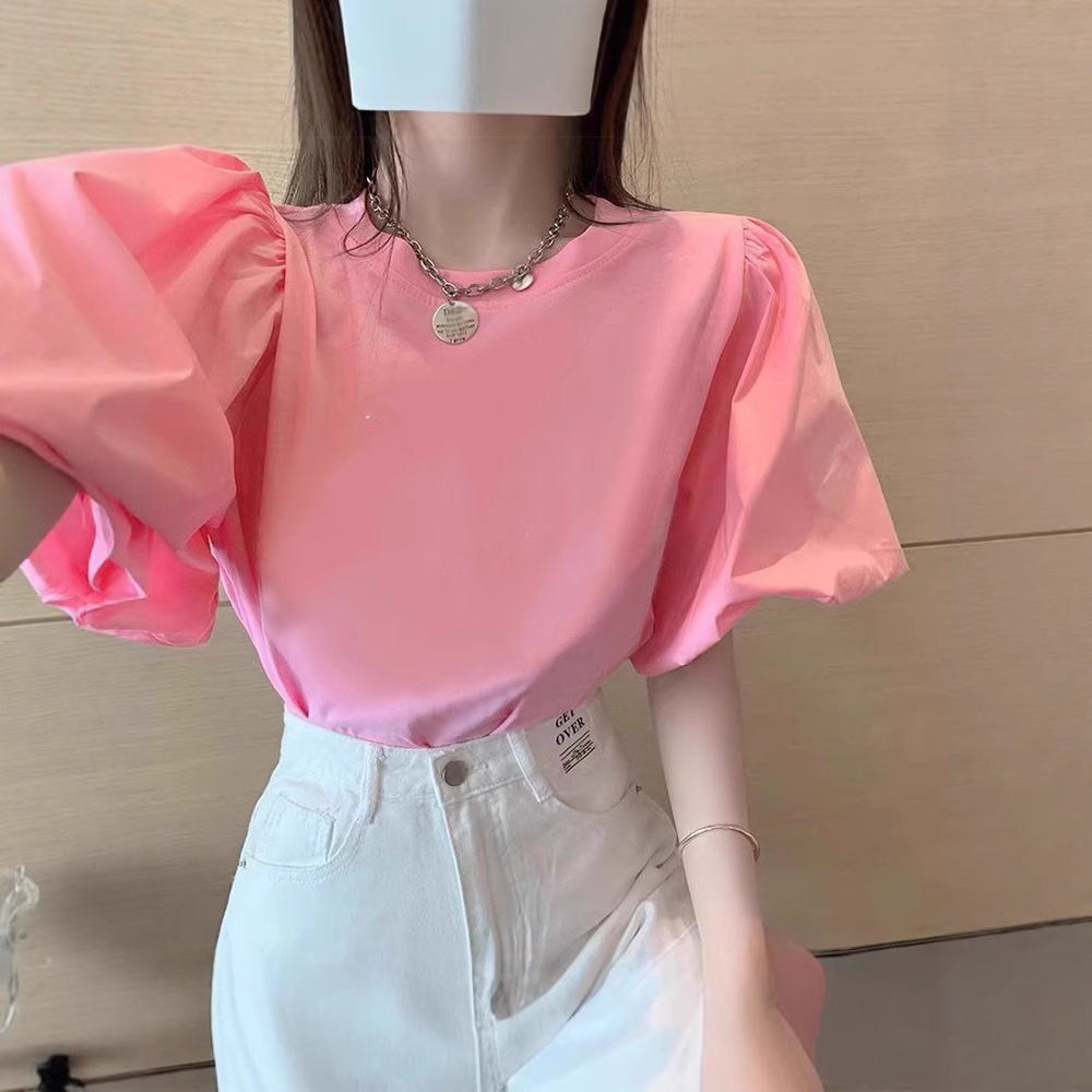Главная страница > Красивая розовая футболка женская с короткими рукавами, новинка 2025 года, летняя дизайнерская рубашка в нишевом стиле, топ с пышными рукавами