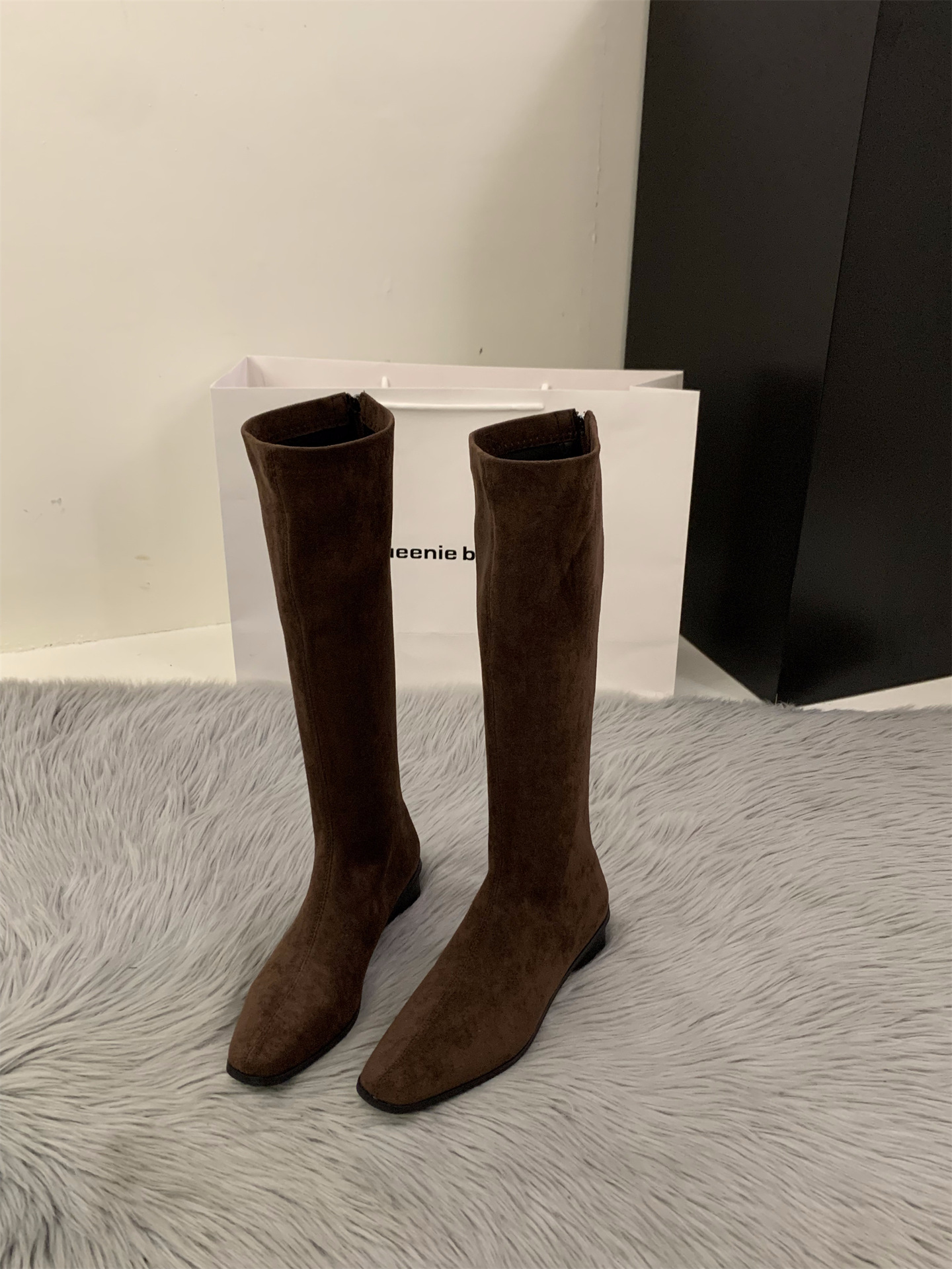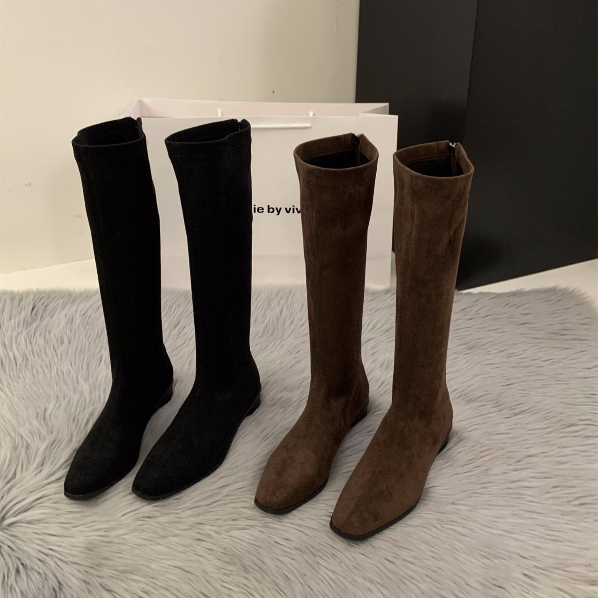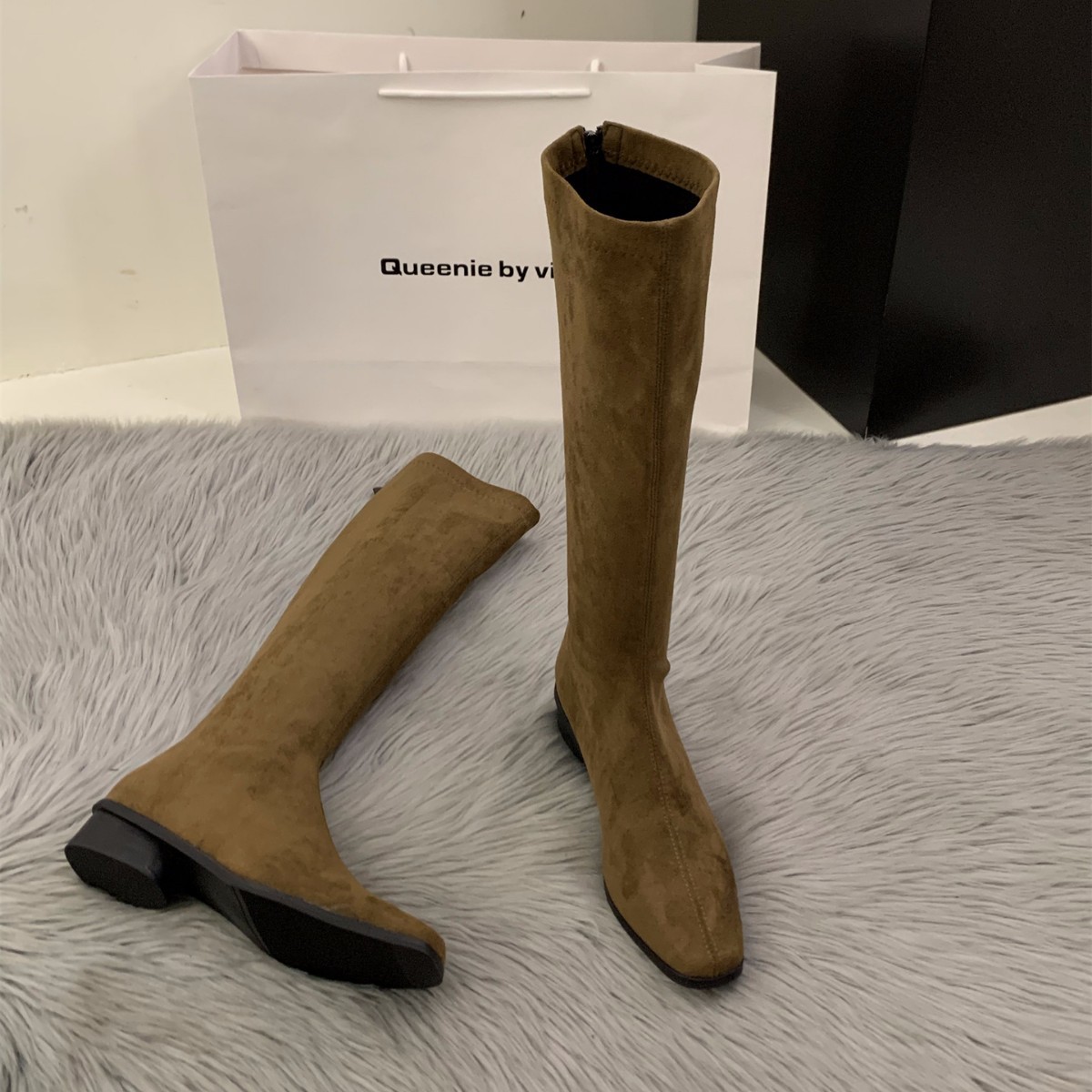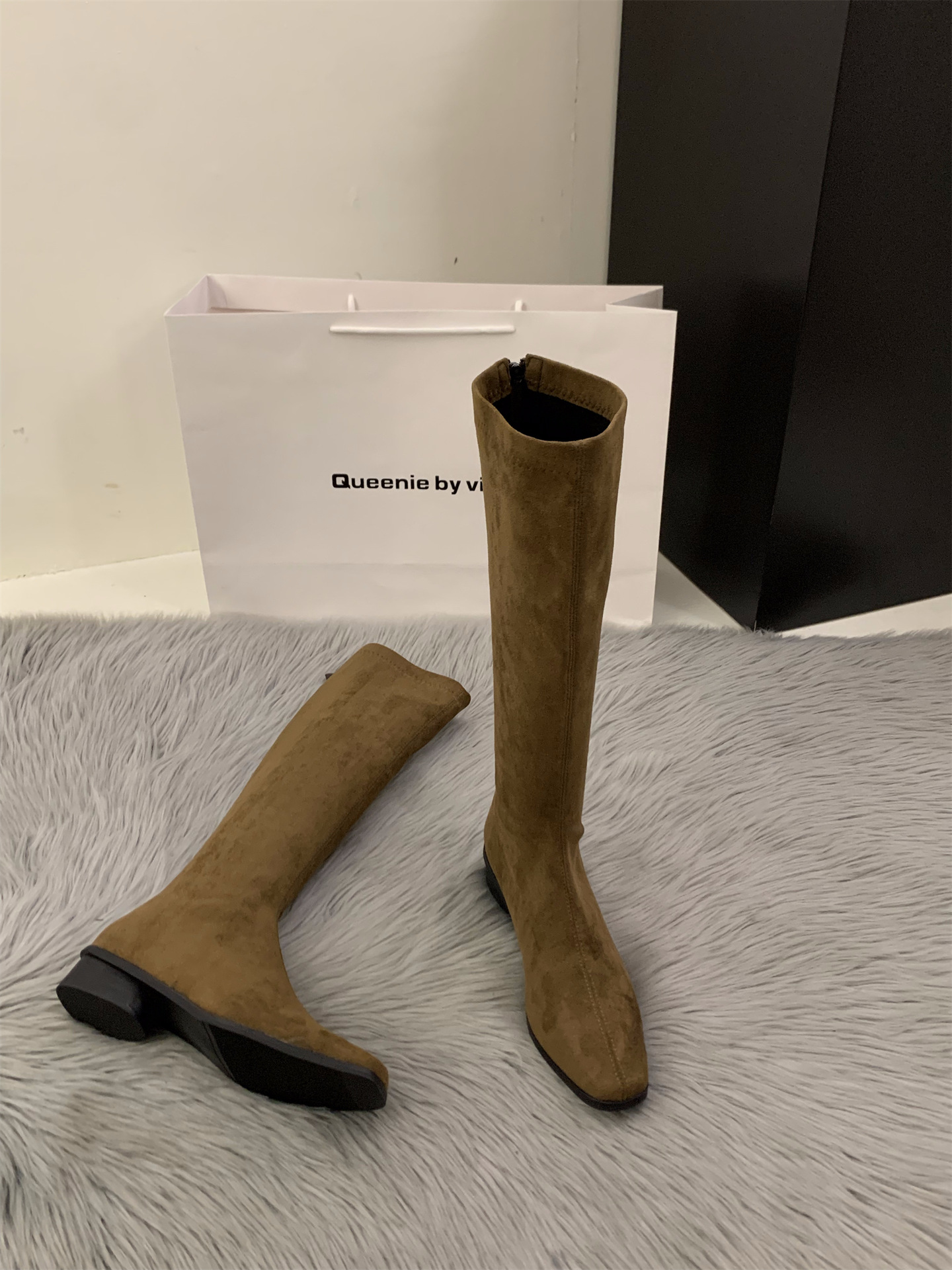 Главная страница > Женские сапоги на массивном каблуке с острым носком из замши, узкие, длинные, новинка 2025 года, осенне-зимние, в корейском стиле, высотой до середины икры, сапоги для верховой езды