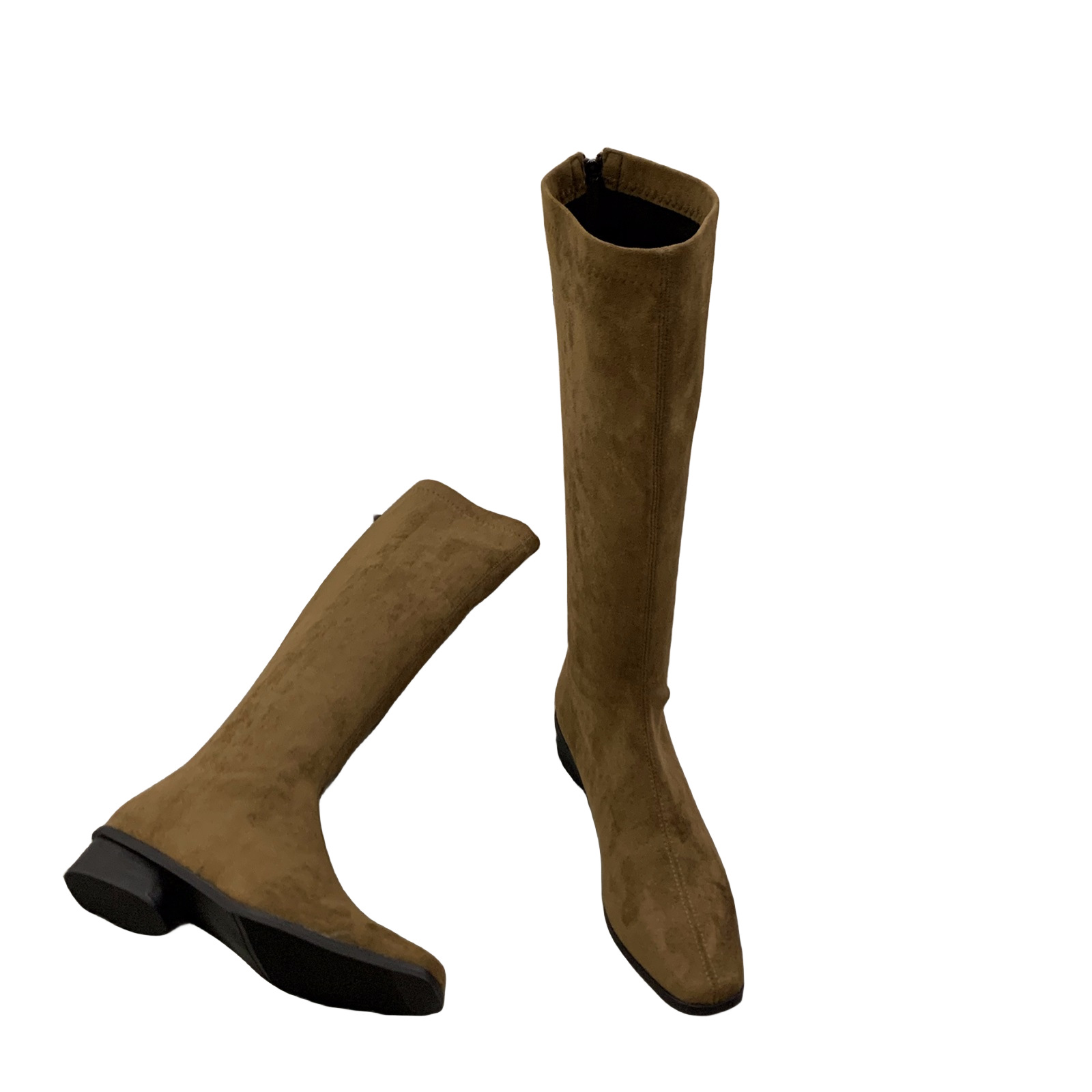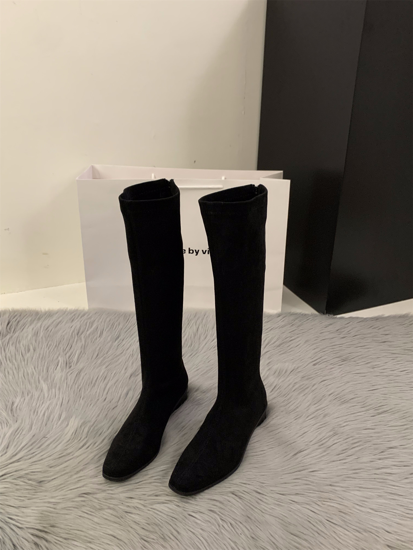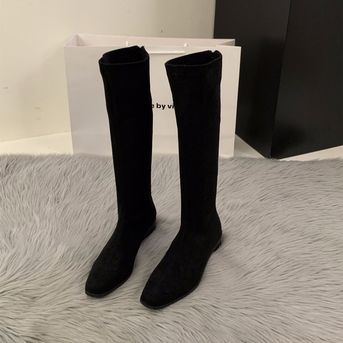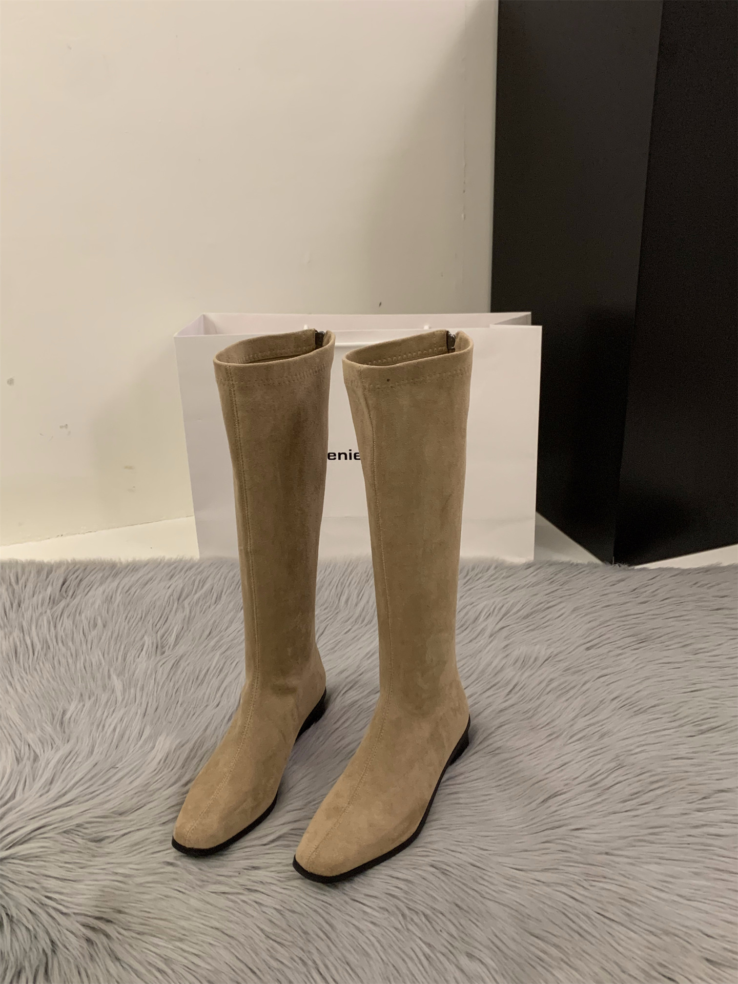 Главная страница > Женские сапоги на массивном каблуке с острым носком из замши, узкие, длинные, новинка 2025 года, осенне-зимние, в корейском стиле, высотой до середины икры, сапоги для верховой езды