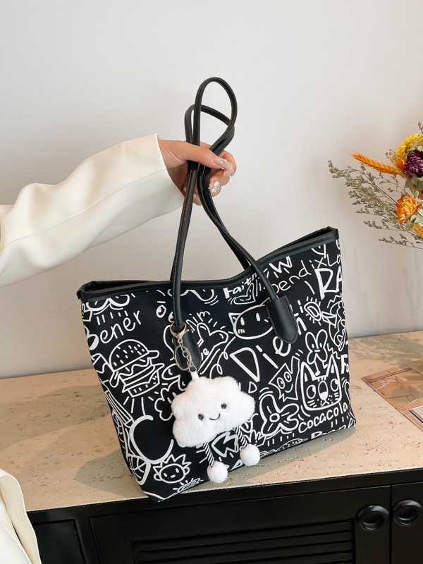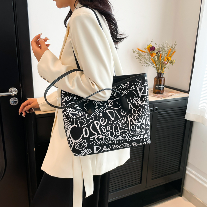 Главная страница > Нишевая дизайнерская ручная сумка-тоут с граффити, тканевая сумка, женская сумка, новая весенняя повседневная сумка на плечо, большая вместительная сумка для подмышек