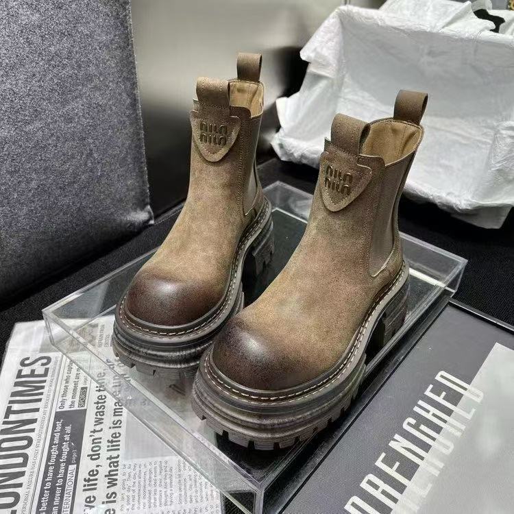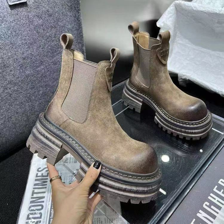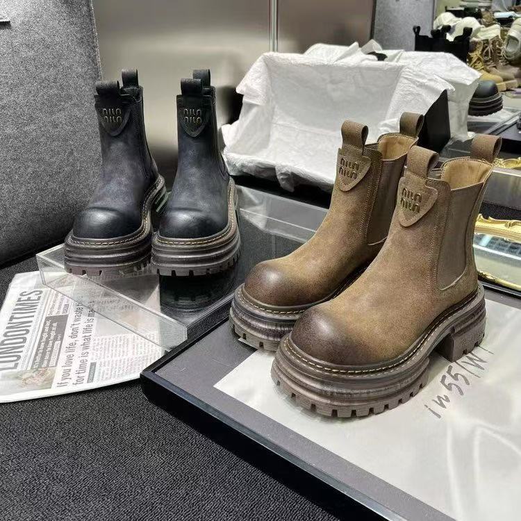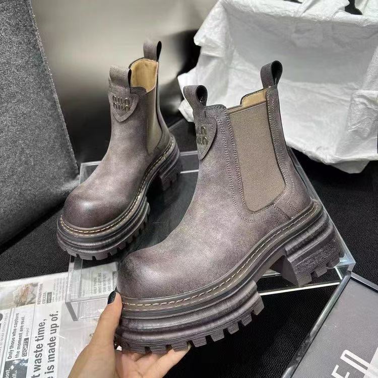 Главная страница > Классические универсальные женские ботинки-чимейны 2025 года, новый британский стиль, на толстой подошве, цветные, полированные, короткие ботинки, европейские челси для женщин