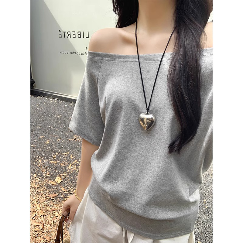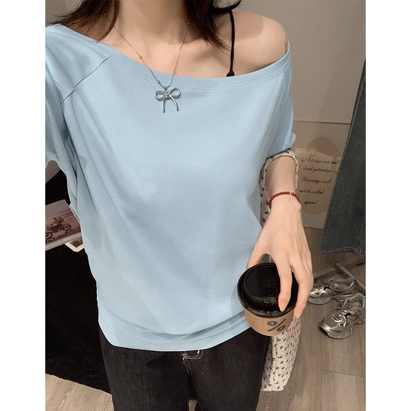 Главная страница > Летняя однотонная женская футболка из 92% хлопка с открытыми плечами, однотонный хлопковый свободный модный топ с открытыми плечами и короткими рукавами, закрывающий тело.
