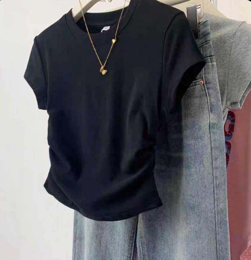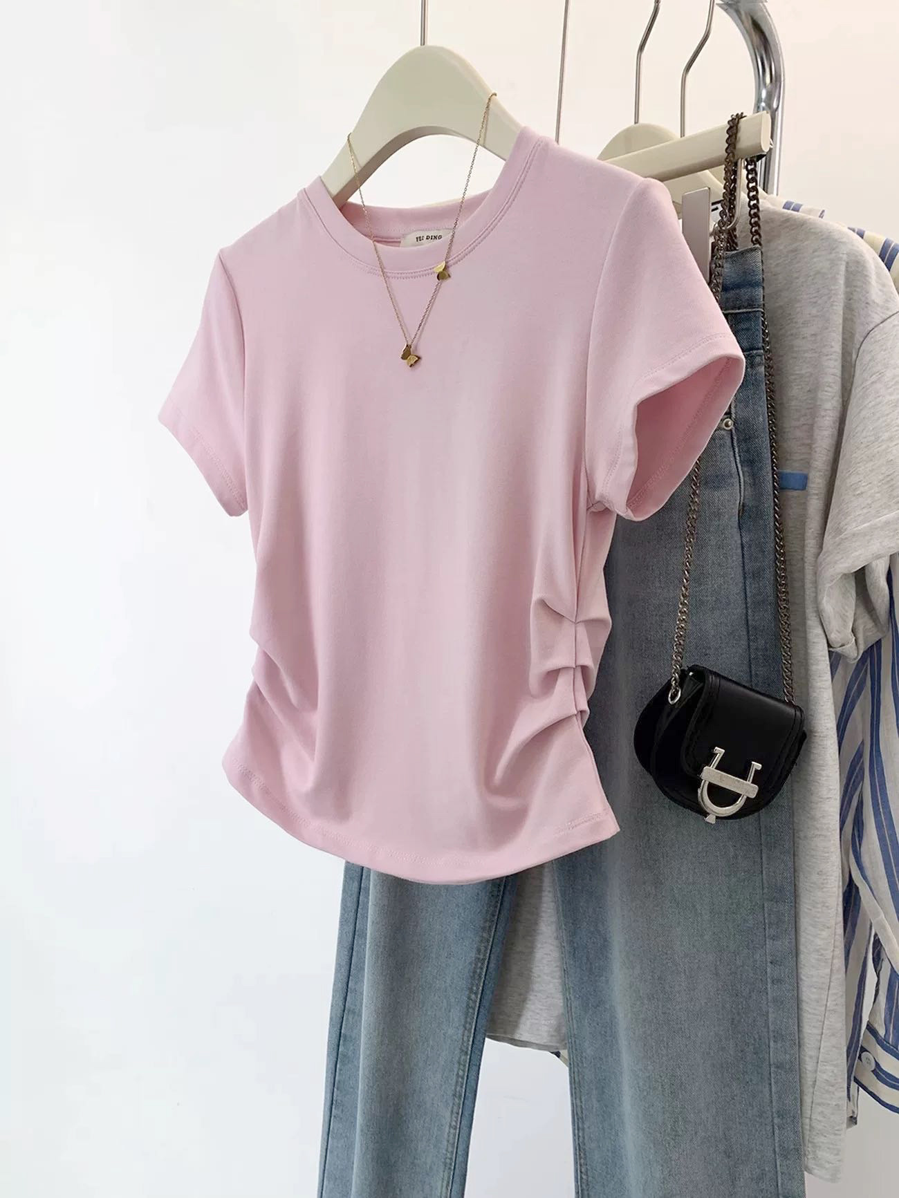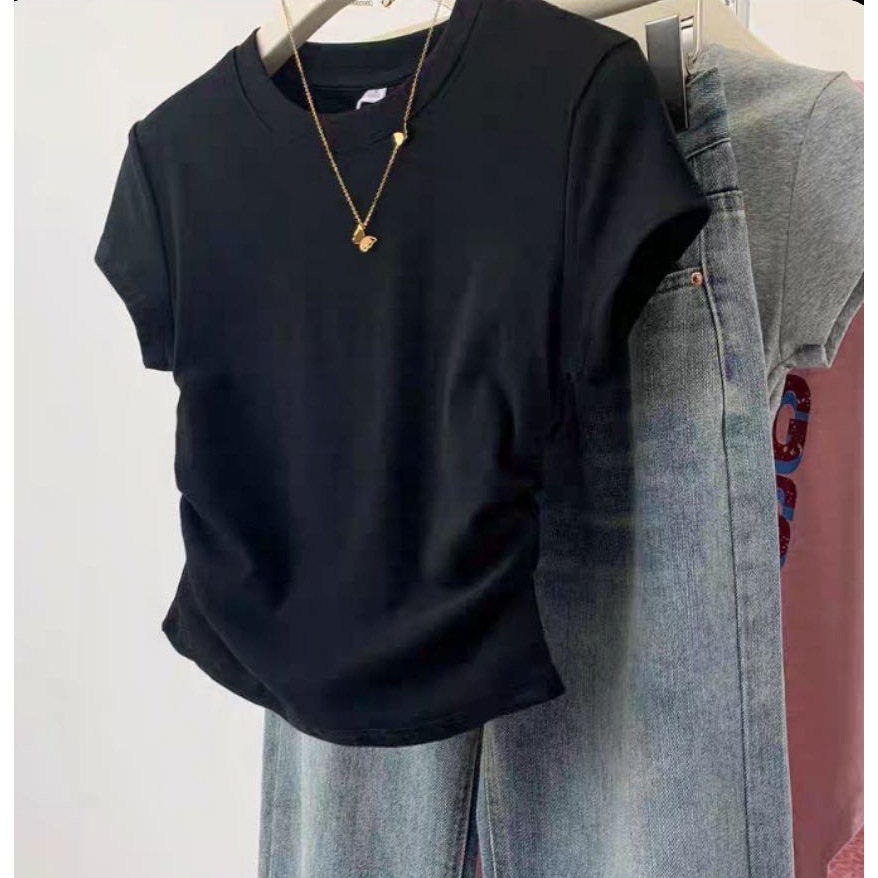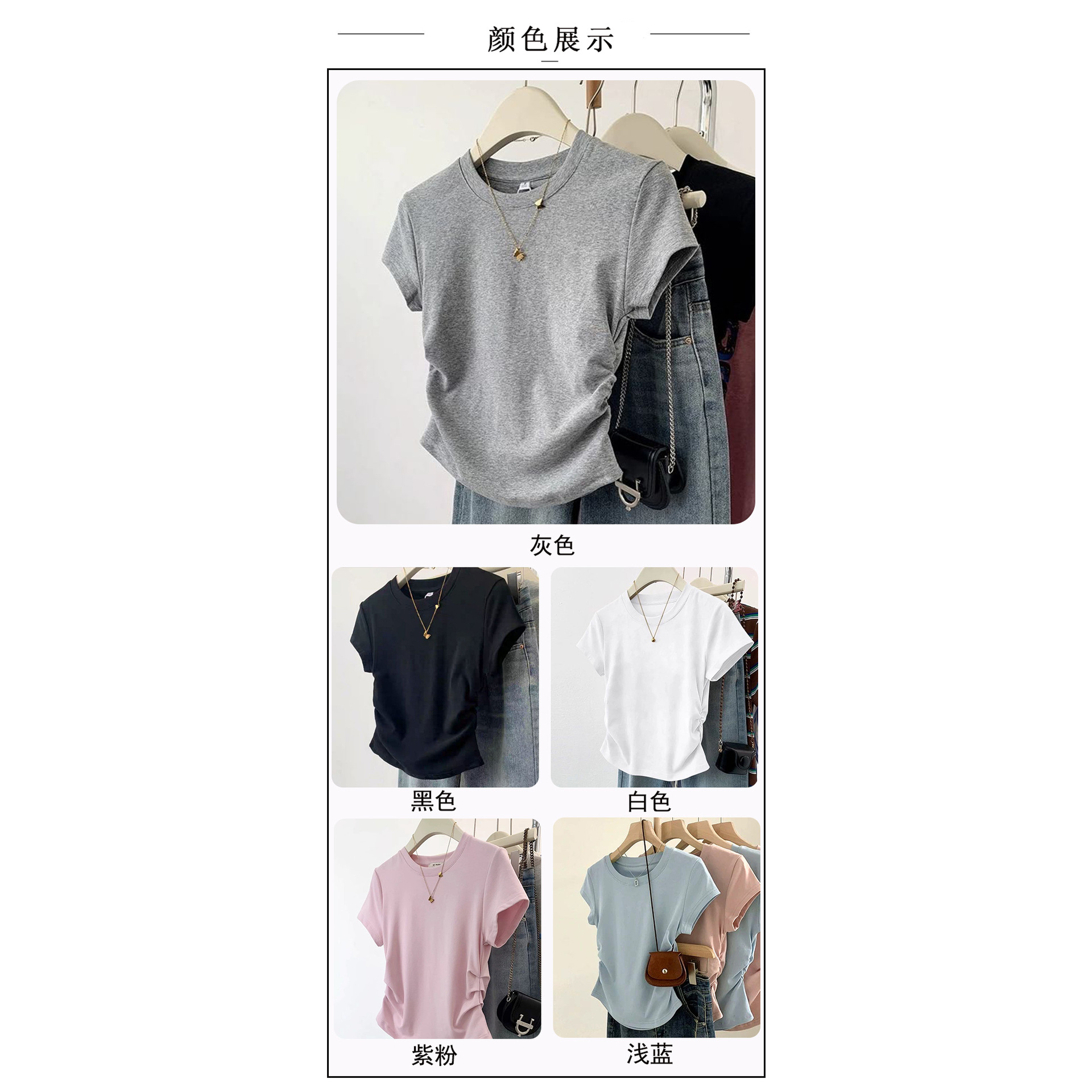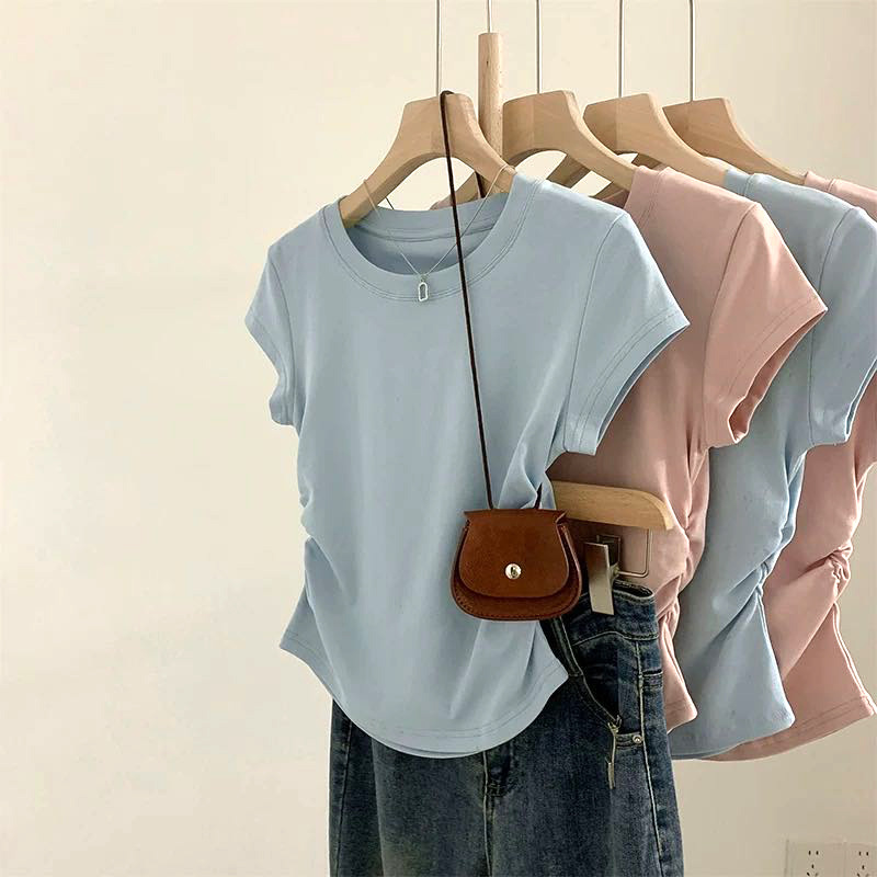 Главная страница > Женская однотонная футболка с короткими рукавами и облегающей талией, летняя универсальная облегающая внутренняя и верхняя одежда, модная базовая рубашка