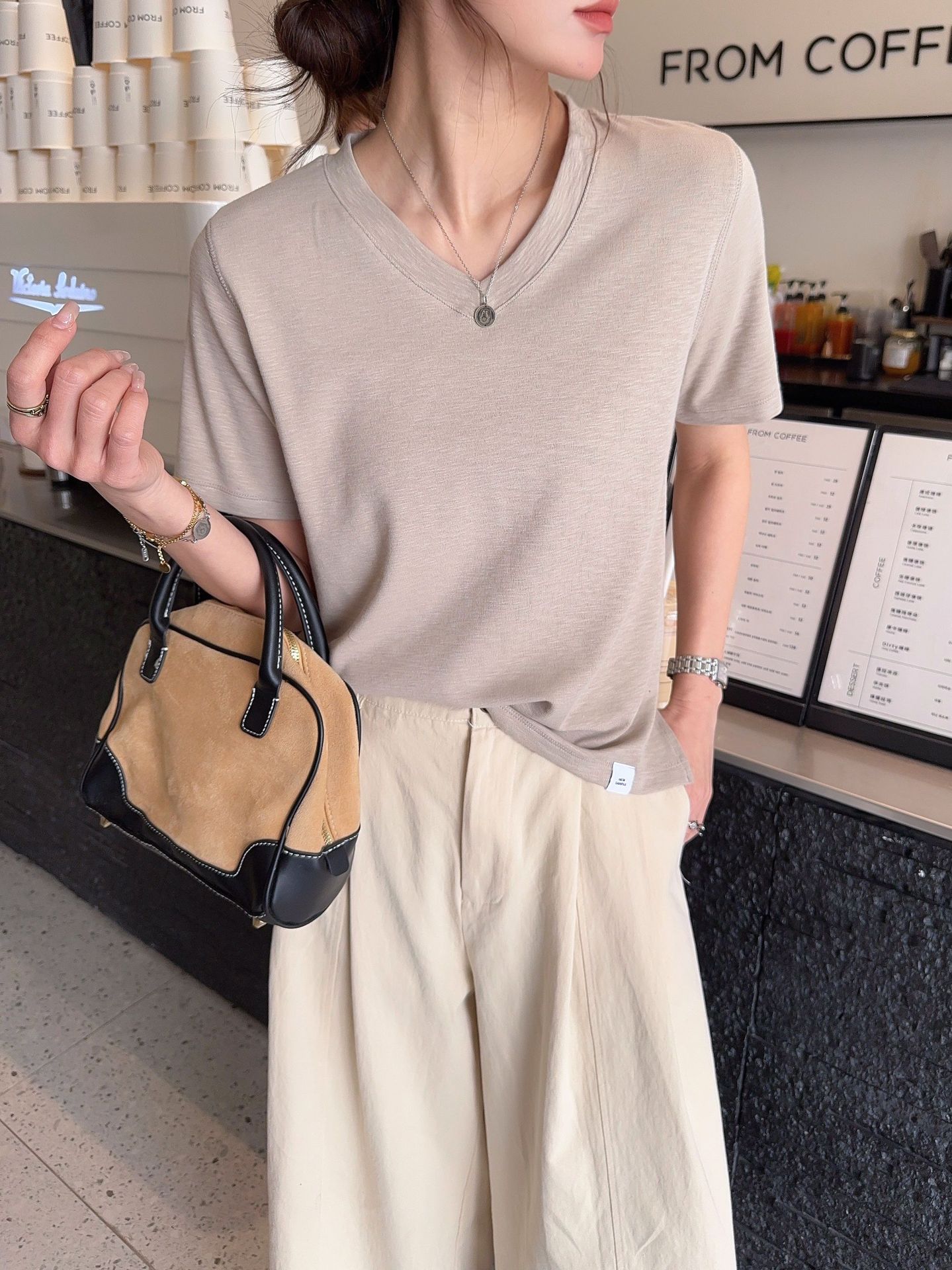 Главная страница > Футболка высокого класса женская футболка с короткими рукавами V-образным вырезом женская летняя широкая плечевая рубашка