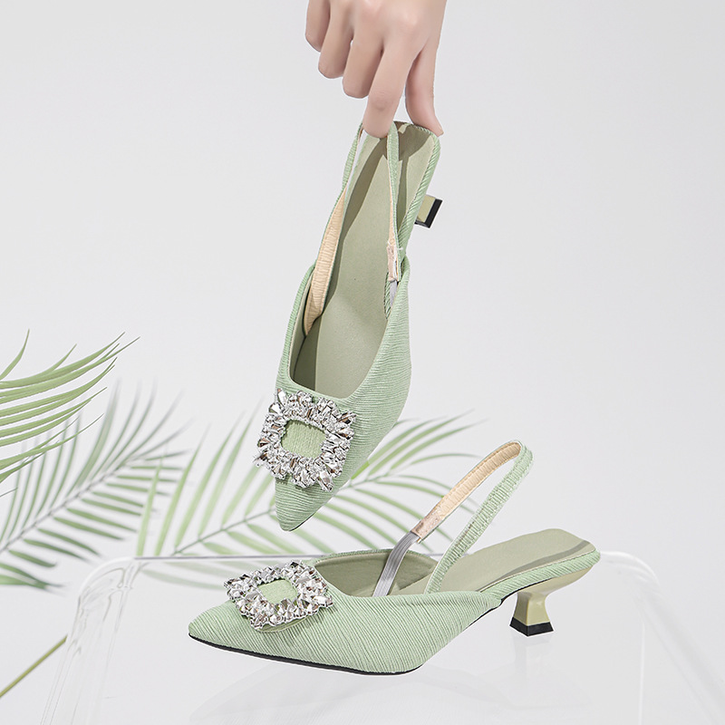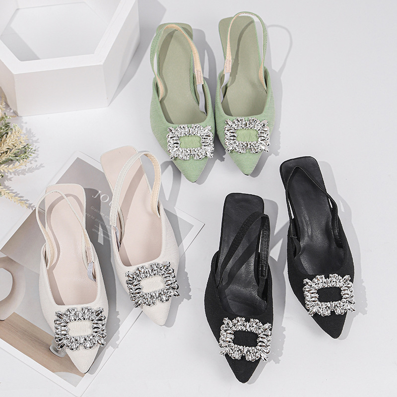Главная страница > Женские сандалии Baotou, новинка 2024, летние туфли со стразами и квадратной пряжкой в сказочном стиле сзади, пустые французские туфли на высоком каблуке-шпильке с острым носком