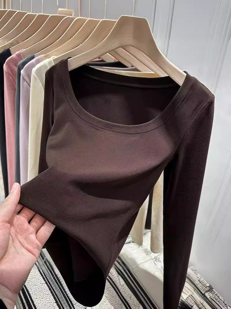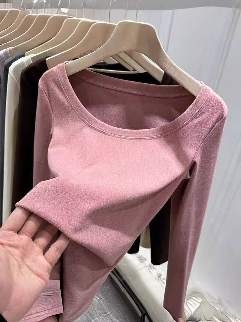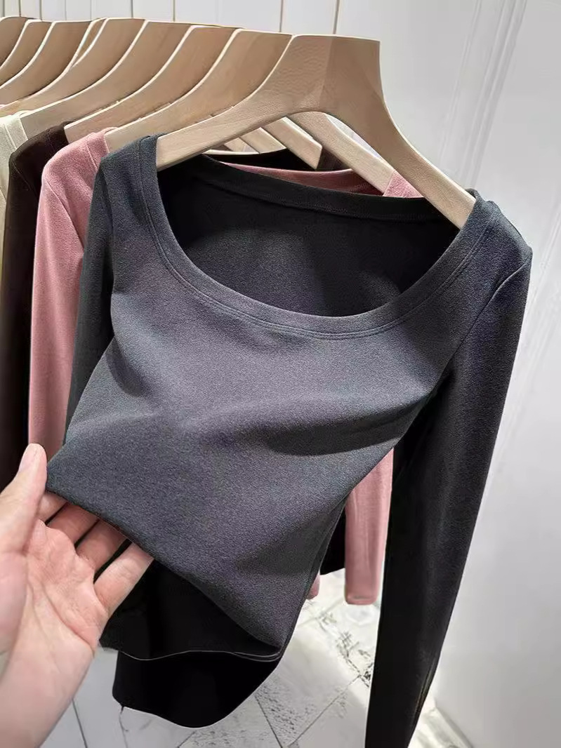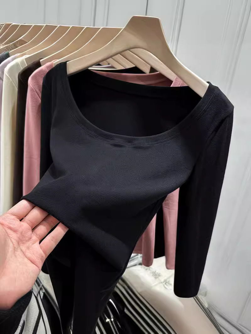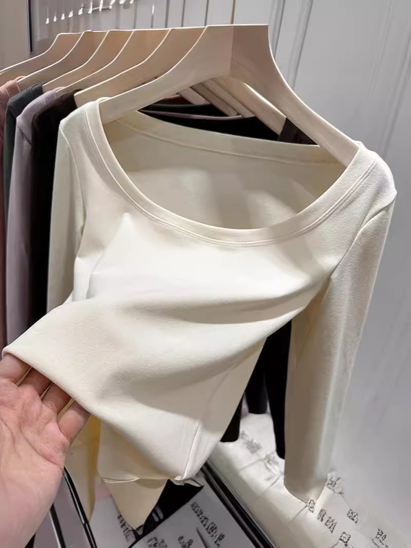 Главная страница > Кашемировая нижняя рубашка женский сплошной цвет с обтягивкой с низким вырезом осенью и зимой новая тонкая футболка с U-образным вырезом