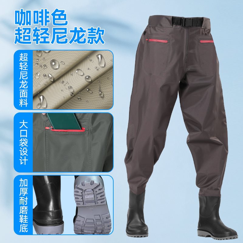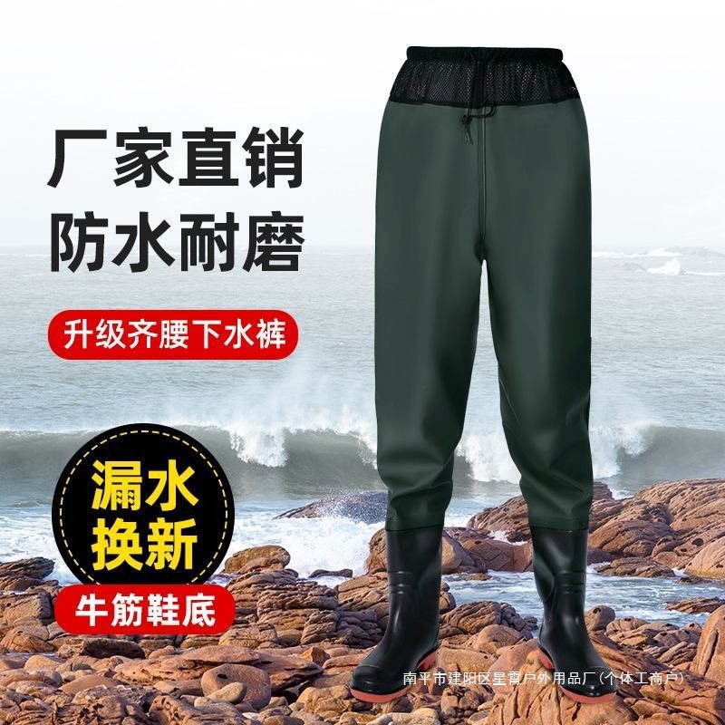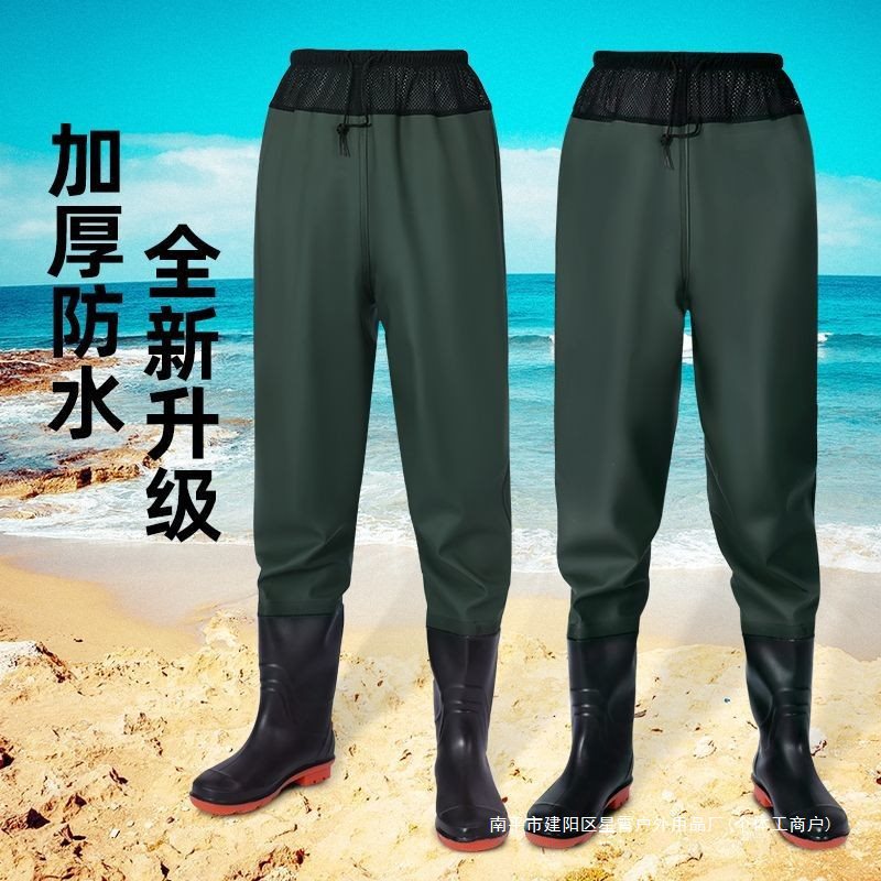 Главная страница > Водонепроницаемые брюки, водонепроницаемые дождевые брюки средней длины с резиновыми сапогами для рыбалки, цельные мужские и женские водные брюки на все тело, водонепроницаемые брюки для похода к морю.