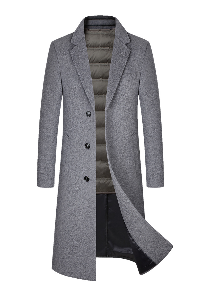 Главная страница > Мужское пальто из 71,5% шерсти, осенне-зимнее, с 90% съемной подкладкой из утиного пуха, высококачественный приталенный тренч.