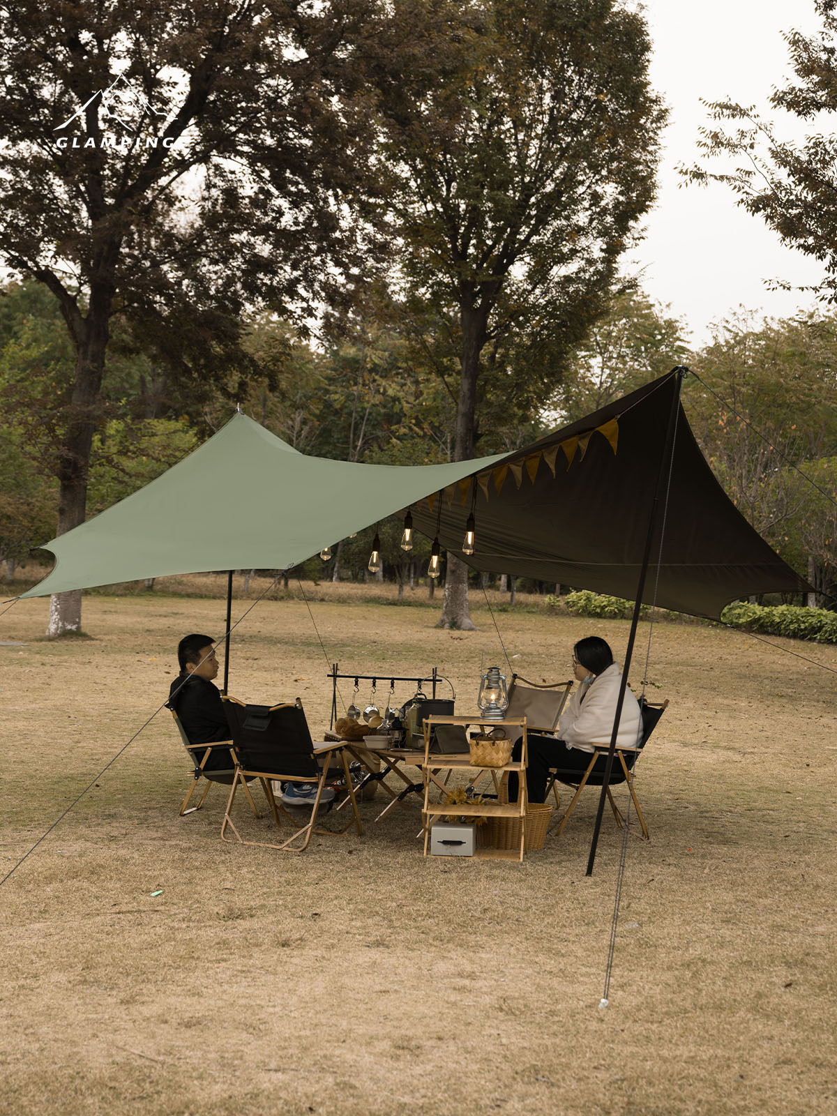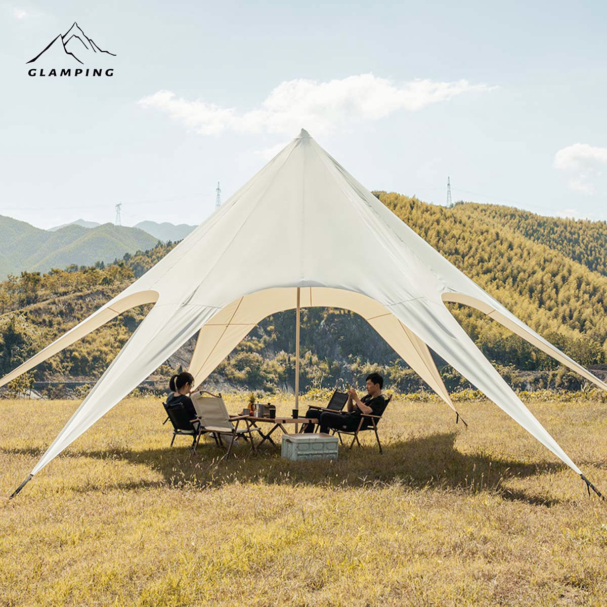 Главная страница > Кемпинг оборудован небесной палаткой на открытом воздухе.