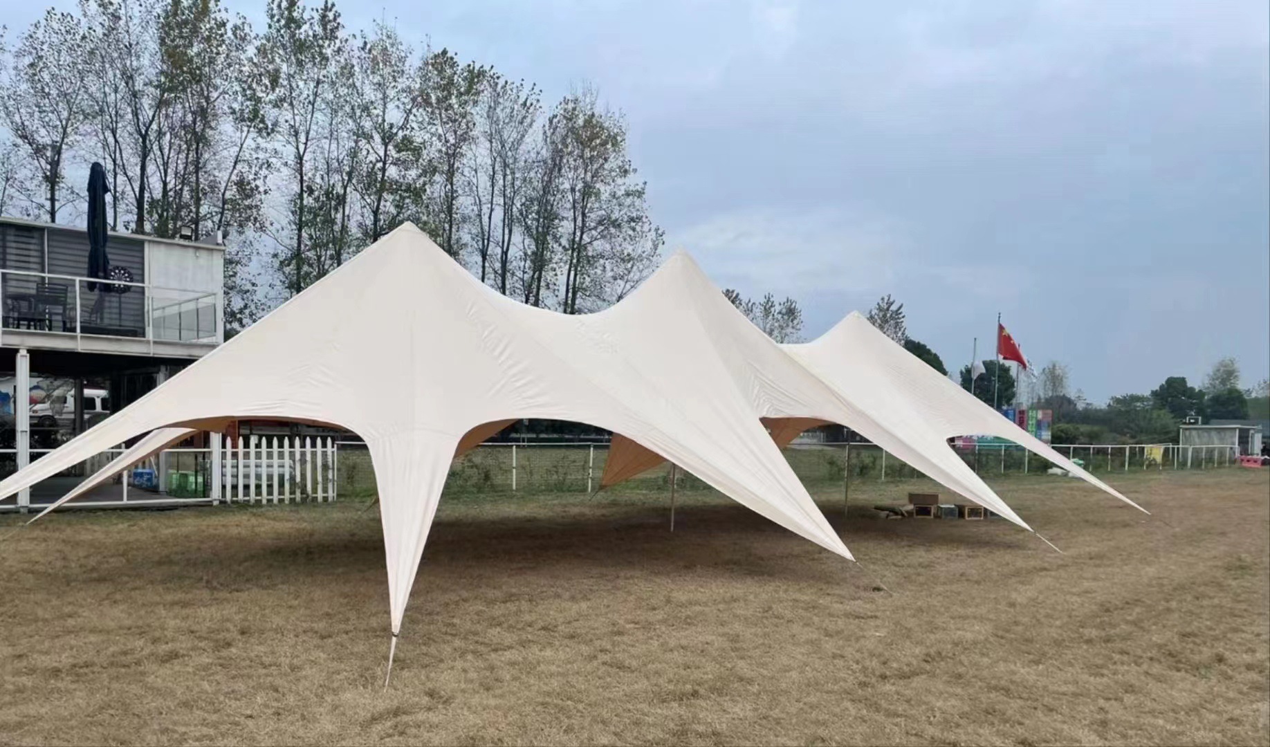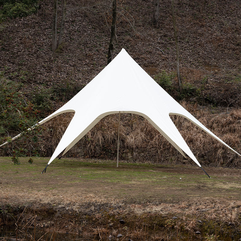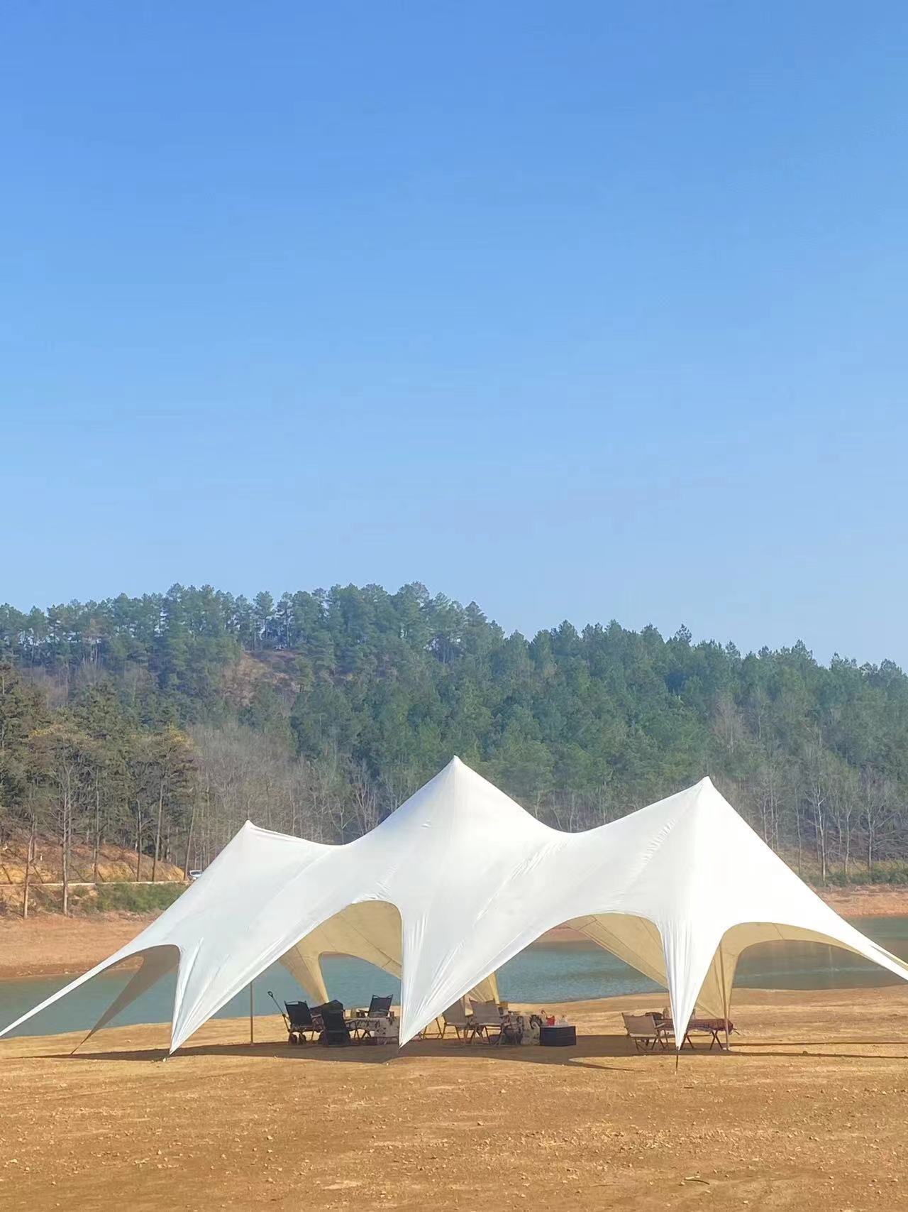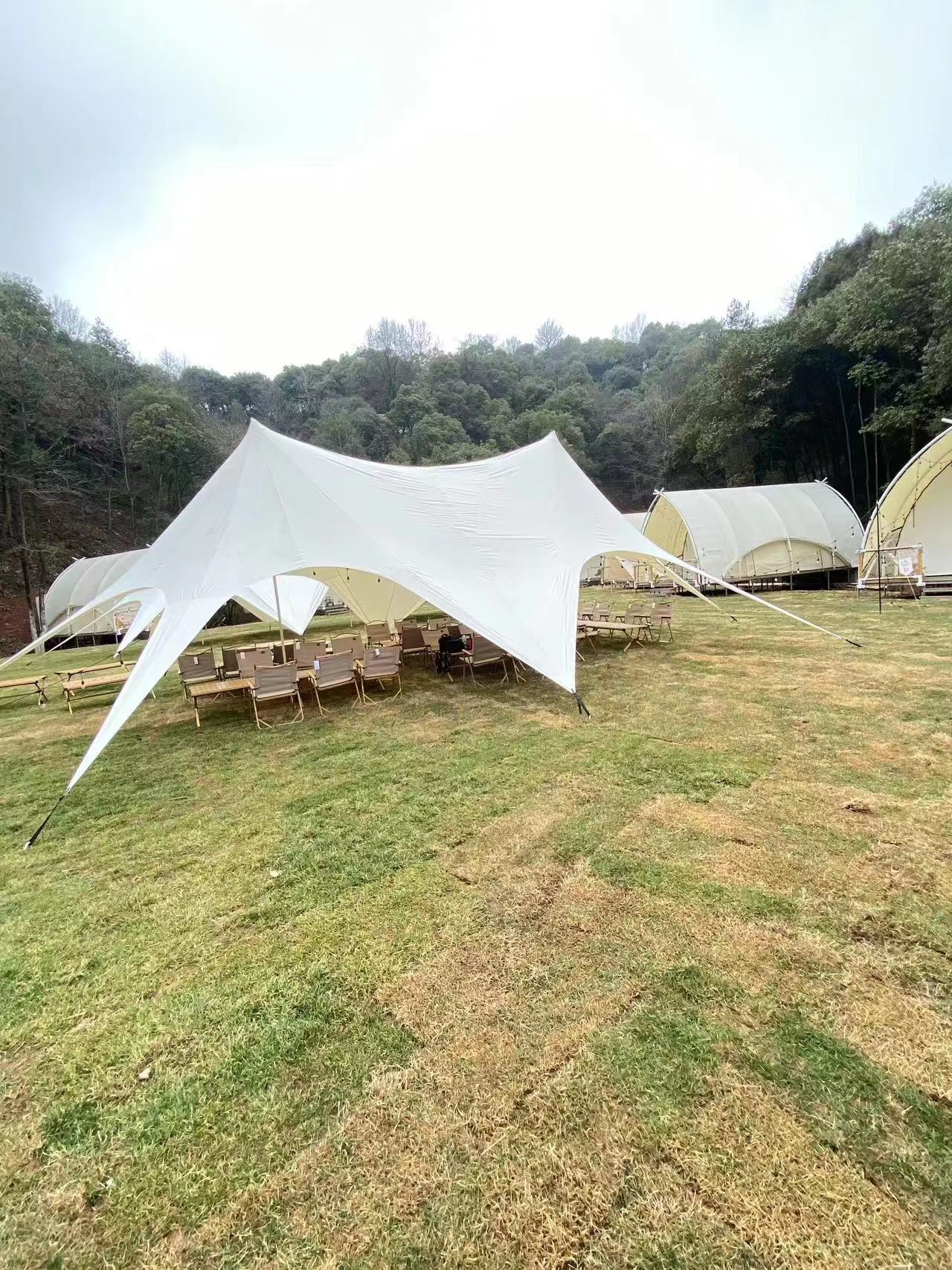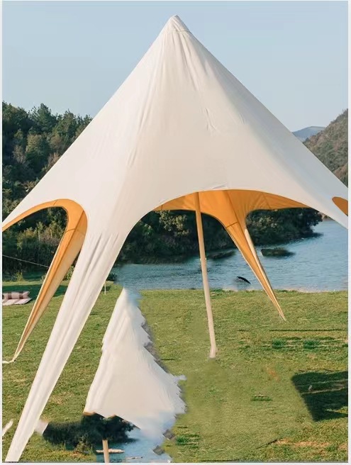 Кемпинг оборудован небесной палаткой на открытом воздухе.