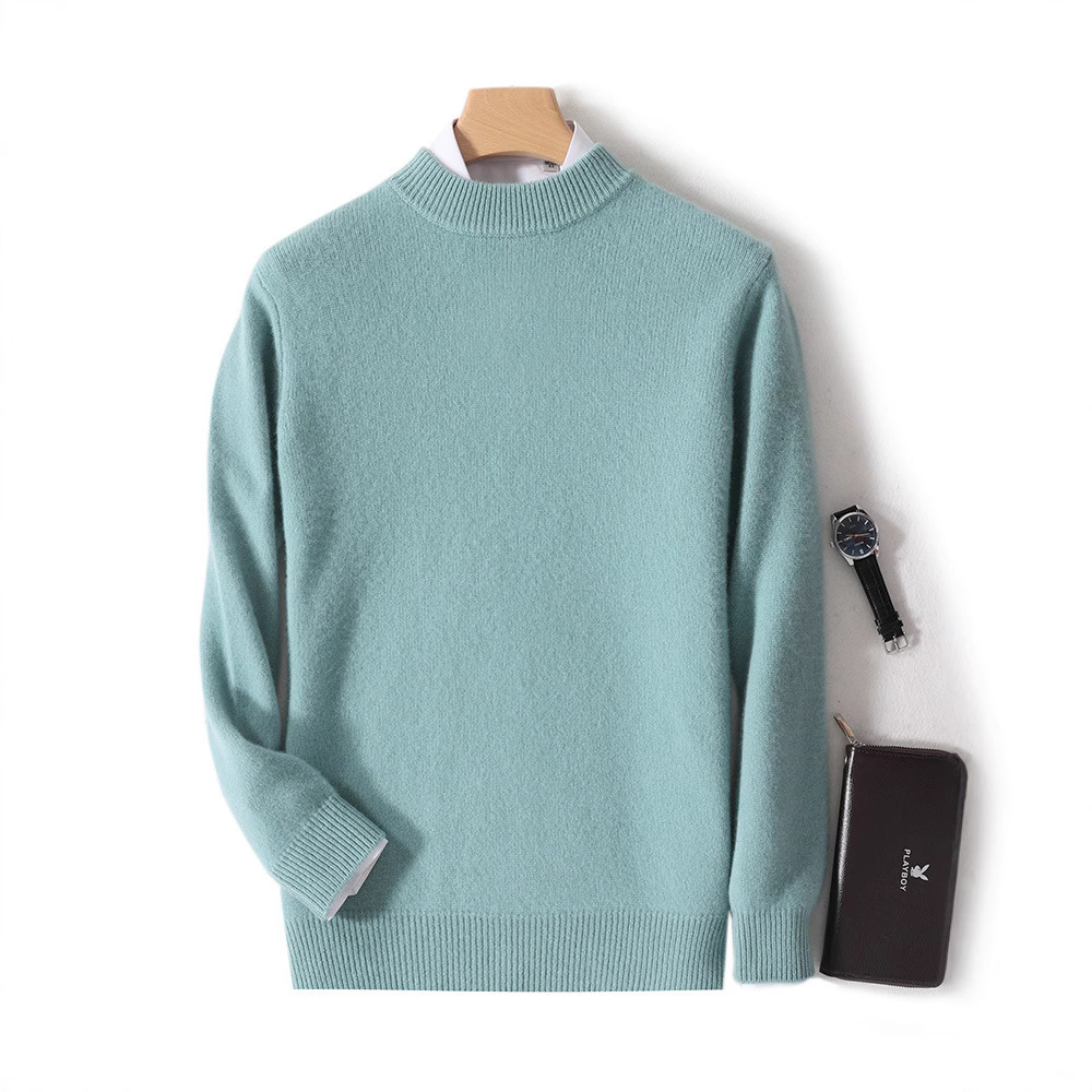 Осенний и зимний новый 100 чистый шерстяной свитер мужской утолщенный полувысокий воротник свободный внутренний свитер повседневный кашемировый нижний свитер мужской
