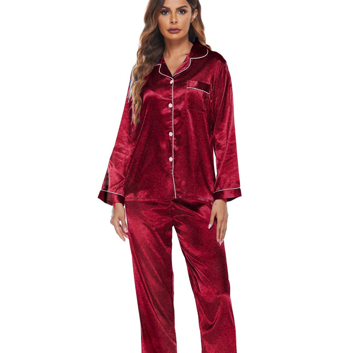 Главная страница > Европейские и американские пижамы для женщин, домашний костюм из двух предметов, экспортные поставки, атлас, большие размеры, осенняя мода.