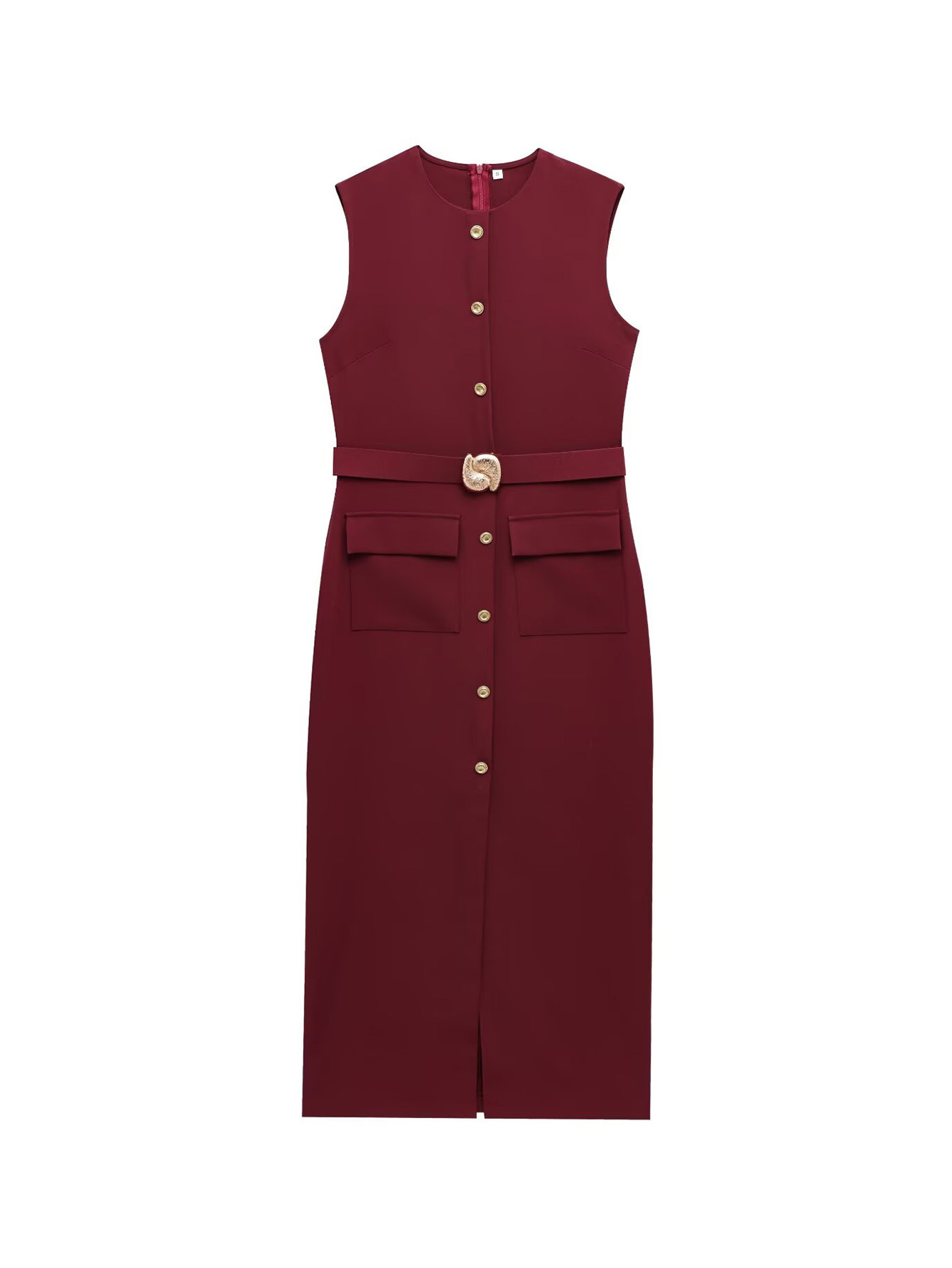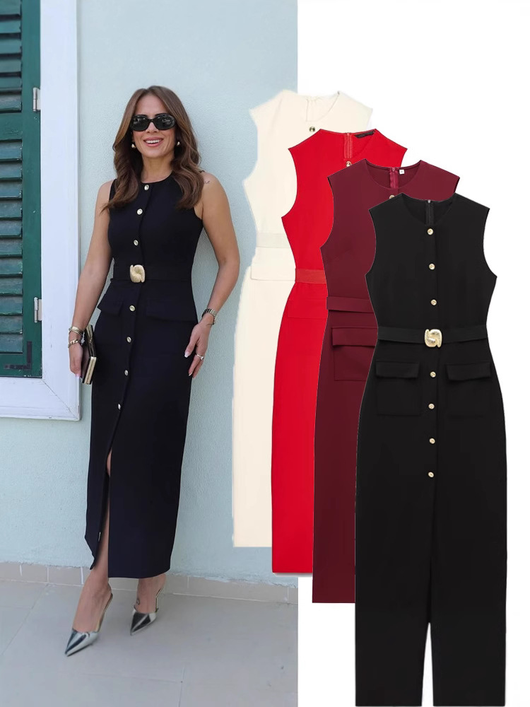 Главная страница > Женское платье миди в американском стиле с круглым вырезом, новое весеннее коллекция, европейский и американский стиль, сексуальное, без рукавов, с поясом.