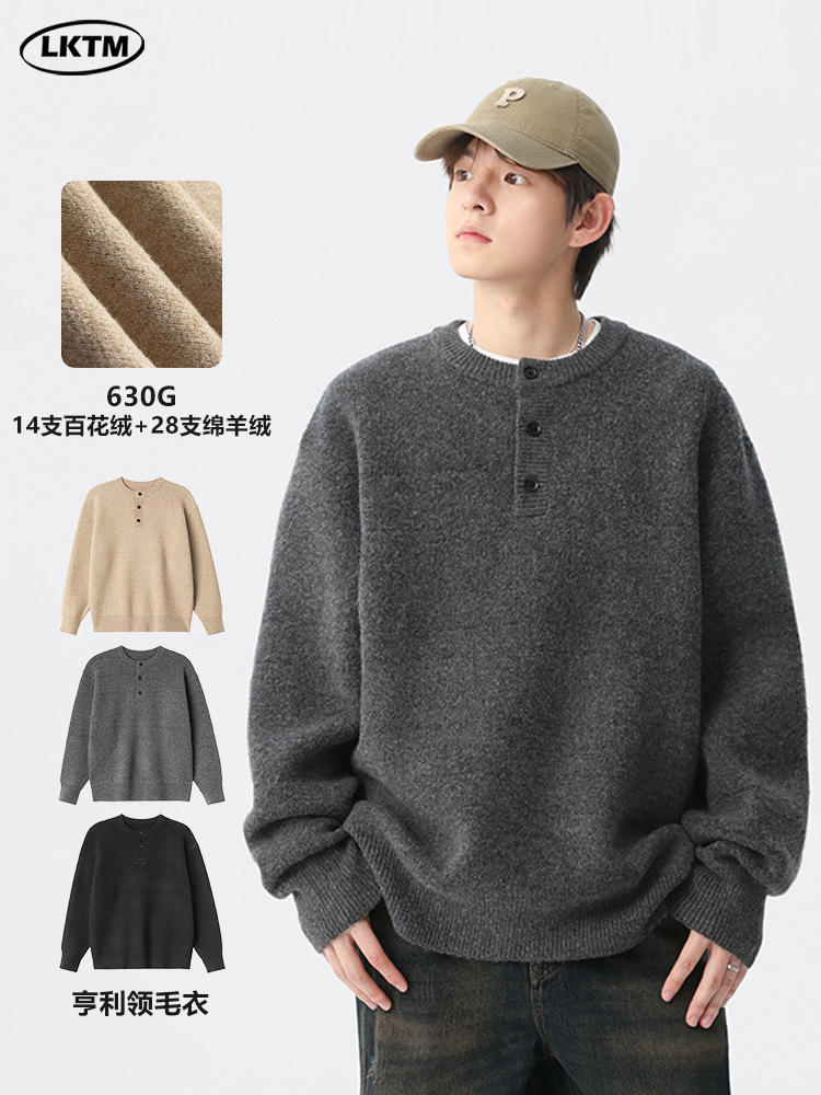 Главная страница > LKTM мужские осенне-зимние трикотажные изделия с американским воротником-хенли для мужчин и женщин, элитный трикотаж в ленивом стиле