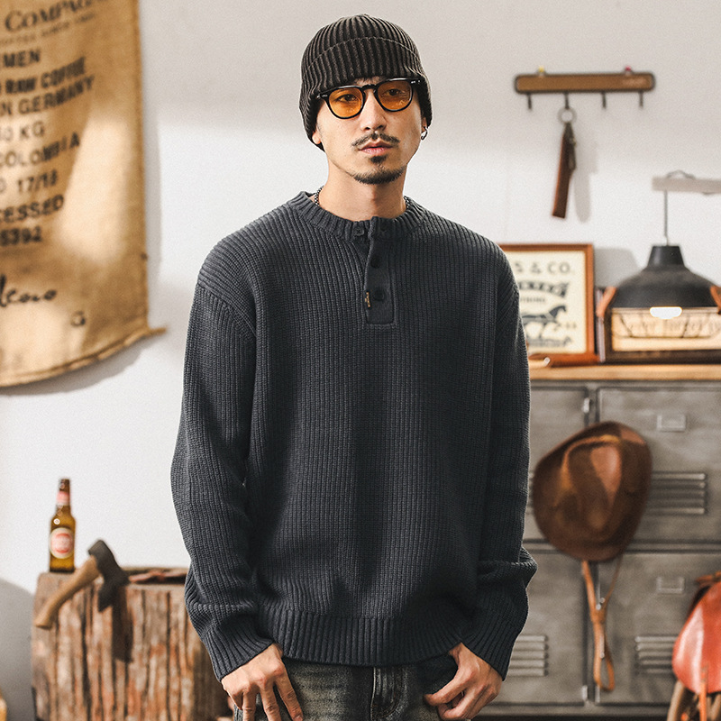 Главная страница > Американский тяжелый ретро свитер мужской осенний и зимний простой ленивый зимний толстый свитер куртка мужской вязаный свитер