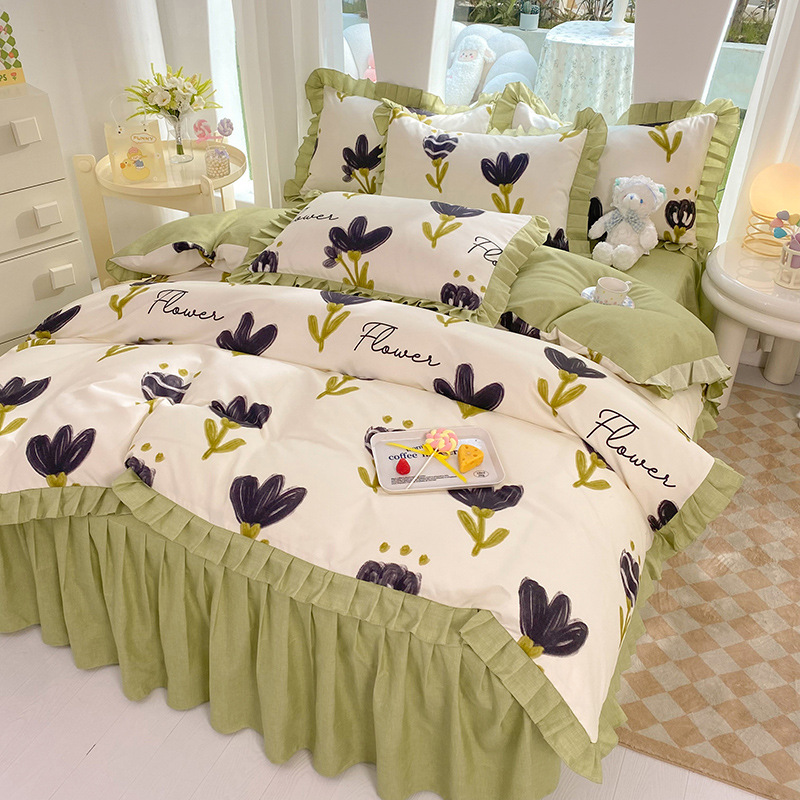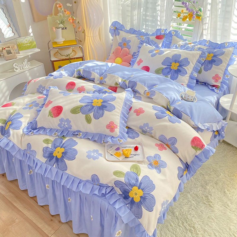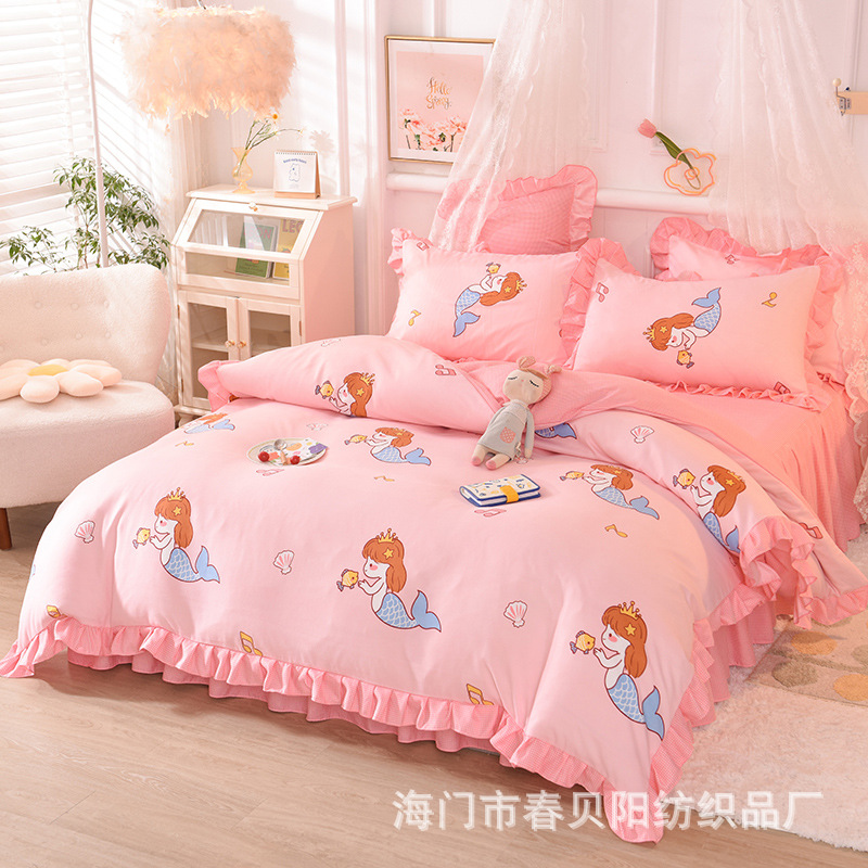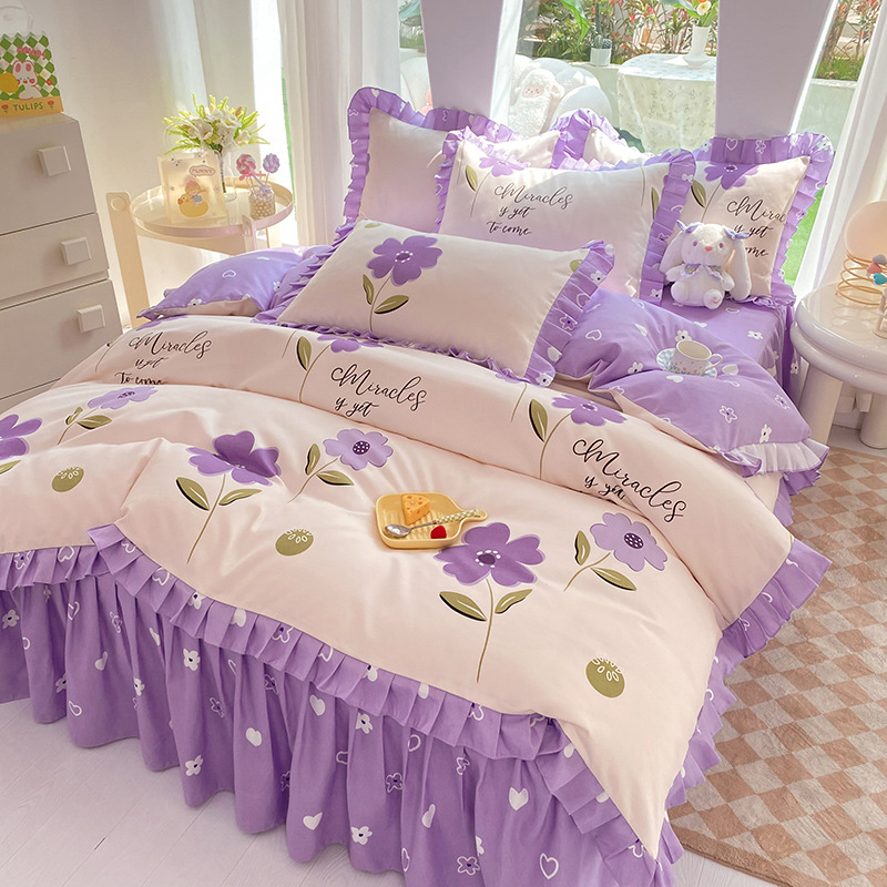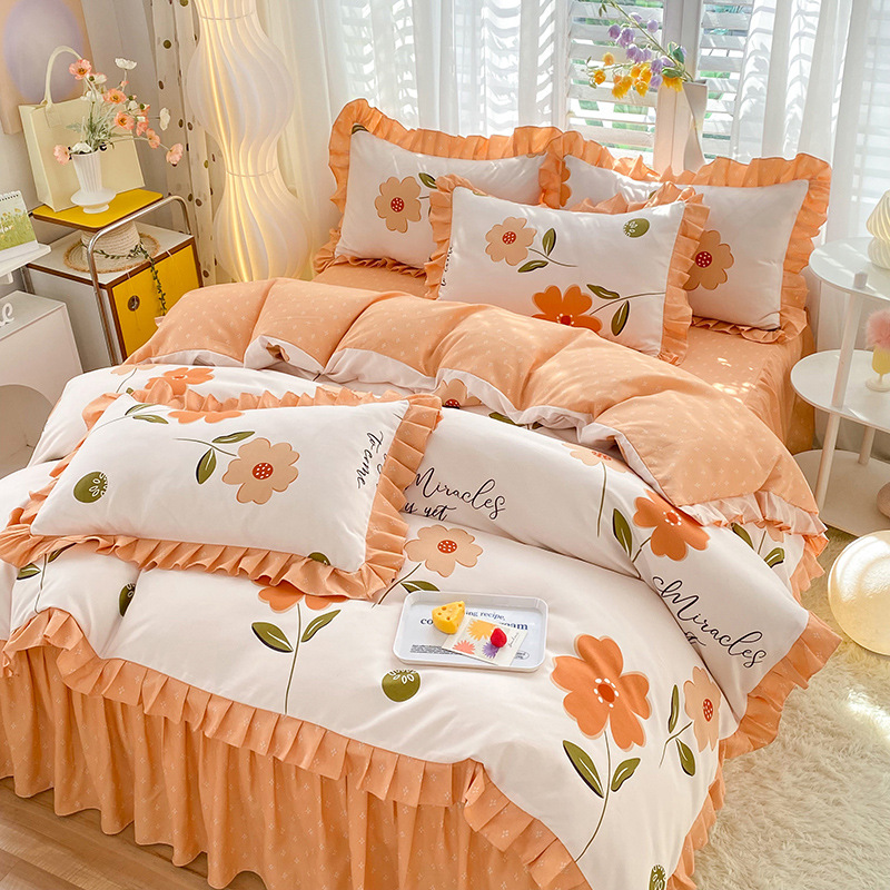 Главная страница > Корейский стиль, простыня в стиле принцессы, юбка, комплект из четырех предметов, утолщенный шлифовальный корейский кружевной одинарный двойной подарочный набор оптом