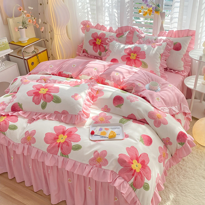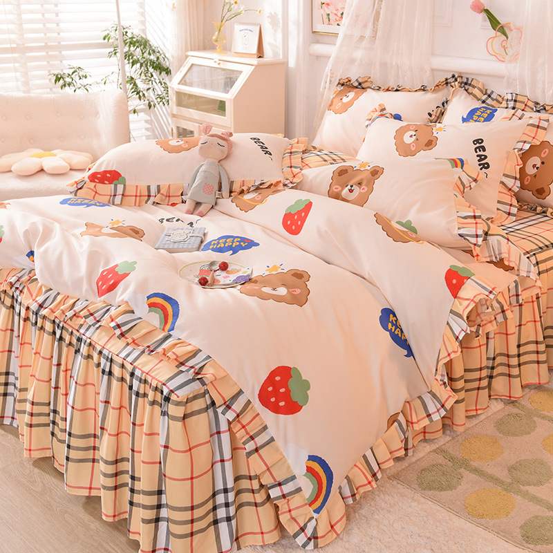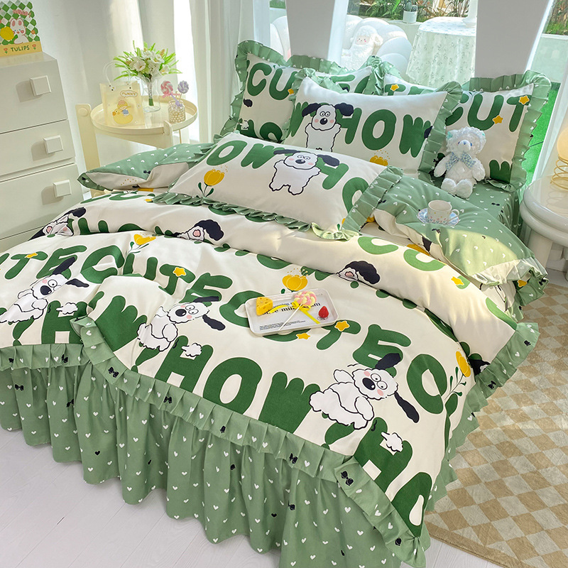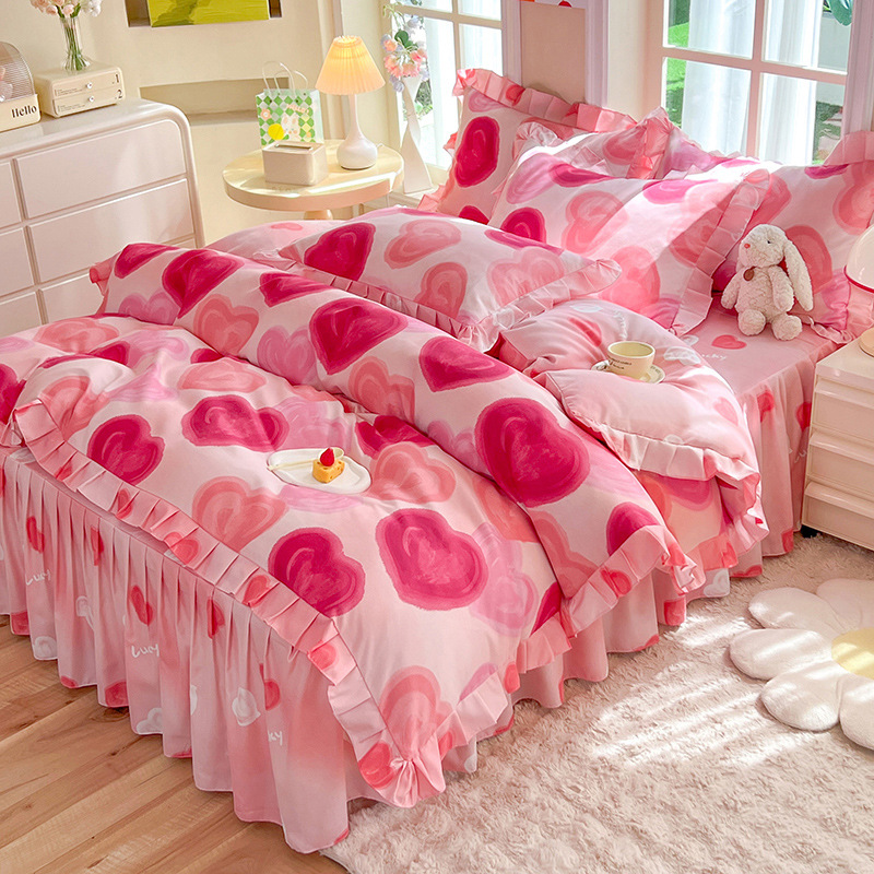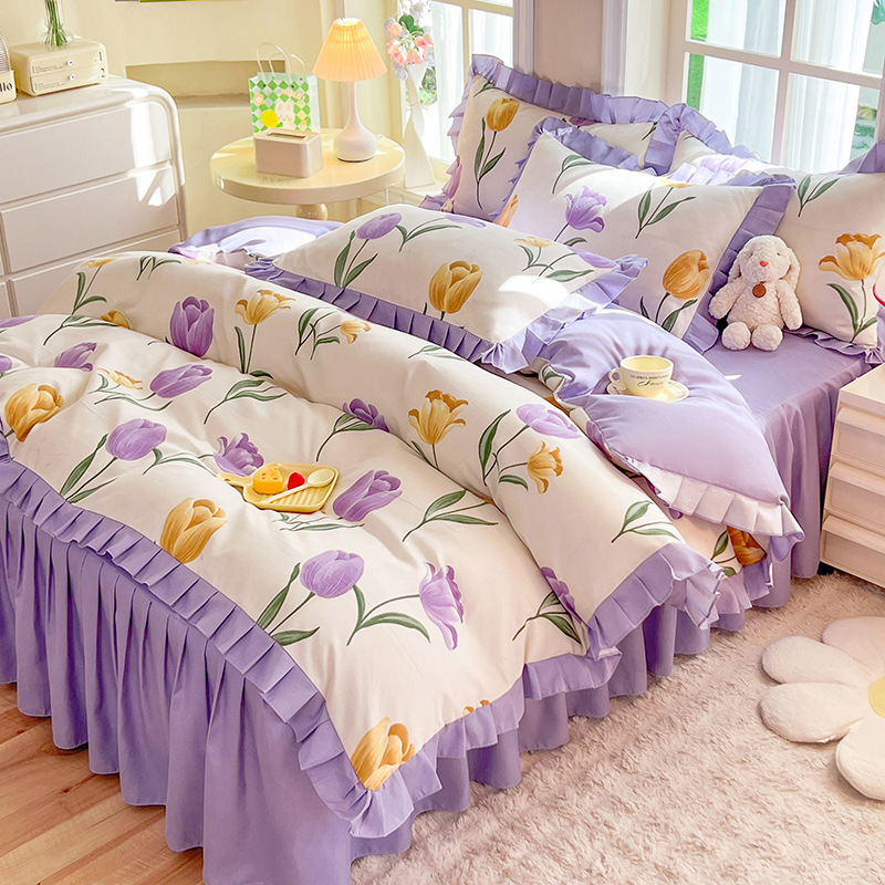 Главная страница > Корейский стиль, простыня в стиле принцессы, юбка, комплект из четырех предметов, утолщенный шлифовальный корейский кружевной одинарный двойной подарочный набор оптом