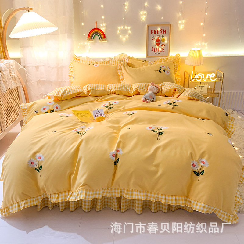 Корейский стиль, простыня в стиле принцессы, юбка, комплект из четырех предметов, утолщенный шлифовальный корейский кружевной одинарный двойной подарочный набор оптом