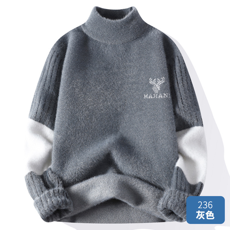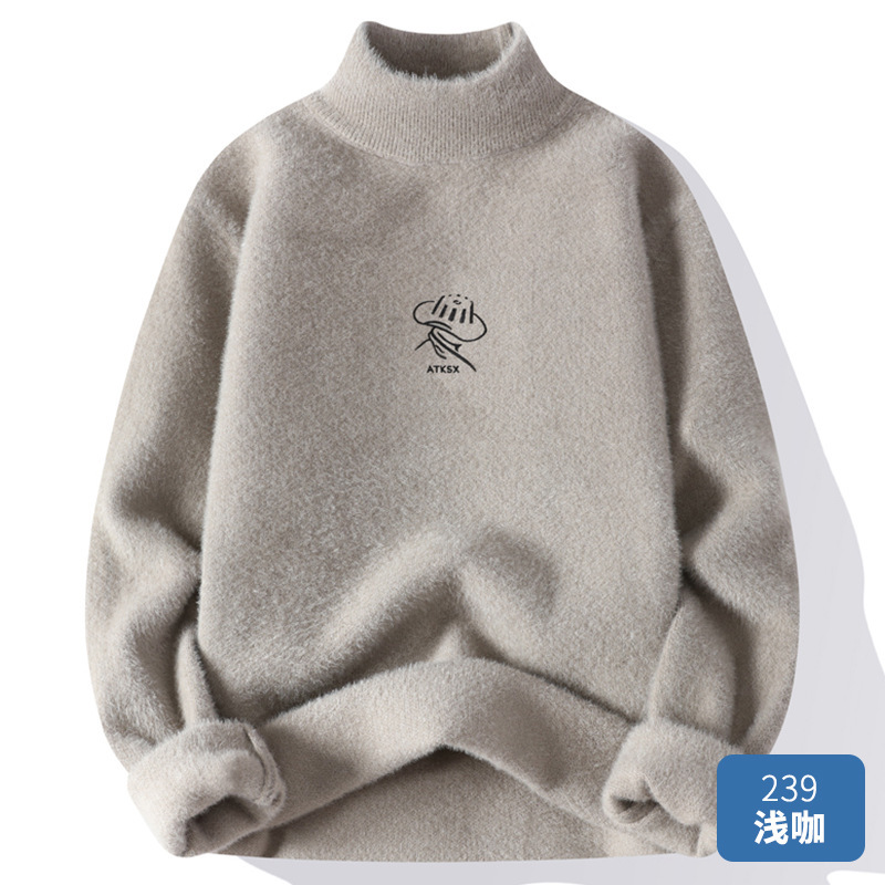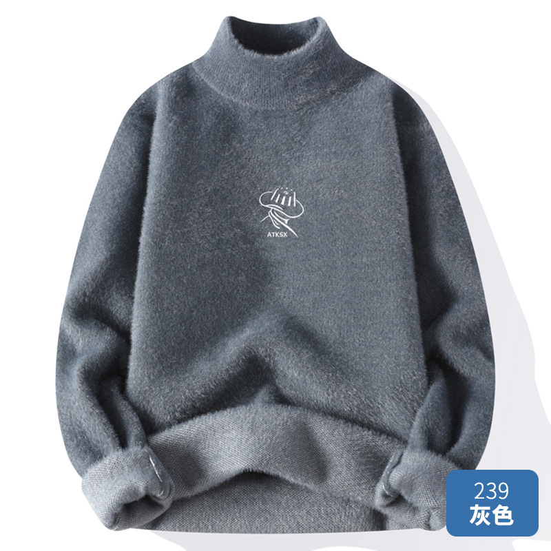 Главная страница > Имитация норки сплошного цвета свитер с половинным воротником мужской свободный бархат утолщение осенью и зимой